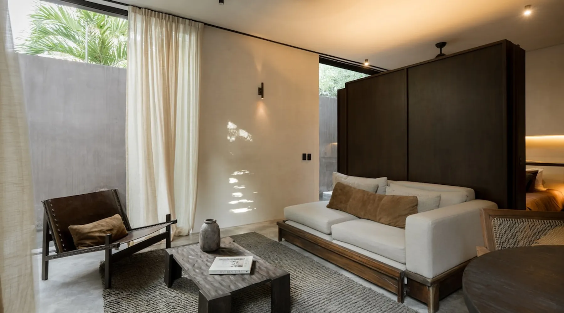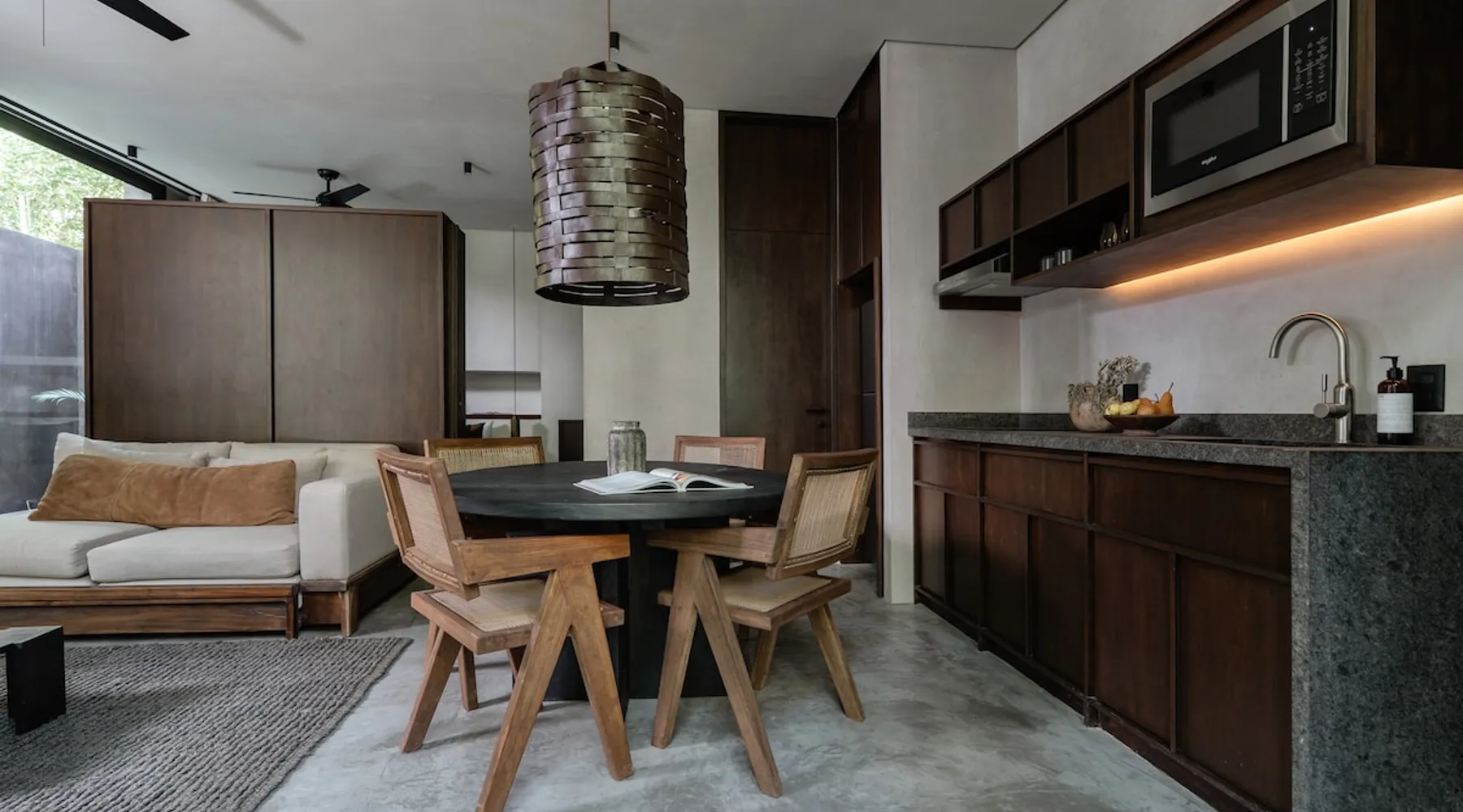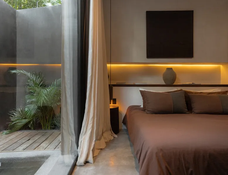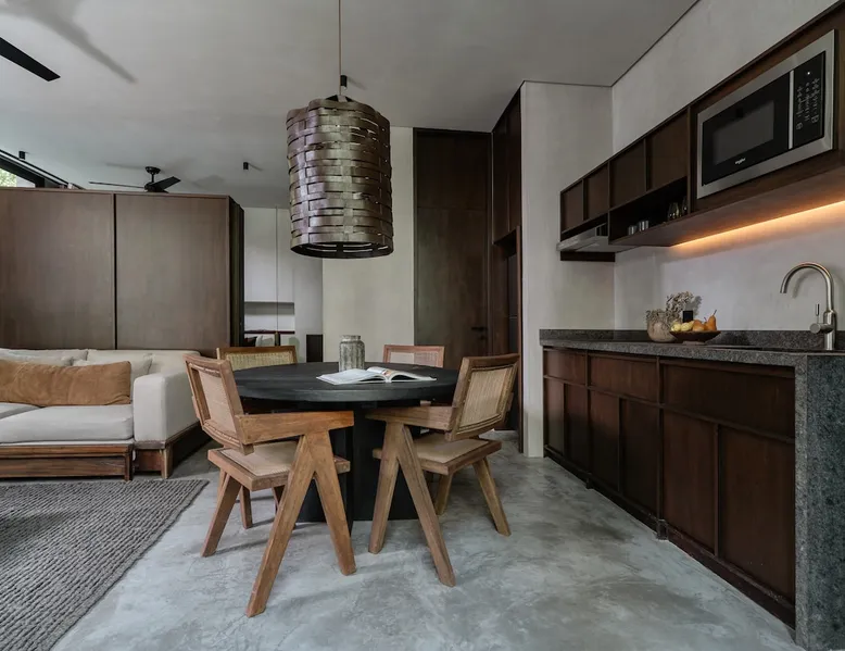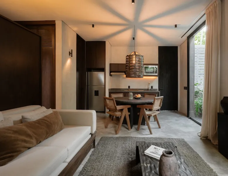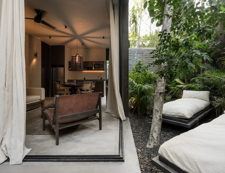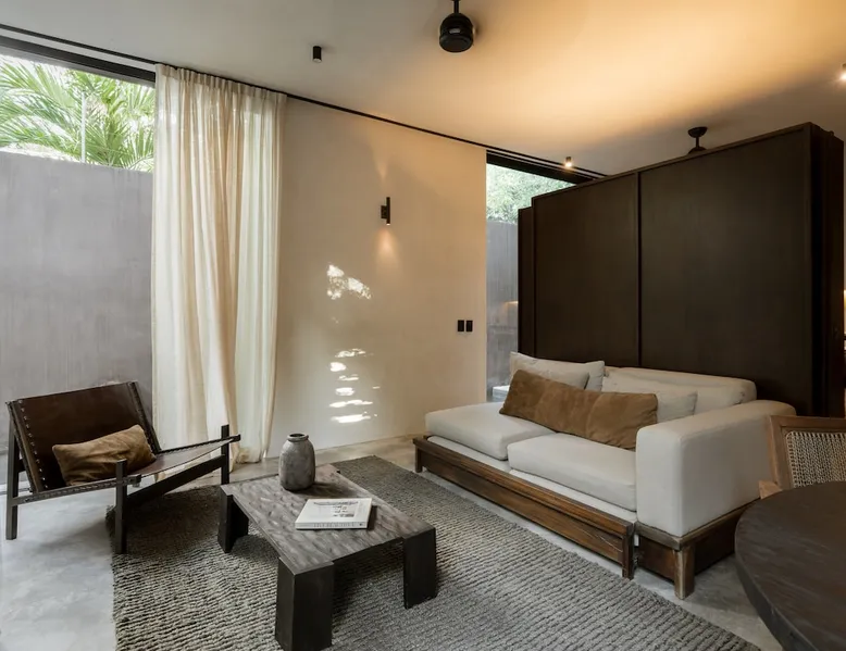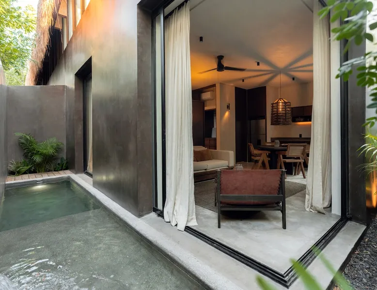 At Casa Kuro, Japanese architecture dialogues with the Mayan jungle in a contemplative retreat. Creation of Namus, a developer published in the most important global architecture magazines such as Architectural Digest, ArchDaily, Design Boom and in the book "The Best of Mexican Architecture of the 21st Century", as well as multiple international awards. This ground floor apartment is a temple for art lovers: 1 bedroom, private pool, tub and jungle views.