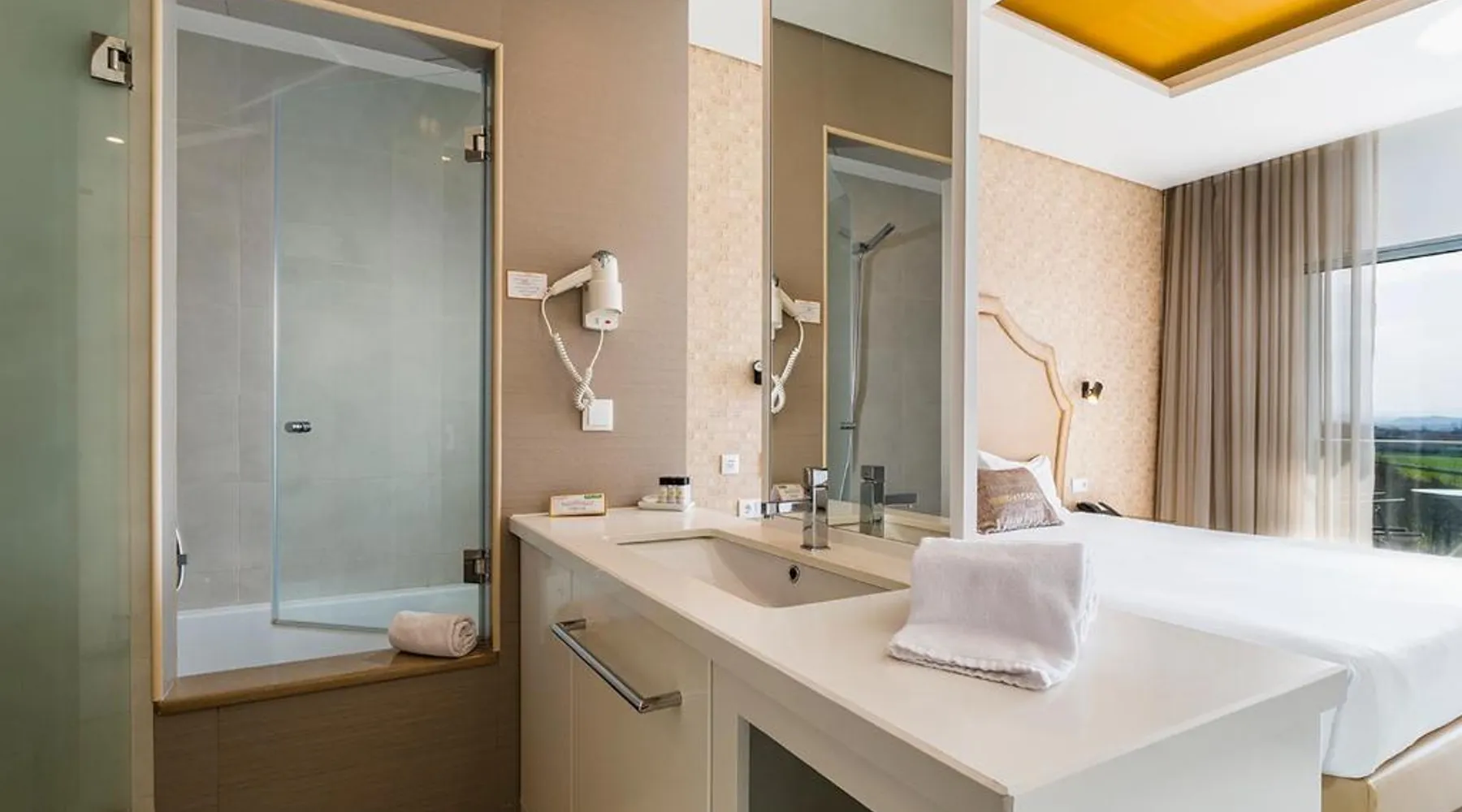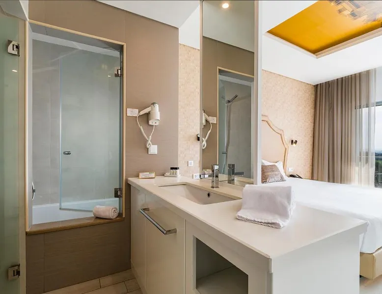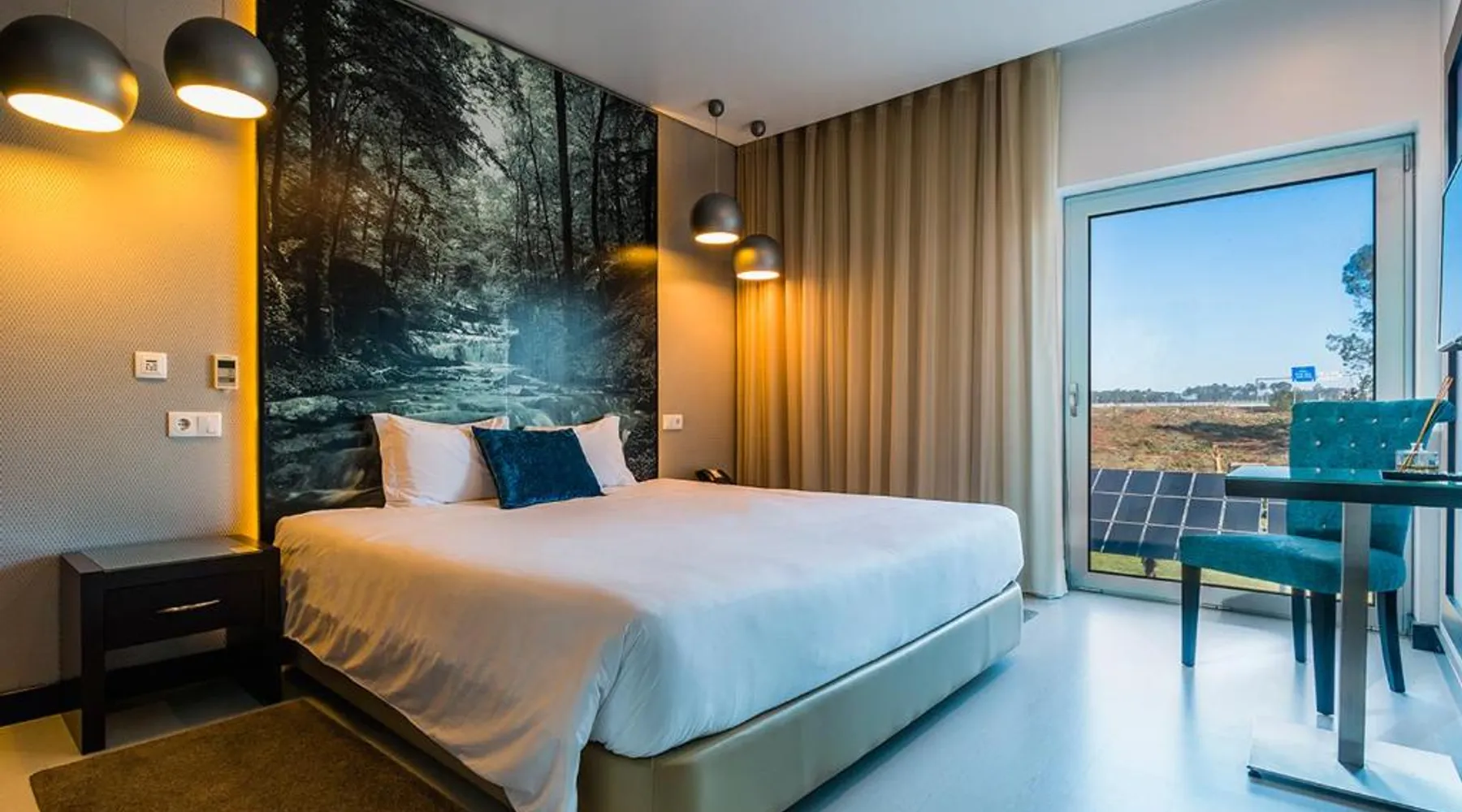 The 4-star Lisotel - Hotel & Spa is located in 4.3 mi from the center of Leiria. Just 328 feet from the access to the A17 motorway, this charming eco-friendly hotel is within 20 mi from the Sanctuary of Fátima and 12 mi from the Batalha Monastery. Offering free WiFi, each air-conditioned room is decorated with a different theme related to history of the Leiria region. Rooms are equipped with a safety deposit box, a desk, a flat-screen satellite TV and a mini-bar. The private bathrooms have hairdryers and free toiletries. A breakfast is served every morning. In addition guests can taste the local gastronomy at the on-site restaurant. The hotel features an outdoor swimming pool, a fitness center, a children's playground and outdoor exercise areas. The Spa and Wellness Center is available at an extra cost. Lisotel - Hotel & Spa was build for maximum sustainability and respect for the environment making use of a geothermal system and solar panels for building and water heating. It is also equipped with photovoltaic panels to produce it's own energy. The scenic beach of São Pedro de Moel is 17 mi away and the fishing town of Nazaré is 20 mi away. The monastery of Alcobaça is at a 25-minute drive and the Leiria Train Station is 5.6 mi away. Lisbon International Airport is 75 mi away. We inform you that work is currently underway at the hotel to improve our services and offers. Therefore, there may be noise from the work taking place between 10:00 am and 6:00 pm (weekdays). We apologize for any inconvenience this may cause. Featuring free toiletries, this twin/double room includes a private bathroom with a shower and a hairdryer. The air-conditioned twin/double room features a flat-screen TV with satellite channels, soundproof walls, a mini-bar, a safe deposit box as well as pool views.