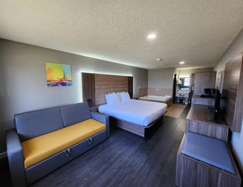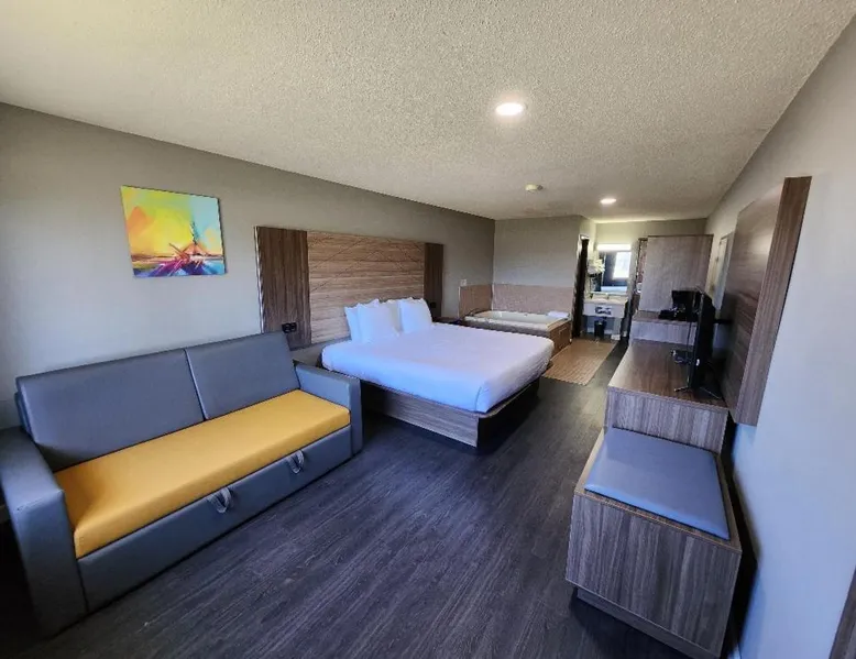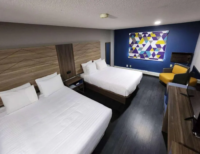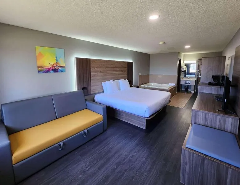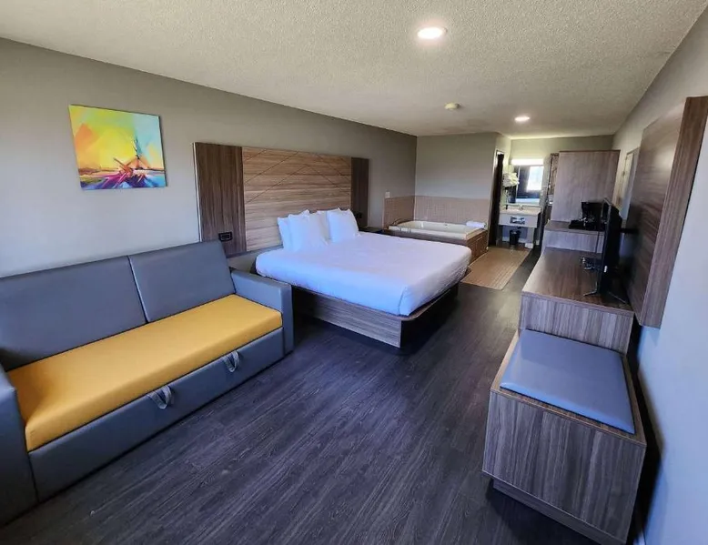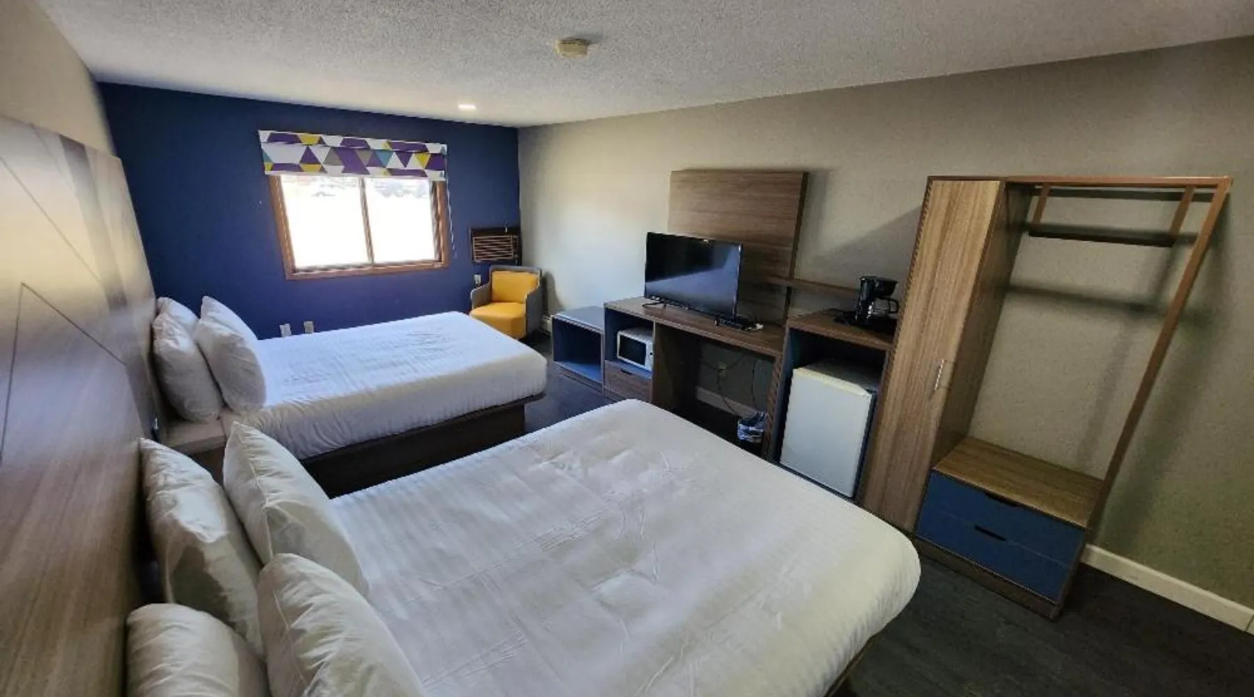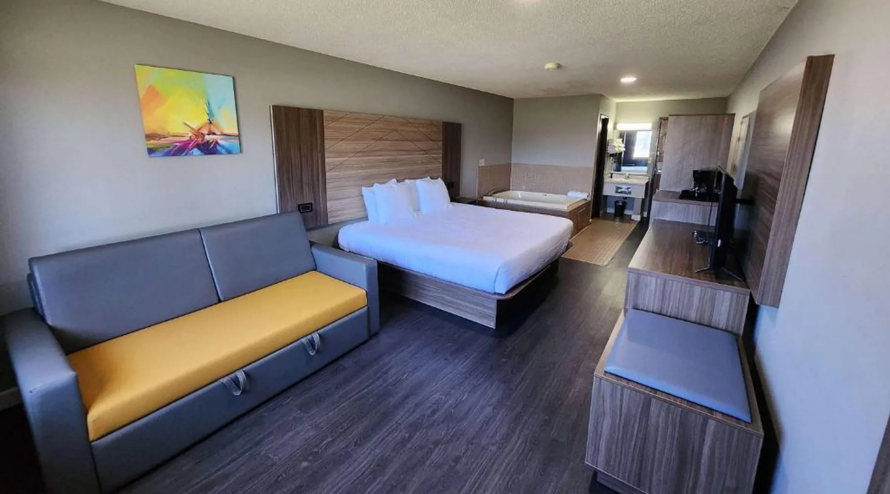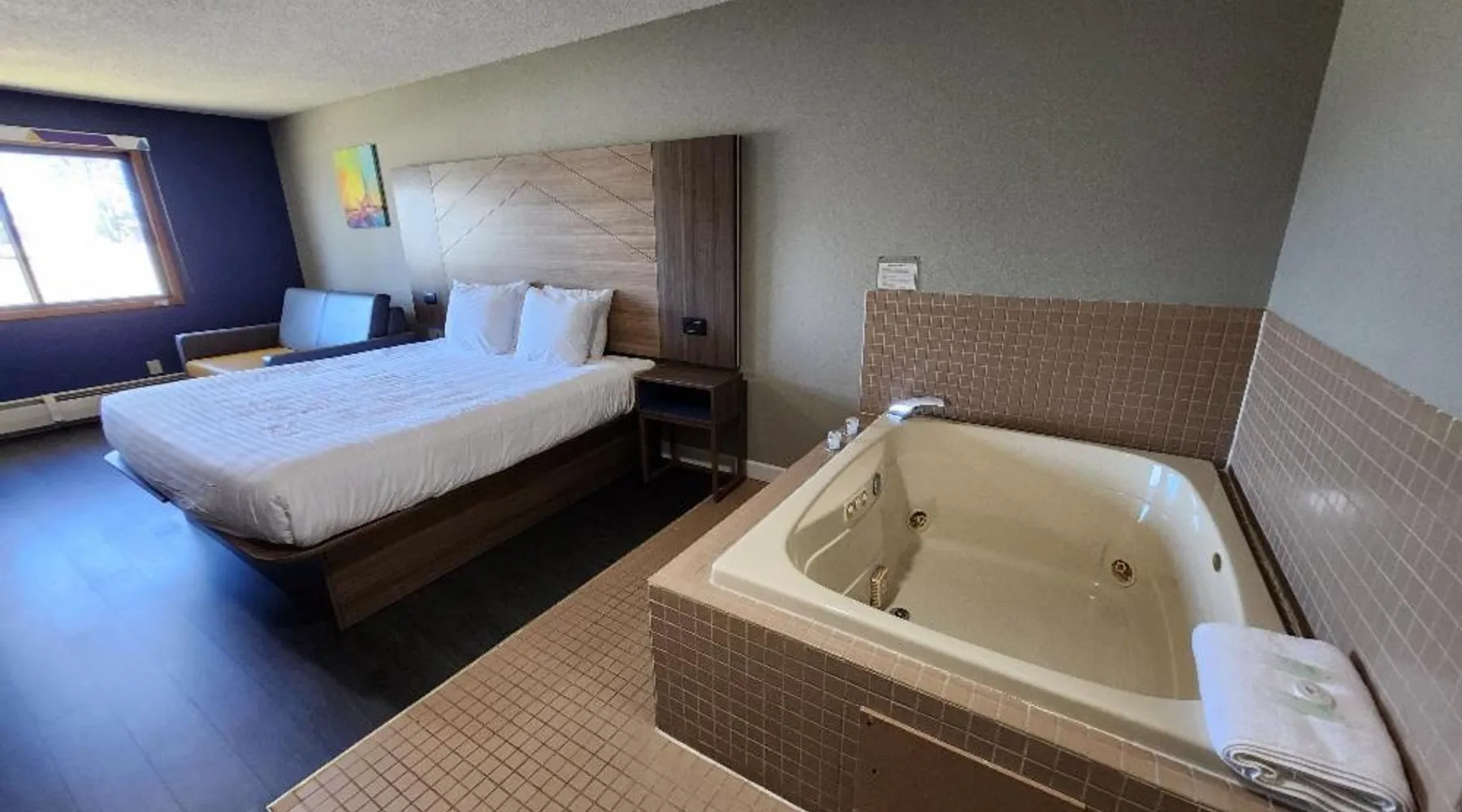 Located on the banks of Hayward Lakes, this Wisconsin hotel features an indoor heated pool and hot tub. Its spacious rooms offer free WiFi and cable TV. Coffee-making facilities and a seating area are provided in the traditionally decorated rooms at Super 8 by Wyndham Hayward WI. Rooms with a microwave and fridge are available upon request. Guests can enjoy a continental breakfast during their stay. Hayward AmeriVu Inn and Suites also offers a picnic area. Wilderness Walk Zoo is 2 miles from this hotel. The National Fresh Water Fishing Hall of Fame and Museum is 5 minutes’ walk away. The spacious quadruple room offers air conditioning, a tea and coffee maker, as well as a private bathroom boasting a bath. This quadruple room provides heating and a flat-screen TV. The unit has 2 beds.