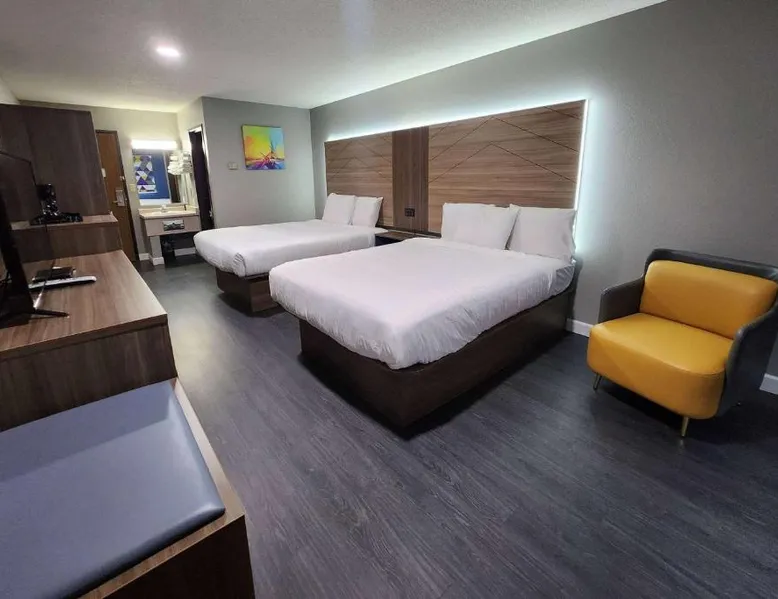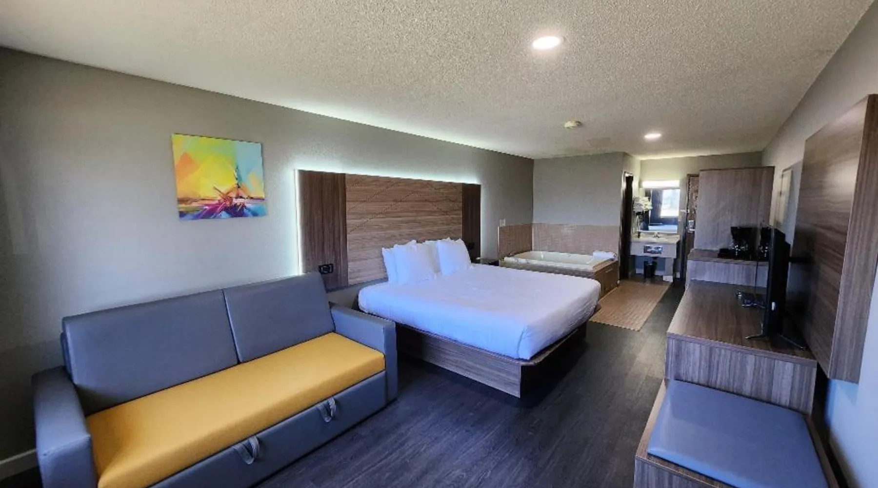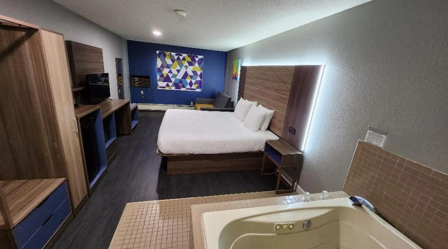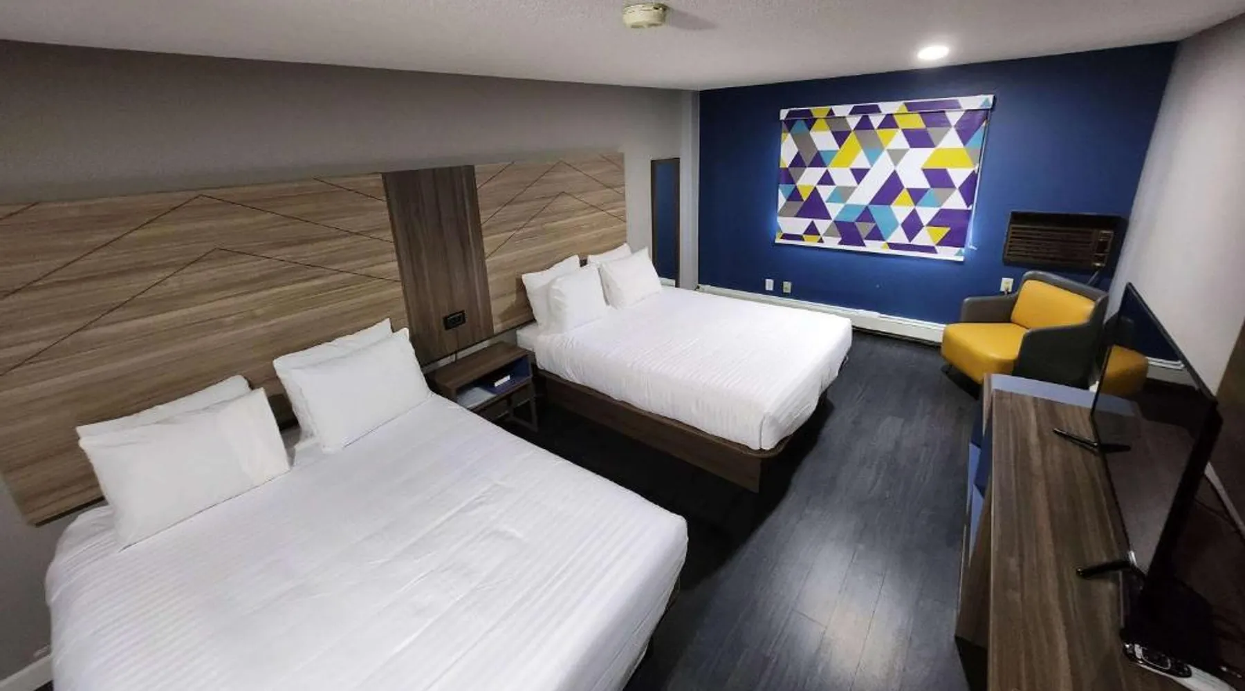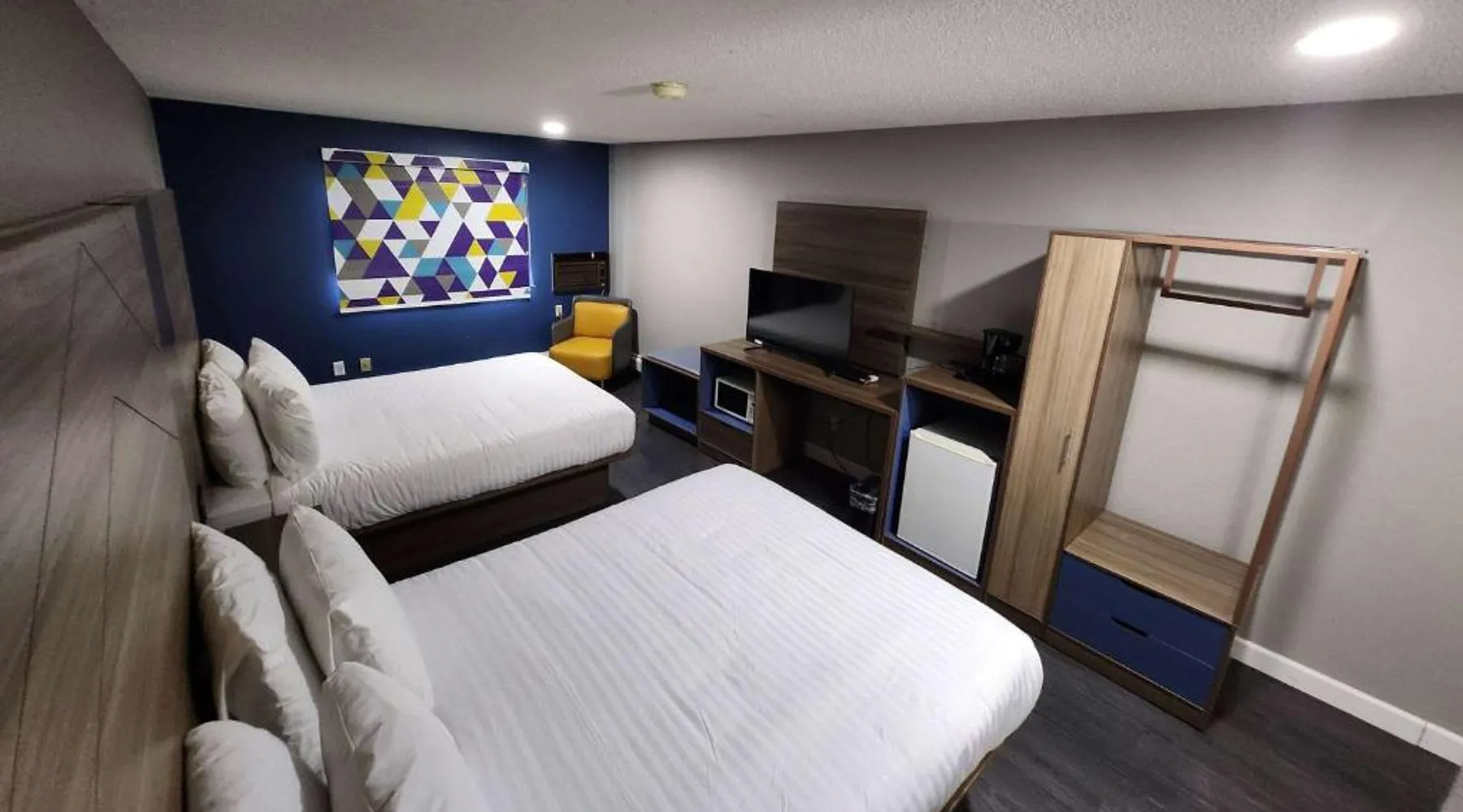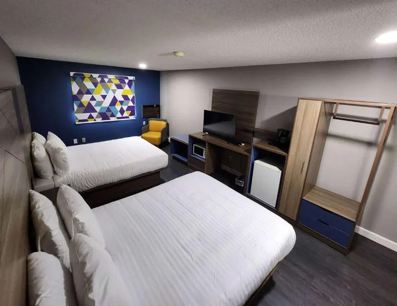Located on the banks of Hayward Lakes, this Wisconsin hotel features an indoor heated pool and hot tub. Its spacious rooms offer free WiFi and cable TV. Coffee-making facilities and a seating area are provided in the traditionally decorated rooms at Super 8 by Wyndham Hayward WI. Rooms with a microwave and fridge are available upon request. Guests can enjoy a continental breakfast during their stay. Hayward AmeriVu Inn and Suites also offers a picnic area. Wilderness Walk Zoo is 2 miles from this hotel. The National Fresh Water Fishing Hall of Fame and Museum is 5 minutes’ walk away. The spacious quadruple room offers air conditioning, a tea and coffee maker, as well as a private bathroom boasting a bath. This quadruple room provides heating and a flat-screen TV. The unit has 2 beds.