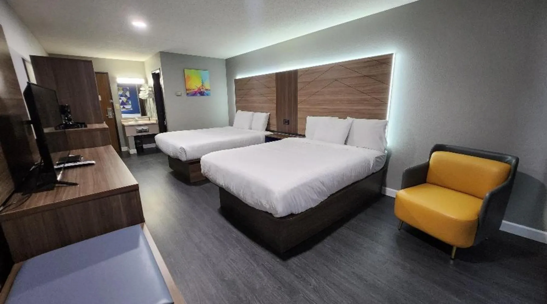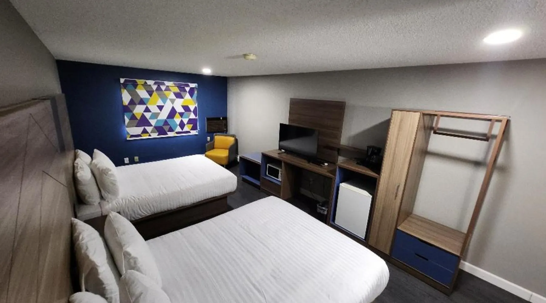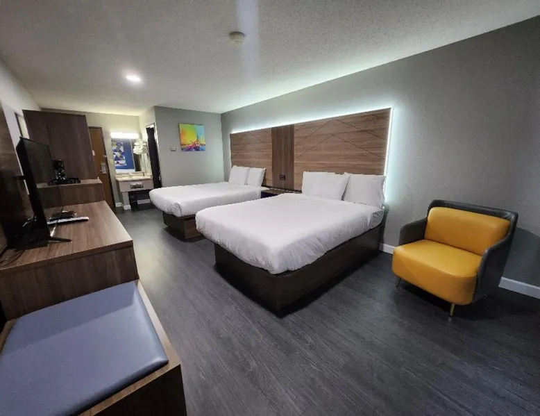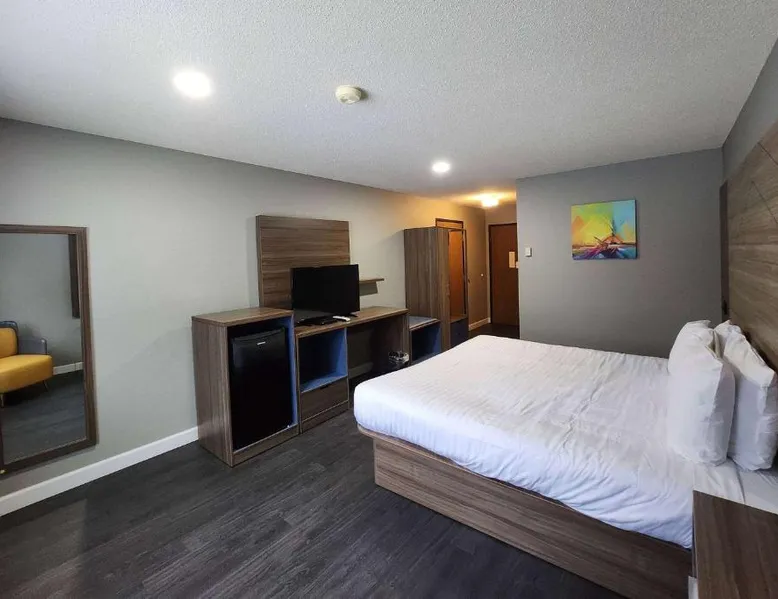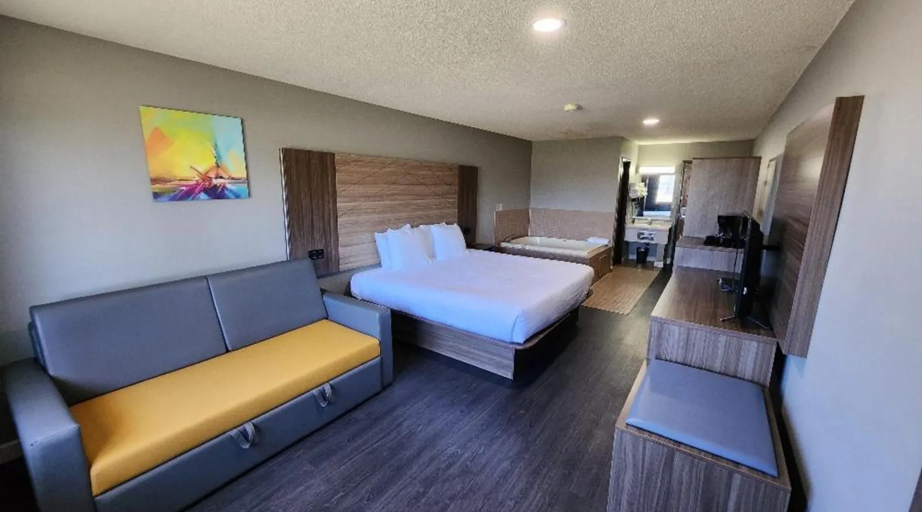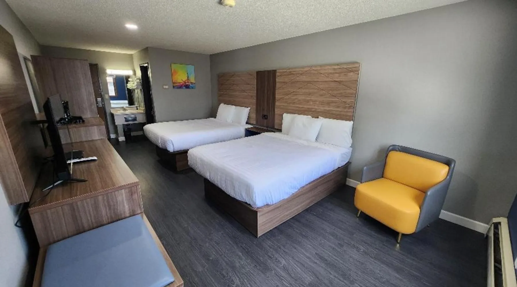 Located on the banks of Hayward Lakes, this Wisconsin hotel features an indoor heated pool and hot tub. Its spacious rooms offer free WiFi and cable TV. Coffee-making facilities and a seating area are provided in the traditionally decorated rooms at Super 8 by Wyndham Hayward WI. Rooms with a microwave and fridge are available upon request. Guests can enjoy a continental breakfast during their stay. Hayward AmeriVu Inn and Suites also offers a picnic area. Wilderness Walk Zoo is 2 miles from this hotel. The National Fresh Water Fishing Hall of Fame and Museum is 5 minutes’ walk away. The spacious quadruple room offers air conditioning, a tea and coffee maker, as well as a private bathroom boasting a bath. This quadruple room provides heating and a flat-screen TV. The unit has 2 beds.
