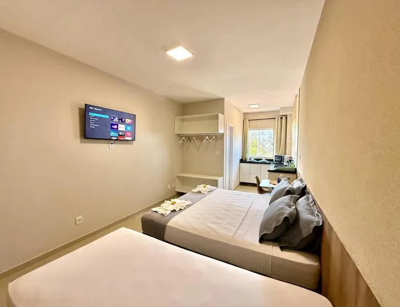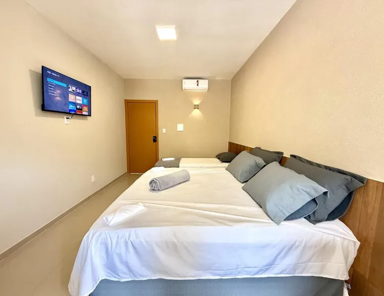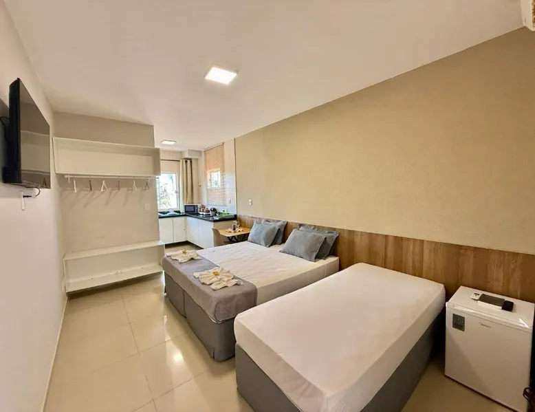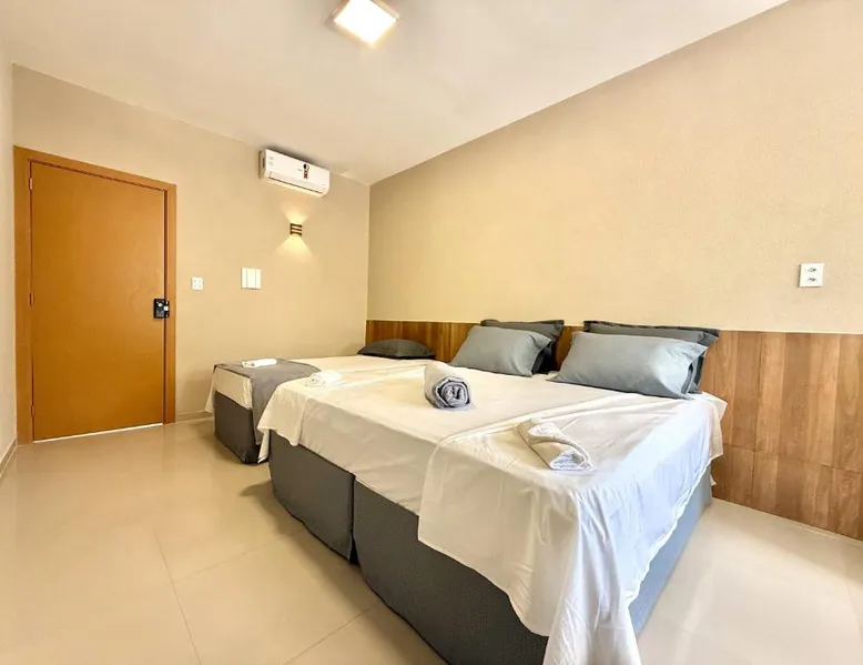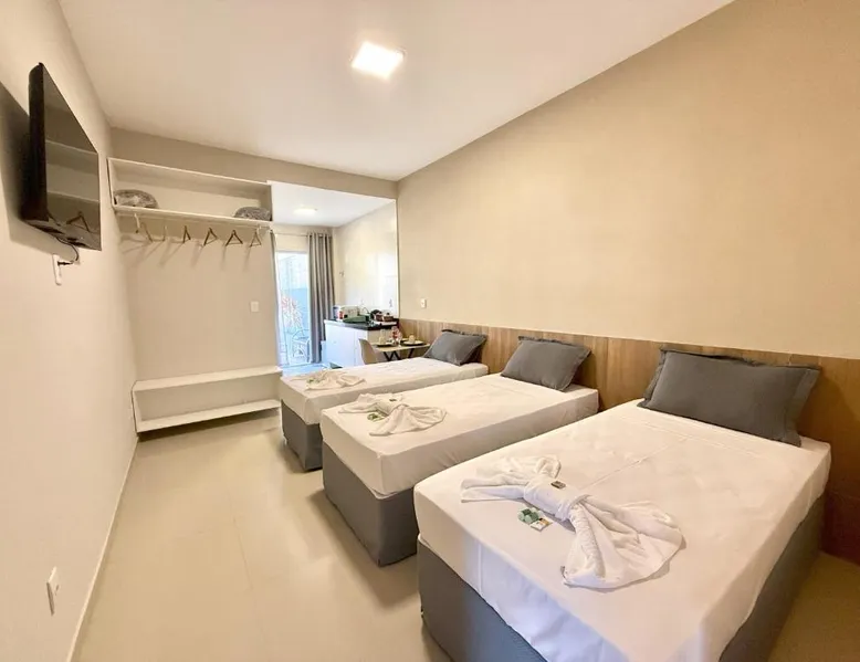 Beachfront Location: Your Home - Studios Boutique Hotel in São Luís offers direct beachfront access and a sun terrace. Guests enjoy sea views and a quiet street setting. Comfortable Accommodations: Rooms feature air-conditioning, private bathrooms, and modern amenities including free WiFi, streaming services, and mini-bars. Family rooms and full-day security ensure a comfortable stay. Convenient Facilities: The hotel provides free on-site private parking, a paid shuttle service, and a 24-hour front desk. Additional amenities include an outdoor seating area, room service, and free toiletries. Nearby Attractions: Olho D'água Beach is a 4-minute walk away, while Jansen Lagoon and Lion's Palace are 6.2 mi distant. Marechal Cunha Machado International Airport is 8.1 mi from the property. Offering free toiletries, this triple room includes a private bathroom with a shower and a bidet. Guests can make meals in the kitchen that has a stovetop, kitchenware and a microwave. The air-conditioned triple room offers a flat-screen TV with streaming services, a mini-bar, a wardrobe, heating as well as a quiet street view. The unit has 2 beds.