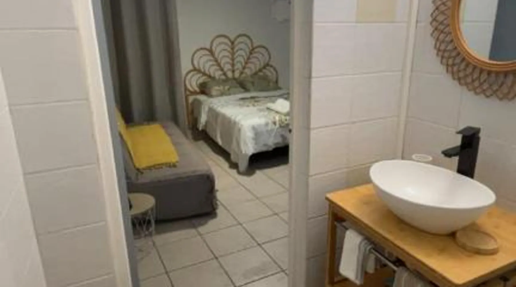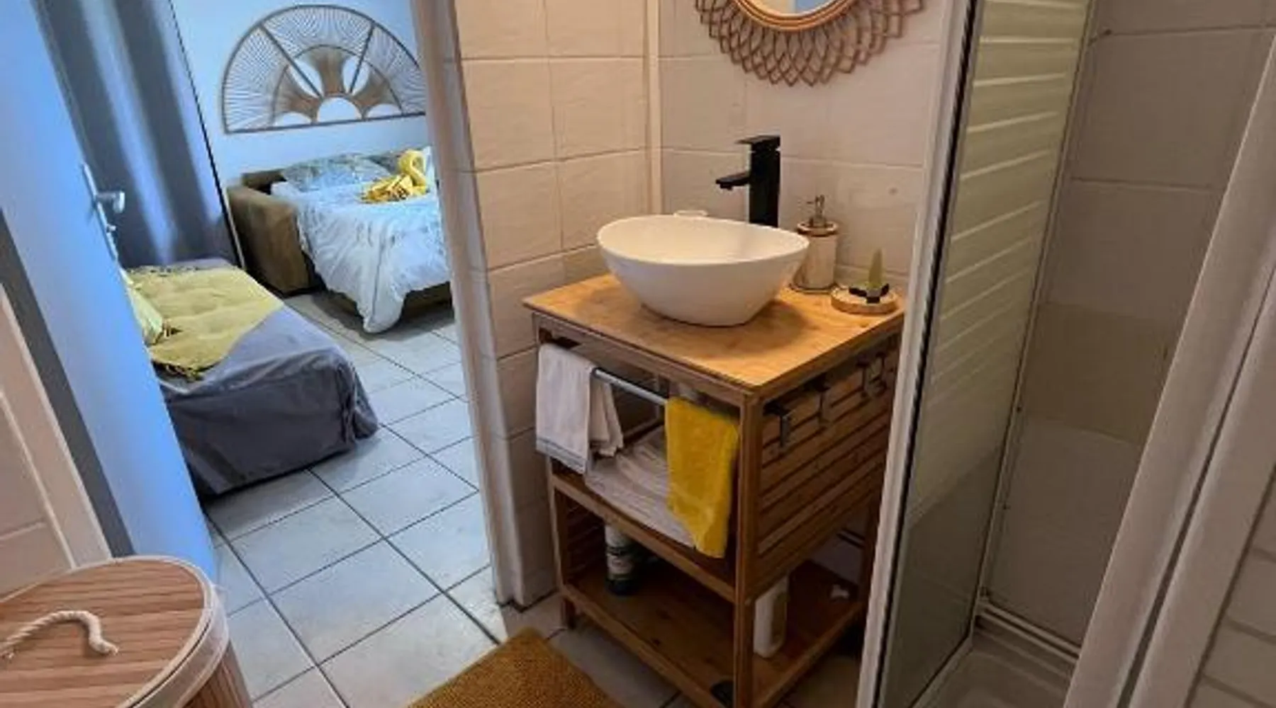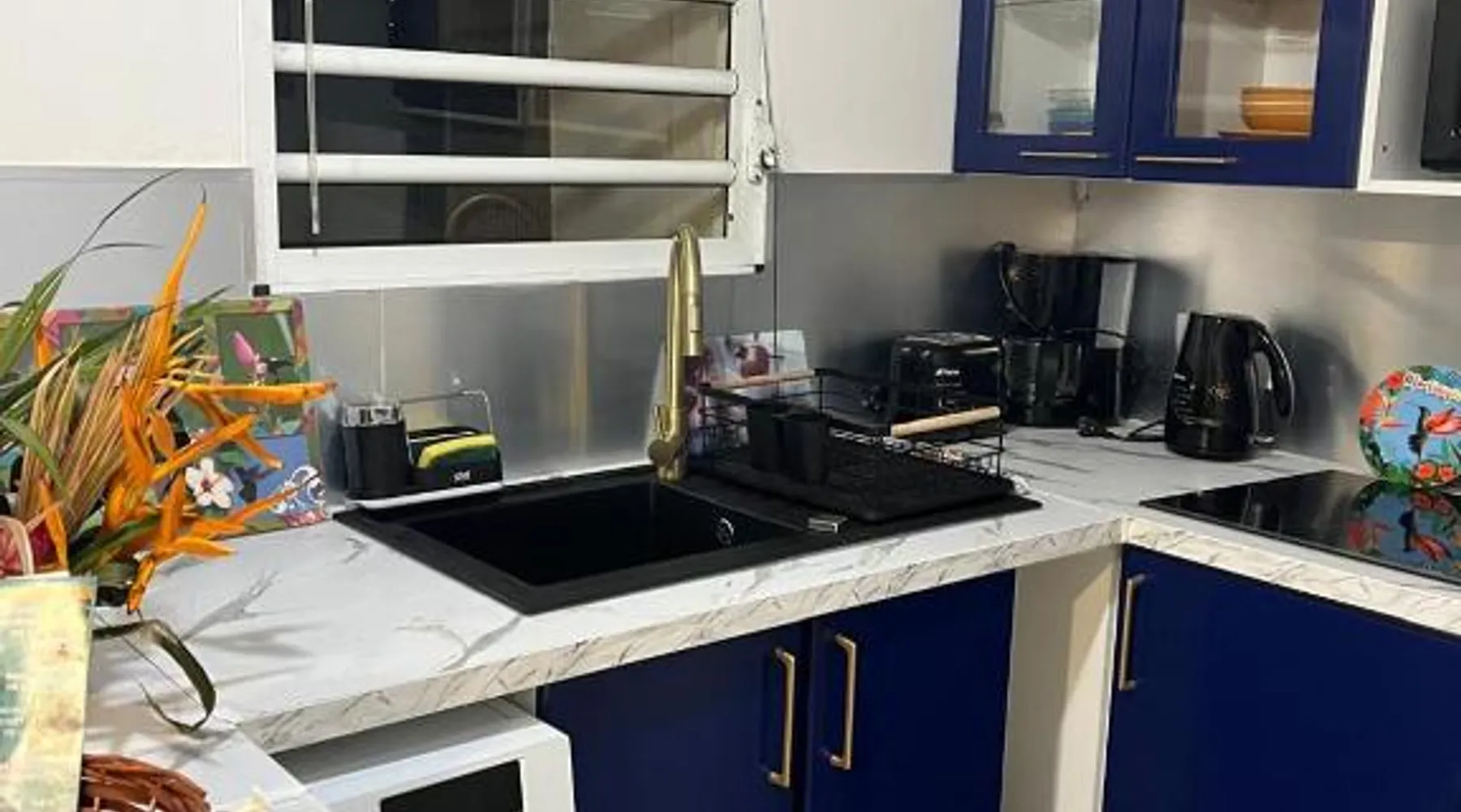 Beachfront and Indoor Pool: Studio Océmarine in Les Trois-Îlets offers direct beachfront access and an indoor swimming pool with stunning views. Guests can relax by the pool or enjoy the sun on the balcony. Comfortable Amenities: The apartment features air-conditioning, a fully equipped kitchen with modern appliances, and a private bathroom. Additional amenities include streaming services, a washing machine, and a sofa bed. Prime Location: Located 16 mi from Martinique Aime Cesaire International Airport, the property is steps from Anse Mitan and 1.1 mi from Anse a l'Ane Beach. Scuba diving opportunities are available in the surrounding area. Highly Rated by Guests: Studio Océmarine receives high ratings for its excellent facilities and comfortable accommodations, ensuring a pleasant stay for all visitors. The pool with a view is the standout feature of this studio. Guests can make meals in the kitchen that features a stovetop, a refrigerator, kitchenware and an oven. This air-conditioned studio is consisted of of a flat-screen TV with streaming services, a private bathroom as well as a balcony with pool views. The unit has 2 beds.