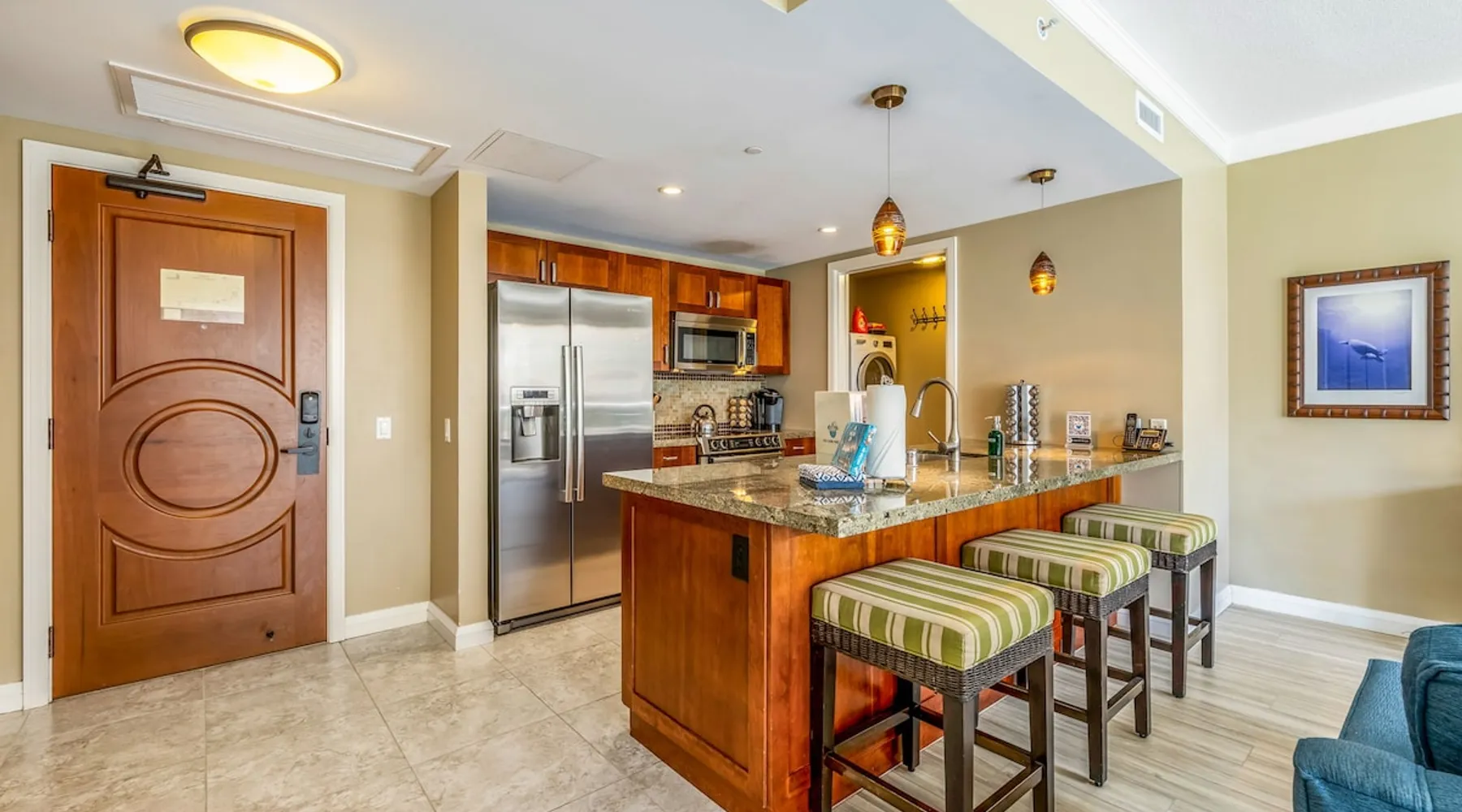 Welcome to Honua Kai Resort Hokulani 214. This perfectly placed condo offers the ultimate getaway for your Maui memories. Enjoy luxury touches throughout with its chef inspired kitchen, central AC, luxury organic essentials, WIFI, private lanai, & much more. From your shaded lanai you'll enjoy a peek of the ocean, sunset vibes, & lush mountain slopes. This resort is situated beachfront with 5 pools, lazy rivers, cabanas, Dukes Restaurant, fitness center, on site convenient store, spa, & more. The space 🌺 WHY YOU’LL LOVE IT Modern 1BR / 1BA luxury resort condo (sleeps 4) Partial ocean view with lush West Maui mountain backdrop Chef-inspired kitchen with upgraded Bosch appliances Private shaded lanai for sunset lounging and morning coffee Steps to the beach, pools, Duke’s Beach House, and resort amenities 🏠 THE SPACE Bedroom: King bed with premium linens, Smart TV, USB nightstand chargers, closet storage, and ceiling fan. Bathroom: Walk-in shower, single sink vanity, and plush towels. Common Area: Open floor plan with queen sofa sleeper (with linens), Smart TV with cable, ceiling fan, split A/C, dining table with chairs, and in-unit washer/dryer. Lanai: Shaded and breezy lanai with bistro table and chairs — peek ocean view, lush mountains, and tropical gardens. 🌴 AMENITIES Central A/C and high-speed Wi-Fi Starter supply of luxury organic bath, kitchen & laundry essentials (we supply more than most companies and do not drop extra) Aloha welcome gift on arrival Beach gear: chairs, umbrella, and cooler (no snorkel gear) Elevators and luggage carts for guest convenience 🏖 RESORT HIGHLIGHTS Beachfront Honua Kai Resort with 5 distinct pools — lazy river, slides, waterfalls, quiet pool, and hot tubs Duke’s Beach House restaurant and bar (poolside dining & delivery!) Fitness center, spa, and beachfront boardwalk Lush tropical gardens, koi ponds, and beautifully maintained grounds 📍 LOCATION Located on the Kāʻanapali Coast, West Maui 5-minute drive to Whalers Village shops & dining 10 minutes to Kapalua and Kāʻanapali Golf Courses 12 minutes to Napili Bay for world-class snorkeling 🚗 PARKING & FEES Parking: $20/day + tax, paid directly to the resort Damage Insurance Fee: $100 covers up to $1,500 in accidental damage — accidents happen, we have you covered ⚠️ IMPORTANT NOTES 🏨ZONING: This property is Hotel Zoned and NOT in danger of the possible upcoming short-term rental ban. 🚧 CONSTRUCTION NOTICE: The resort’s A/C replacement project is scheduled to begin in January 2026. If your selected dates are available, your unit will have working central A/C. Guests may hear intermittent weekday noise from nearby units (8 AM–5 PM). No weekend work is planned unless delays occur. Mahalo for your maopopo (understanding). 🦎🐓PEST CONTROL AND ROOSTERS: Due to Maui’s rural location, you may experience the occasional rooster or harmless gecko — they’re friendly, eat insects, and are considered good luck in Hawaiʻi. Please don’t harm them. The HOA performs regular pest control, but some insects and lizards are part of island life. Our units are meticulously cleaned and inspected. If you experience more than normal pest activity, we’ll work with the HOA to help. These occurrences do not constitute a refund or rental adjustment. ☀️ HAWAIʻI CLIMATE: Hawaiʻi’s tropical environment supports a variety of island wildlife, including geckos, ants, and occasional roosters. Despite regular professional pest control, these are part of normal island living. Our units are carefully cleaned and inspected, and any contact with such pests does not constitute a breach of agreement or qualify for refund or adjustment. 🔕DISTURBANCES: We make no guarantee that surrounding properties will be free from disturbances such as construction, traffic, or other guests. These do not constitute a breach of this rental or any refund entitlement. 🤙 BOOK YOUR STAY Stay Aloha makes your vacation effortless — just arrive, relax, and enjoy island living. Reserve your dates now and make your Maui memories with us! Registration Details 440140060365, TA-078-794-3424-01