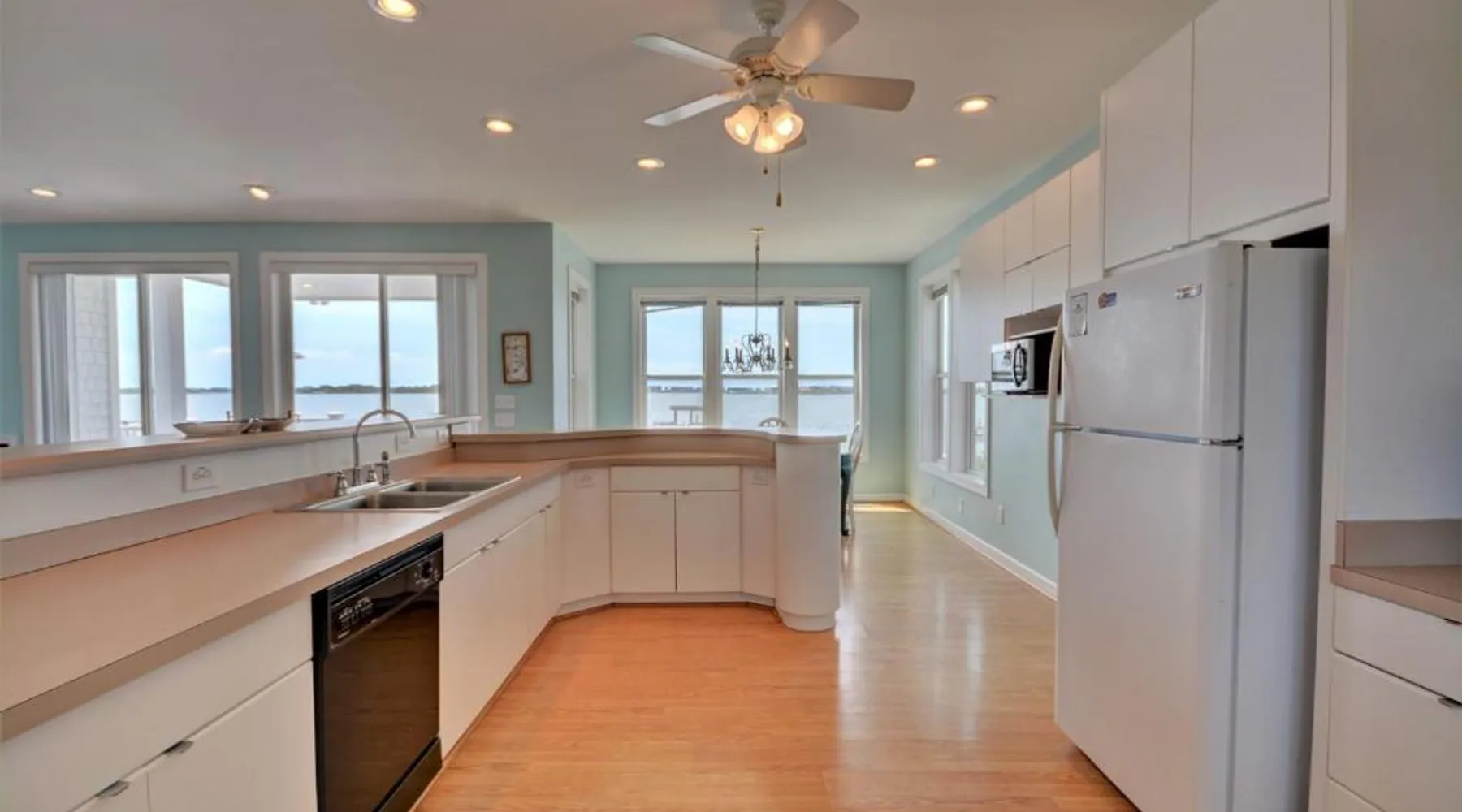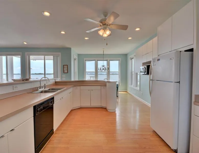 Comfortable Living Spaces: Waterway Hideaway in Sneads Ferry offers a holiday home with three bedrooms and three bathrooms. The property includes a spacious living room and a fully equipped kitchen with modern appliances. Essential Amenities: Guests enjoy free WiFi, air-conditioning, and a balcony. Additional facilities include a washing machine, dishwasher, microwave, and a elevator for easy access. Convenient Location: Located 34 mi from Albert J. Ellis Airport, the property provides free on-site private parking. Reception staff speak English, ensuring a comfortable stay. In the fully equipped kitchen, guests will find a stovetop, a refrigerator, a dishwasher and kitchenware. This air-conditioned holiday home includes a dining area, a flat-screen TV with cable channels a washing machine and a balcony.