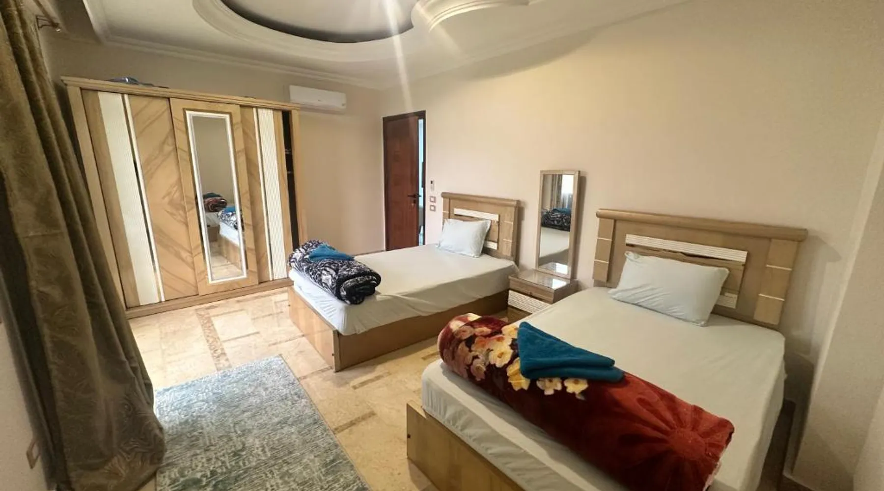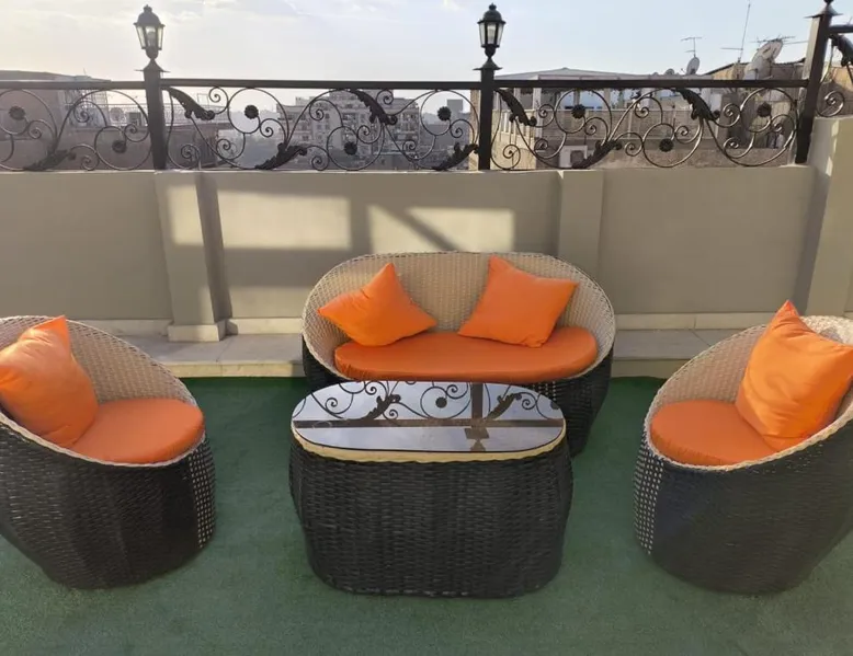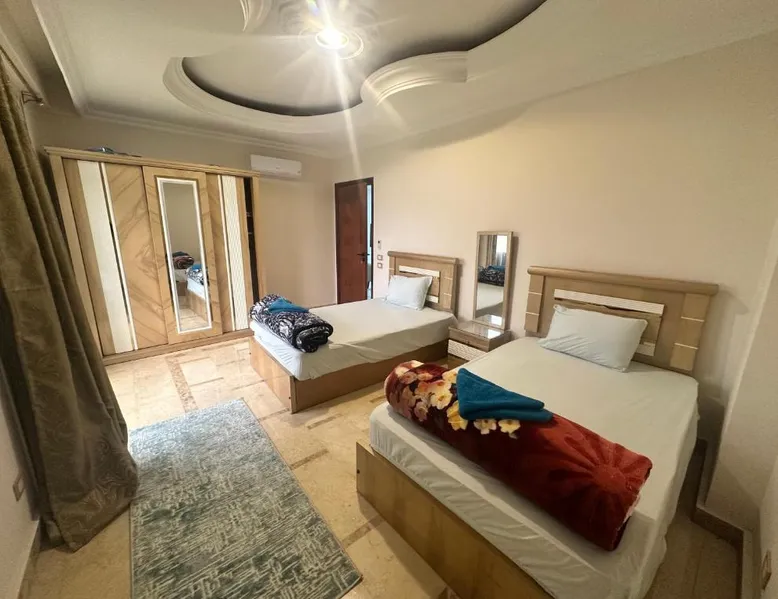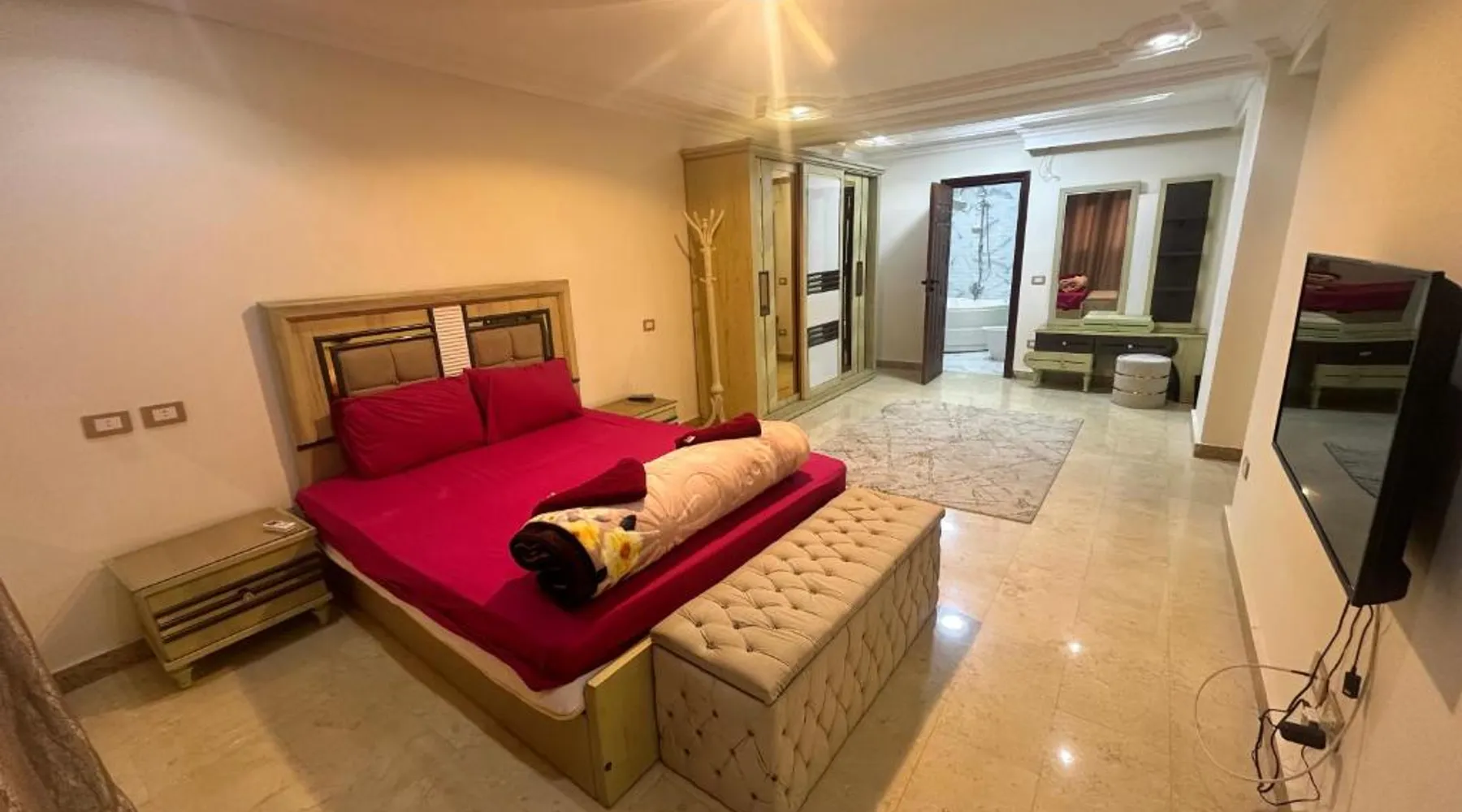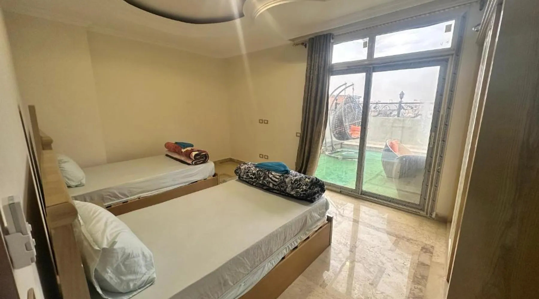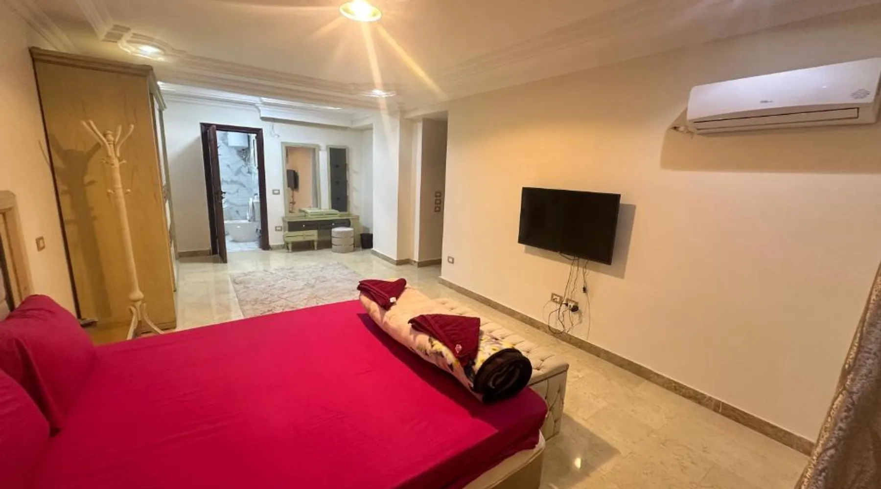Providing city views, Royal King Rooms in Cairo offers accommodations and a garden. This homestay features air-conditioned accommodations with a balcony. The accommodation provides a hot tub, free Wifi throughout the property, and family rooms. All units comprise a seating area with a sofa, a dining area, and a fully equipped kitchen with various cooking facilities, including an oven, a microwave, a fridge, and a stovetop. A terrace with an outdoor dining area and garden views is offered in each unit. At the homestay, all units include bed linen and towels. Cairo International Conference Center (CICC) is 3.1 miles from the homestay, while City Stars is 3.8 miles away. Cairo International Airport is 5.6 miles from the property. Meals can be prepared in the well-fitted kitchen, which comes with a stovetop, a refrigerator, kitchenware and an oven. The spacious double room provides air conditioning, a washing machine, a terrace with garden views as well as a shared bathroom featuring a bath. The unit offers 2 beds.