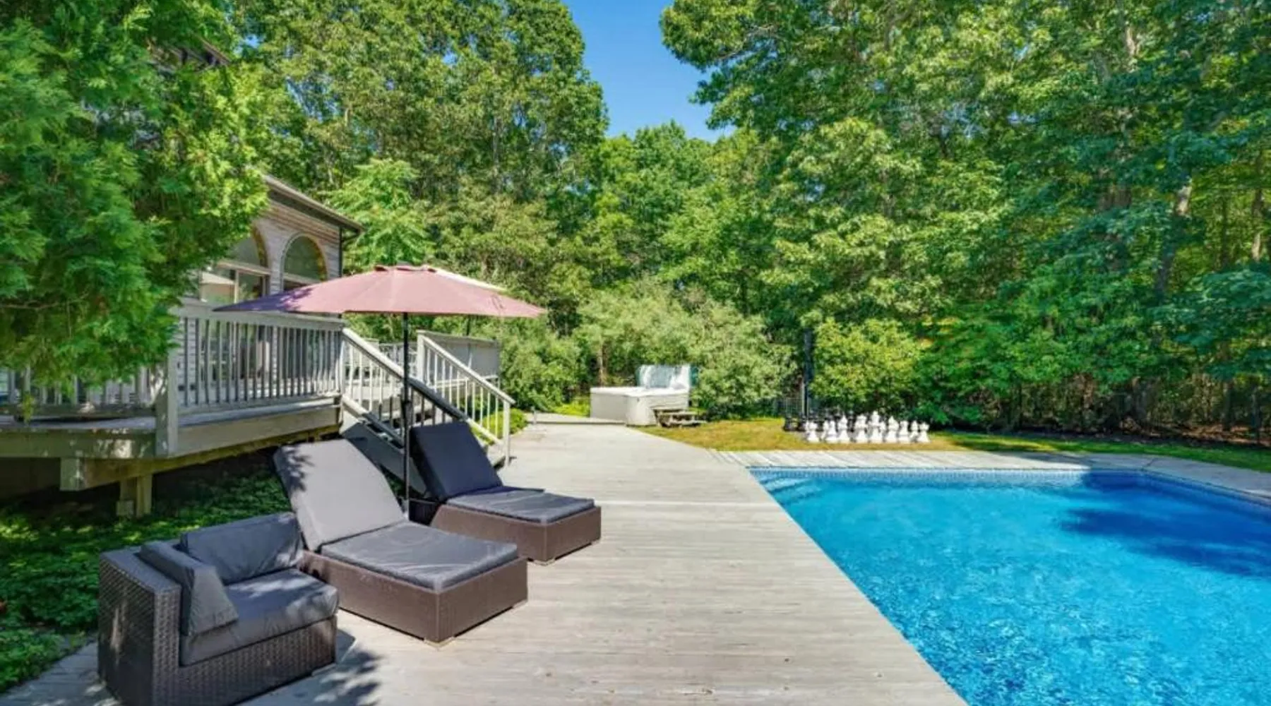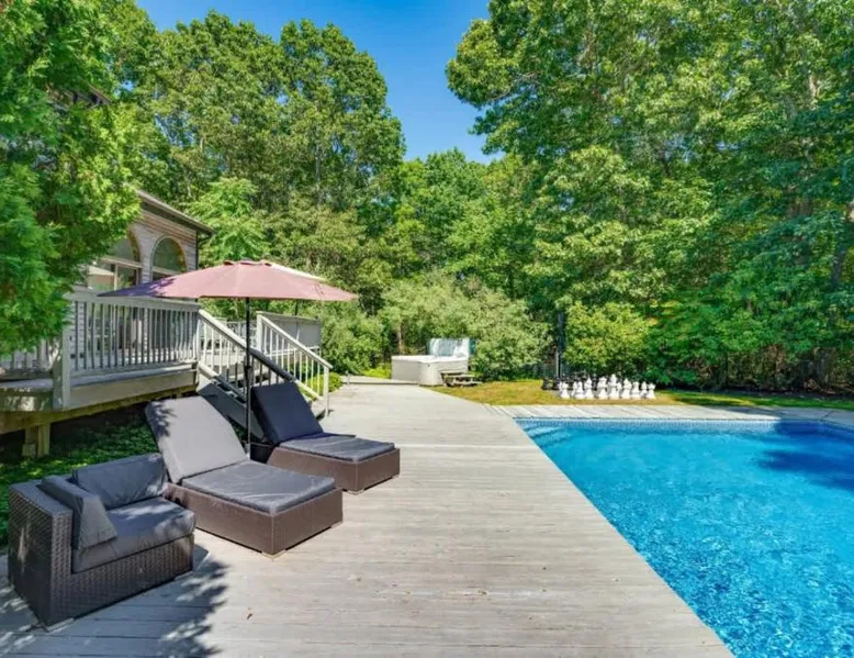 Spacious Holiday Home in Sag Harbor: Entertainment Galore, Meadowood Manor by RoveTravel offers a spacious holiday home in Sag Harbor. The property features a garden and an outdoor swimming pool, complemented by free WiFi. Comfortable Amenities: Guests enjoy air-conditioning, a hot tub, washing machine, patio, and a fully equipped kitchen. Additional amenities include a dining table, work desk, and free toiletries. Convenient Location: Located 46 mi from Long Island MacArthur Airport, the property is near Foster Memorial Beach (1.8 mi), Montauk Point Lighthouse (20 mi), and other attractions. The private pool and hot tub are the standout features of this family room. In the fully equipped kitchen, guests will find a stovetop, a refrigerator, a dishwasher and kitchenware. The spacious air-conditioned family room features a TV with cable channels, a washing machine, a private entrance and a tea and coffee maker. The unit has 6 beds.