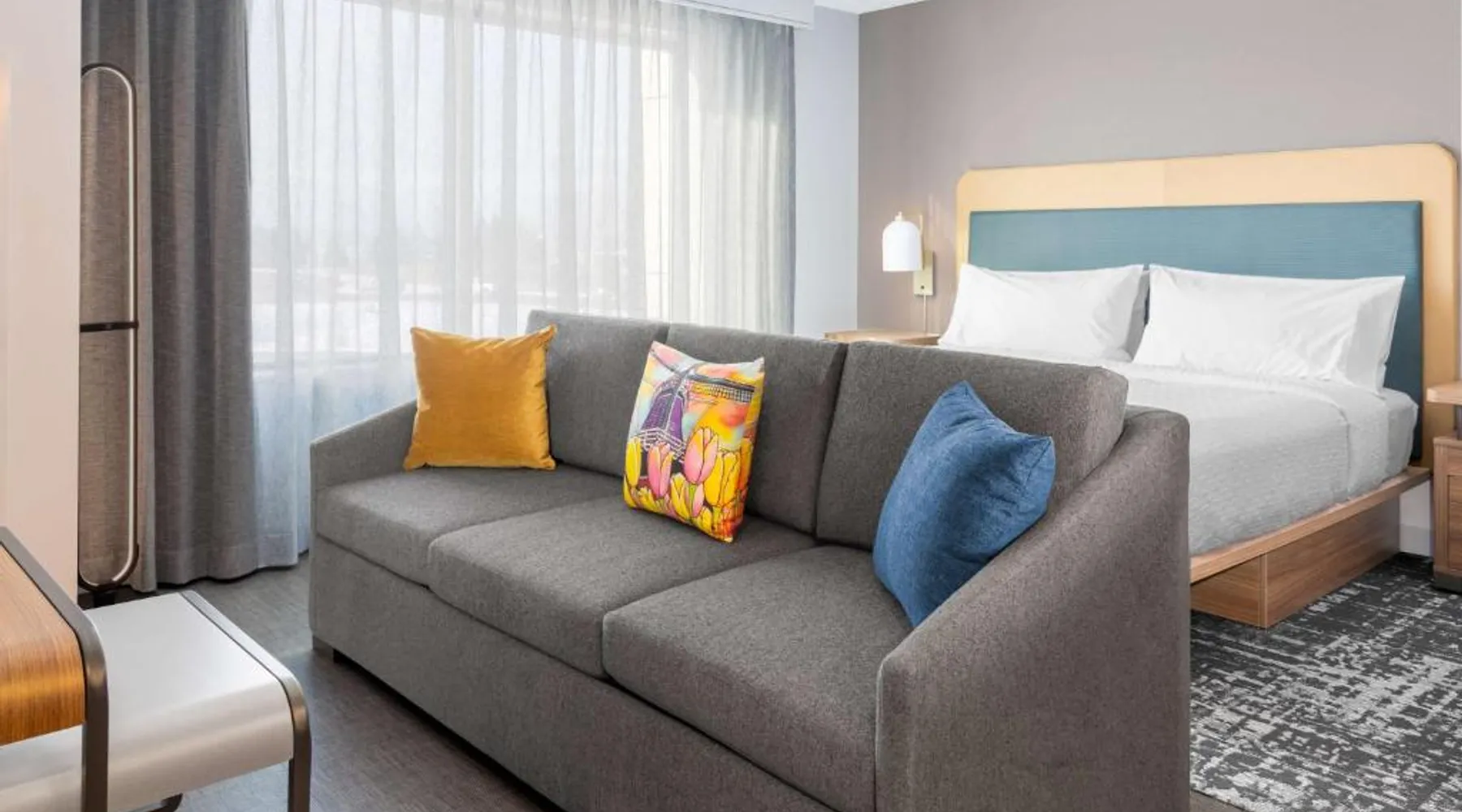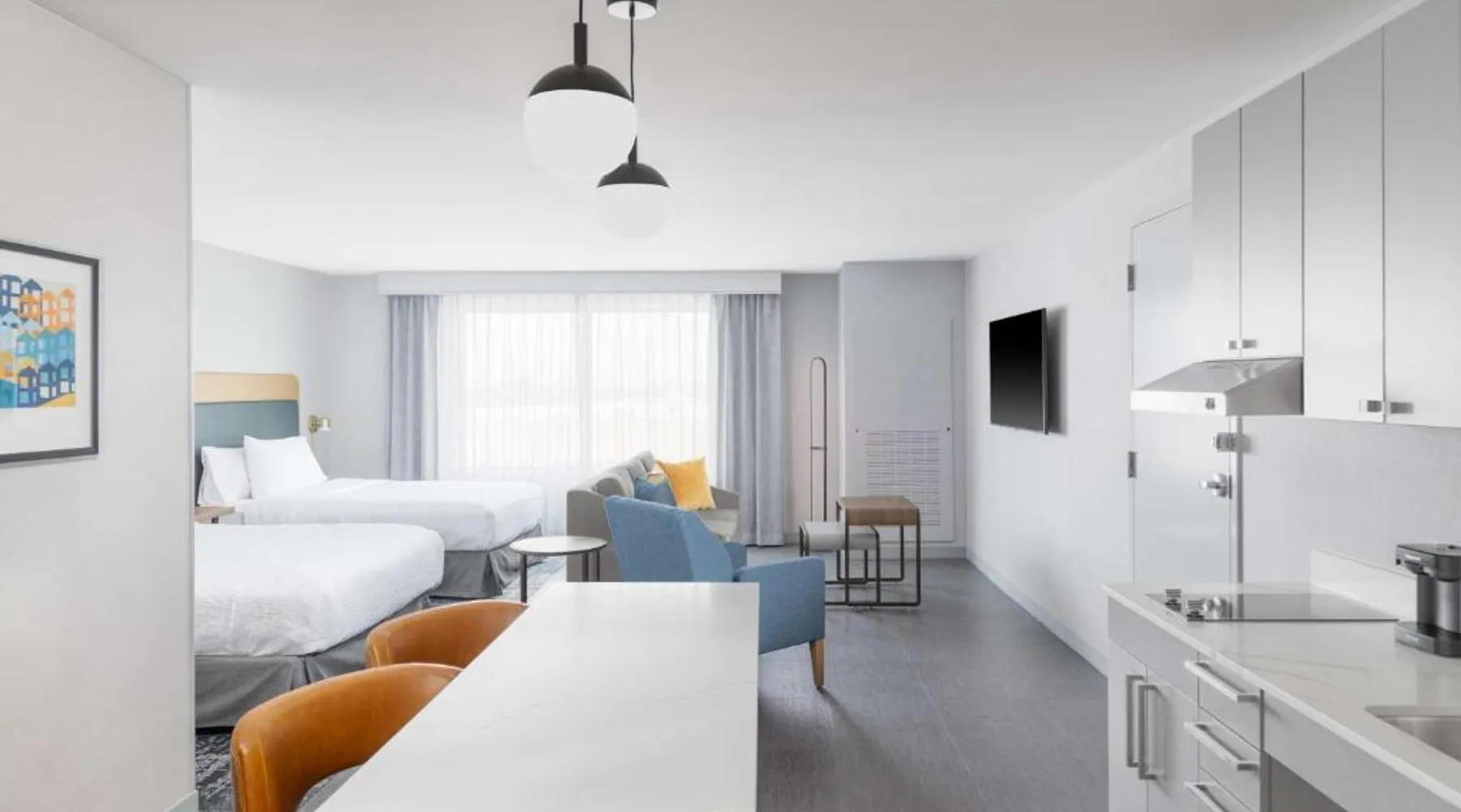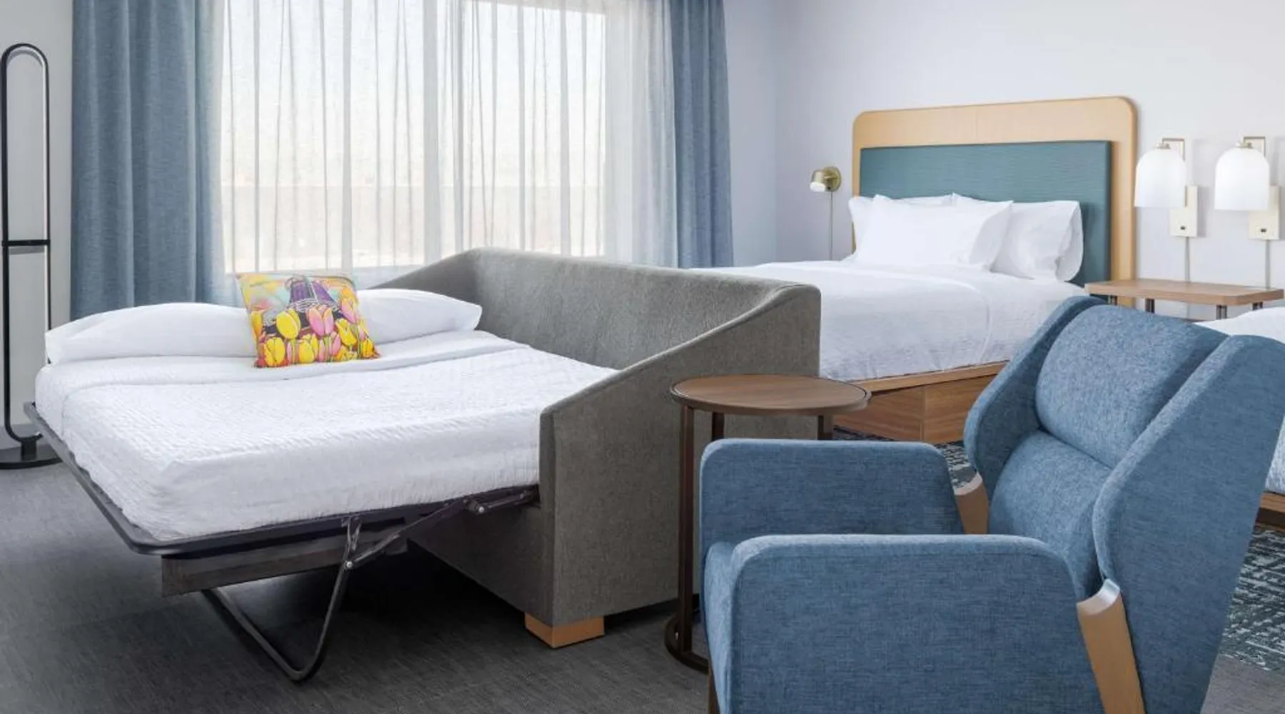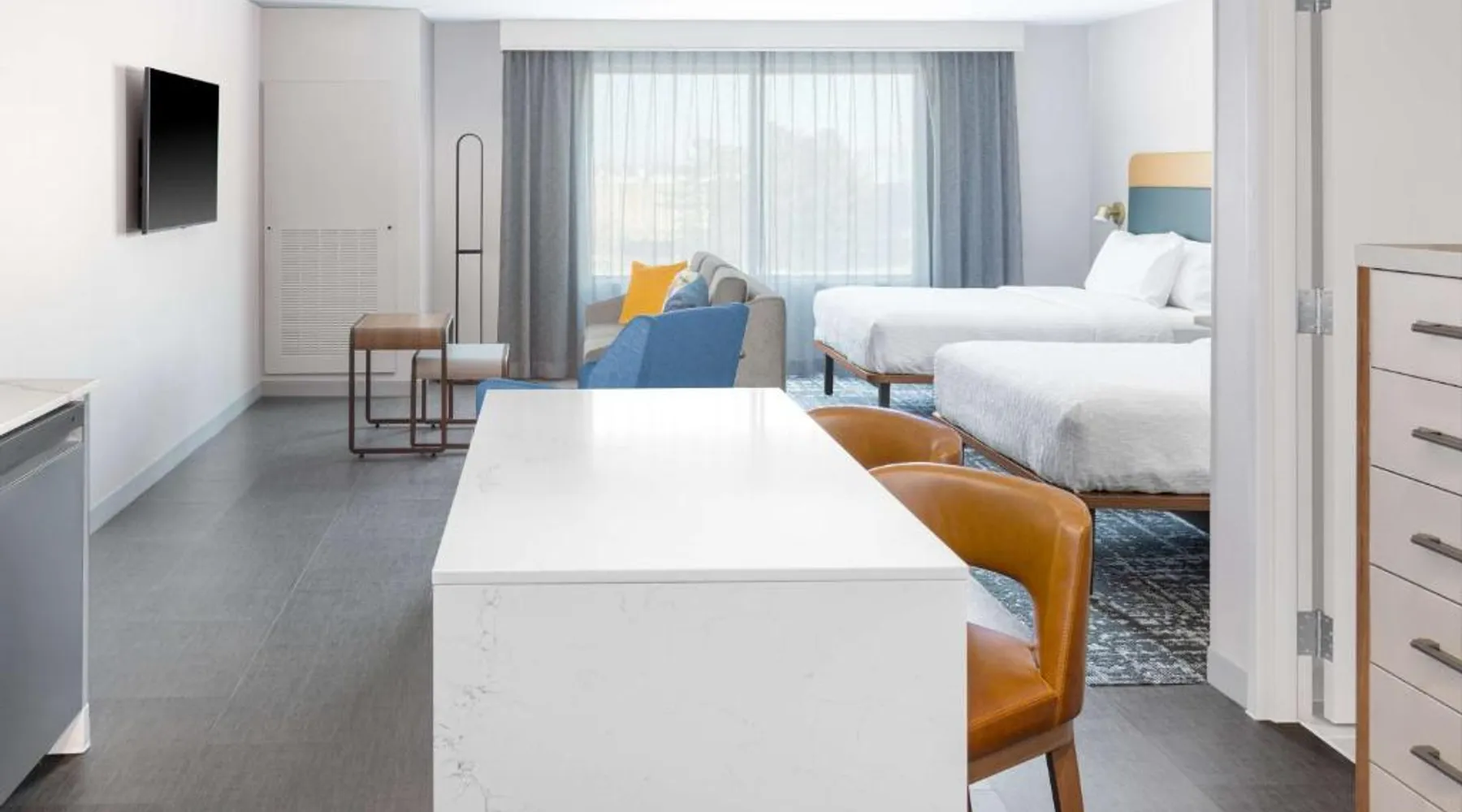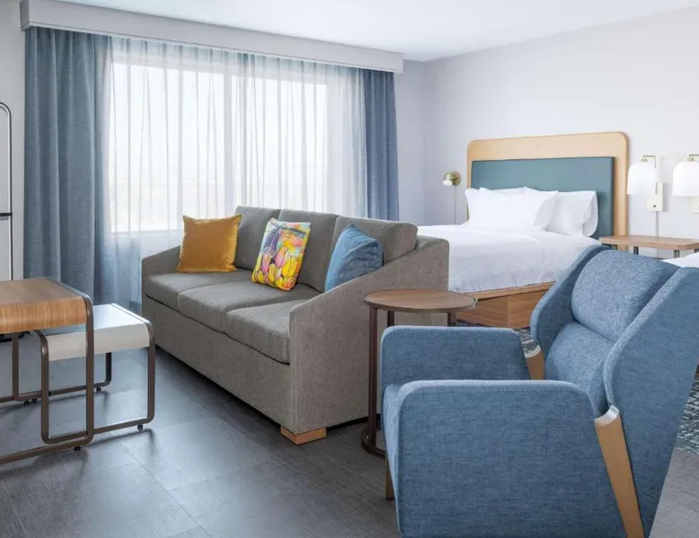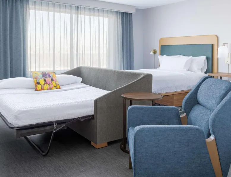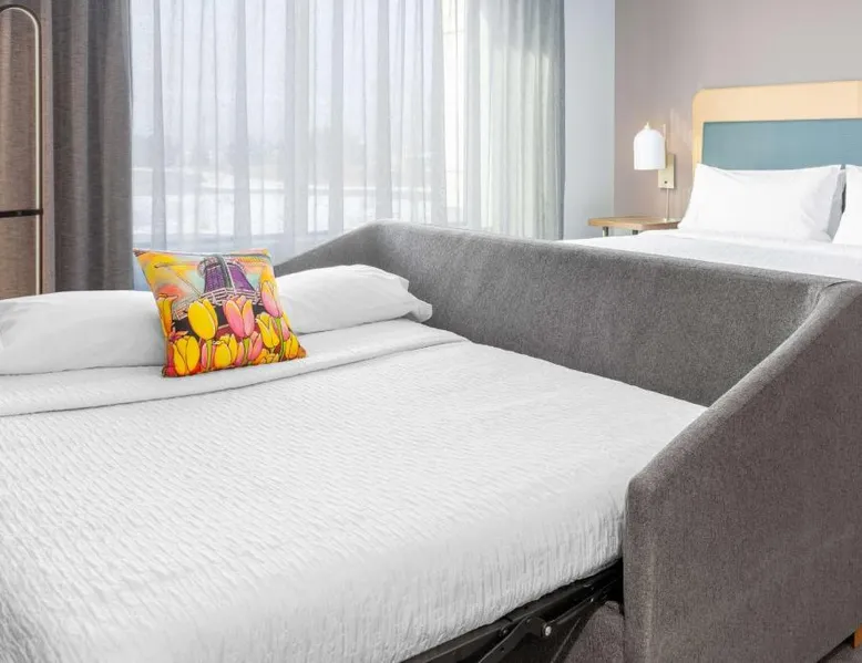 Comfortable Accommodations: Homewood Suites By Hilton Holland in Holland offers family rooms with air-conditioning, private bathrooms, and fully equipped kitchens. Each room includes a sofa bed, dining area, and free toiletries. Exceptional Facilities: Guests can enjoy an indoor swimming pool, fitness room, and 24-hour front desk. Additional amenities include a elevator, washing machine, and interconnected rooms. Delicious Breakfast: A variety of breakfast options are available, including continental, buffet, and à la carte. Breakfast includes warm dishes, fresh pastries, cheese, fruits, and juice. Convenient Location: Located 31 mi from Muskegon County Airport, the hotel is near Grand Valley State University (29 mi), Gerald R. Ford Presidential Museum (29 mi), and Van Andel Arena (29 mi). Highly rated by guests. Featuring free toiletries, this suite includes a private bathroom with a shower and a hairdryer. Guests can make meals in the kitchen that features a stovetop, a refrigerator, a dishwasher and kitchenware. The suite features air conditioning, a washing machine, a tea and coffee maker, a seating area, as well as a flat-screen TV with cable channels. The unit has 2 beds.