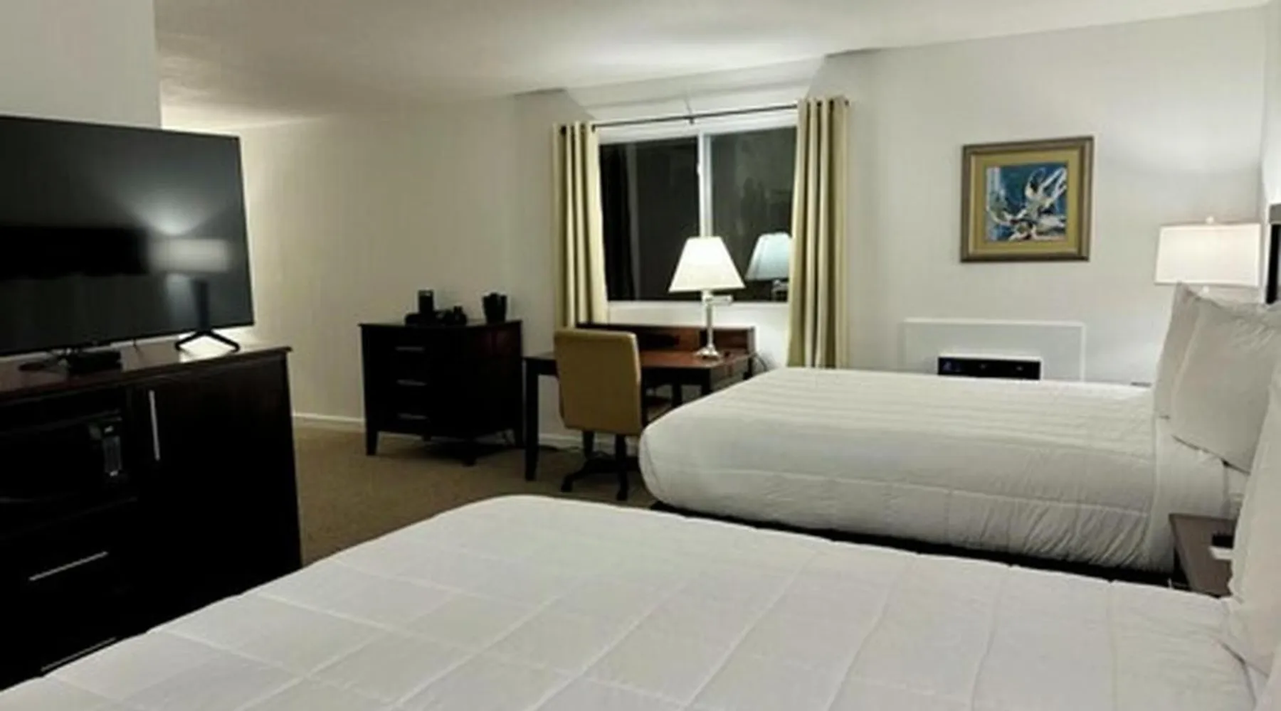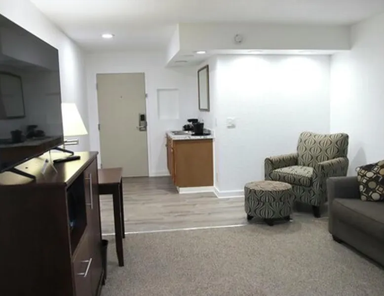 Just off the shores of the Mississippi River, this Quincy hotel features rooms with free WiFi and cable TVs. Tea and coffee-making facilities are included in every room at Heritage Hotel of Quincy. Ironing facilities and a work desk are also provided in all rooms. All guests have access to an on-site fitness center at Heritage Hotel of Quincy. Laundry facilities is also featured on site. Quincy University is 2 miles from this hotel. Sid Simpson State Park is 5 minutes’ drive from the property. Quincy city center is just 10 minutes’ walk away. This spacious suite is consisted of of 1 living room, 1 separate bedroom and 1 bathroom with a bath and a shower. The suite offers air conditioning, a tea and coffee maker, a wardrobe, a carpeted floor and a flat-screen TV with cable channels. The unit offers 2 beds.