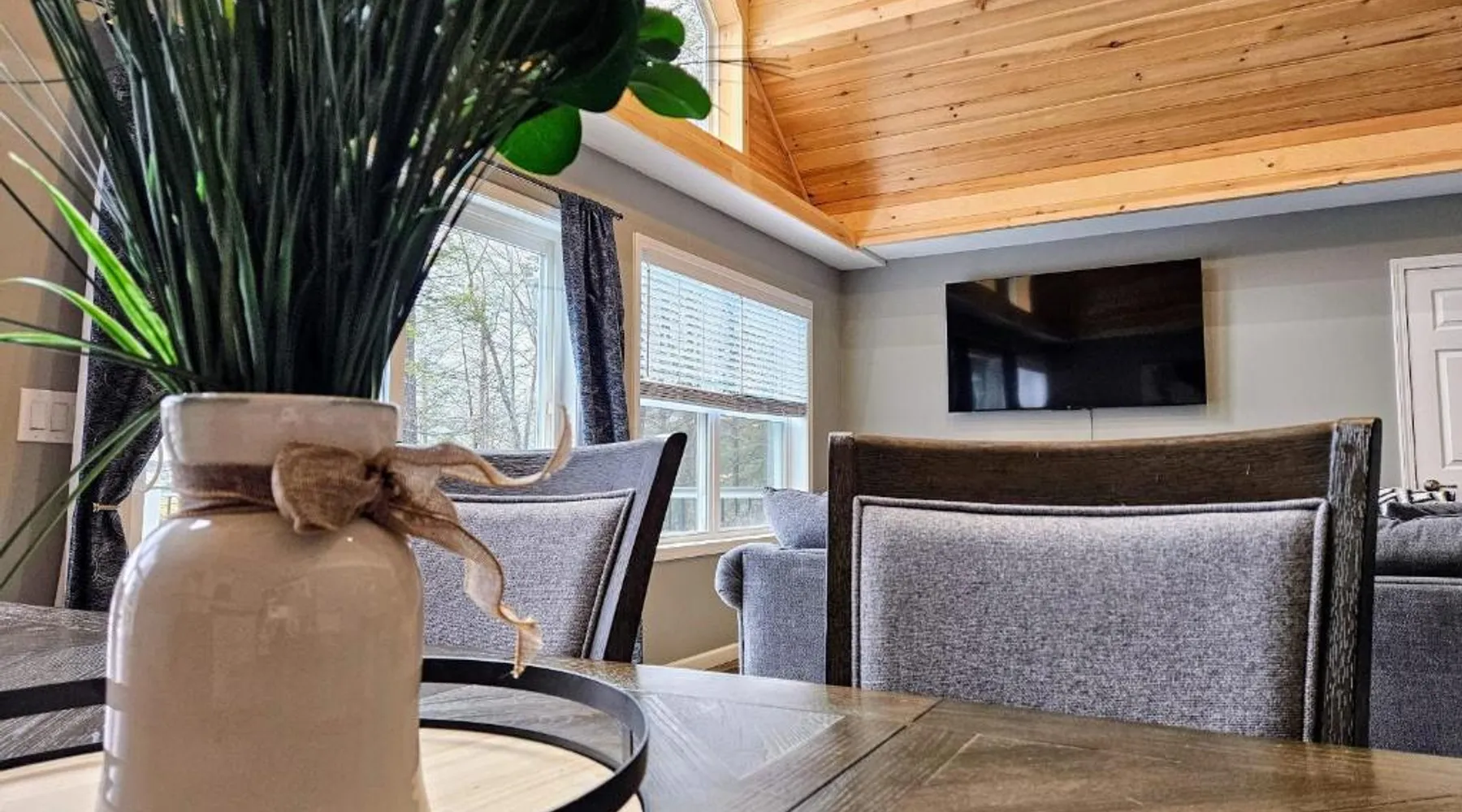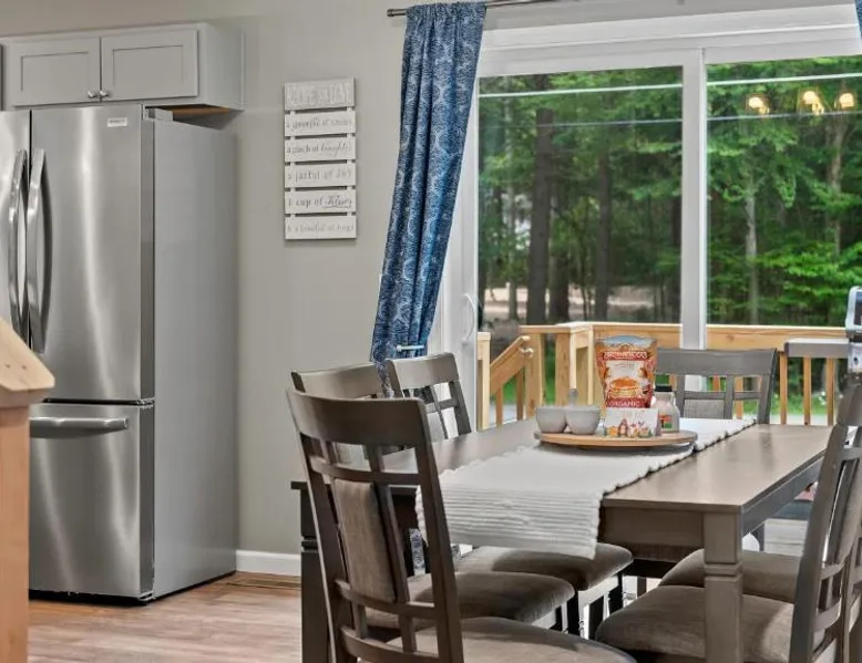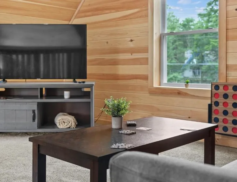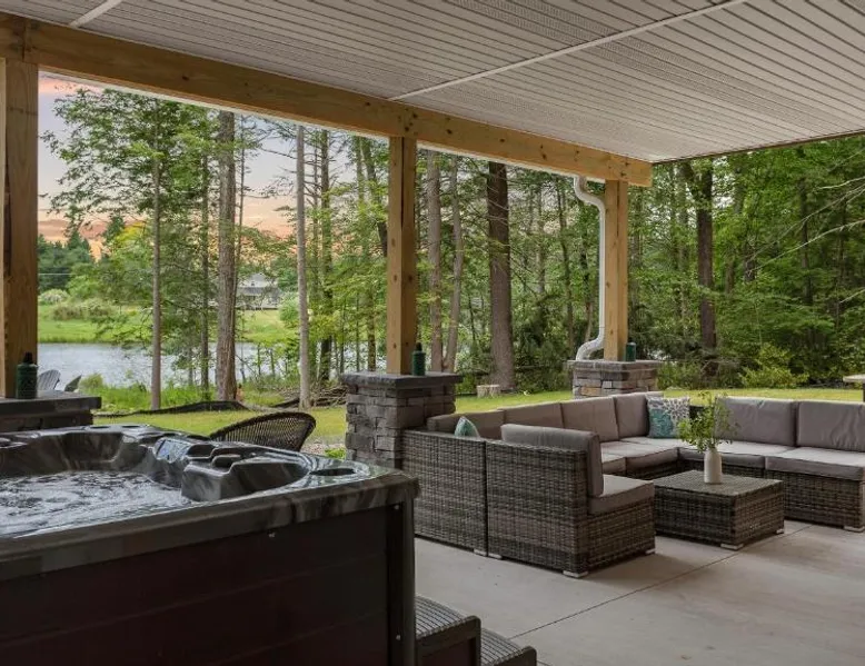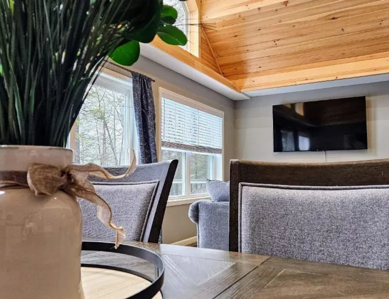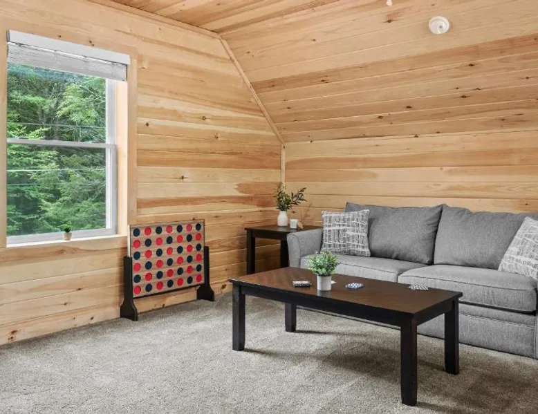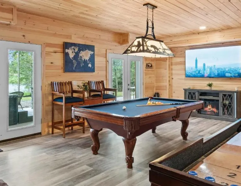 Spacious Holiday Home: Nittany Cabin by AvantStay Lakefront, View, Firepit in Blakeslee offers a spacious setting with free WiFi and a hot tub. Guests enjoy lake and mountain views from the balcony and patio. Modern Amenities: The property features air-conditioning, a fully equipped kitchen, washing machine, and a private bathroom. Additional amenities include a fireplace, TV, and free toiletries. Convenient Location: Located 41 mi from Wilkes-Barre/Scranton International Airport, the holiday home is 31 mi from Delaware Water Gap National Recreation Area and 2.1 mi from Jack Frost Mountain Resort. Nearby attractions include Pocono Raceway (7.5 mi) and Kalahari Waterpark (17 mi). Guests will have a special experience as the holiday home features a fireplace. The fully equipped kitchen features a stovetop, a refrigerator, a dishwasher and kitchenware. The spacious holiday home provides air conditioning, a washing machine, a balcony with lake views as well as a private bathroom featuring a bath.