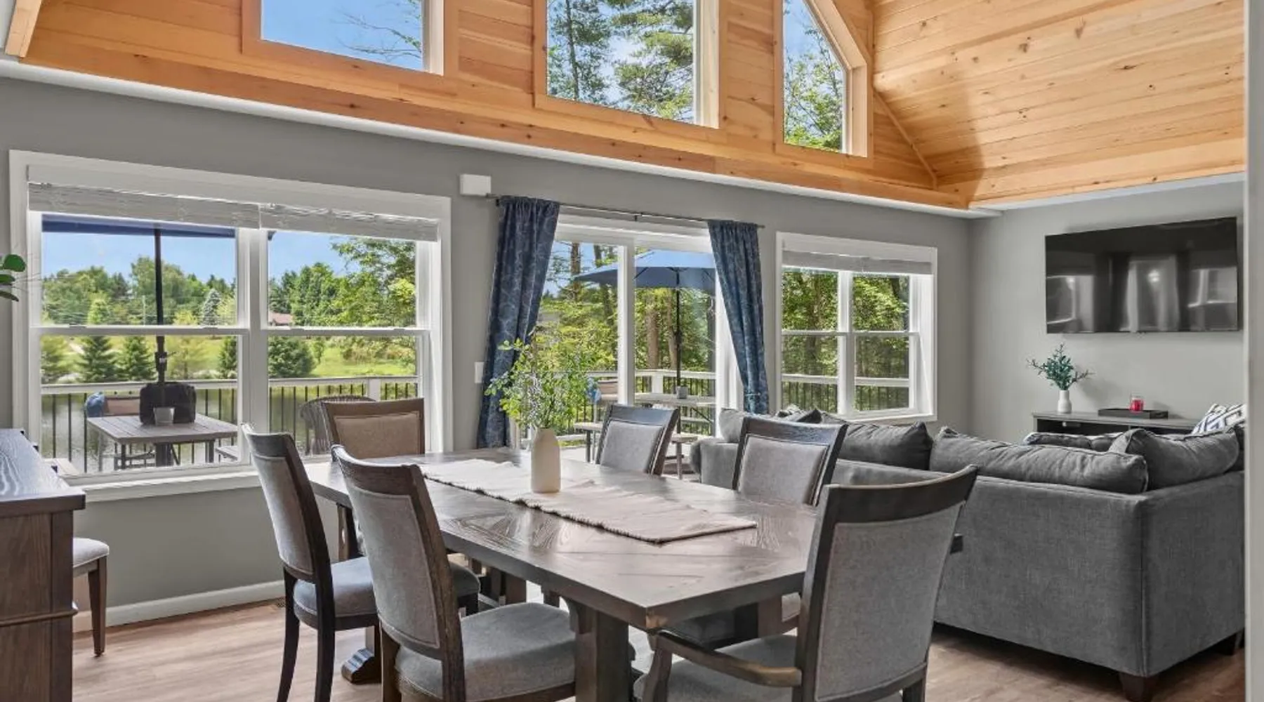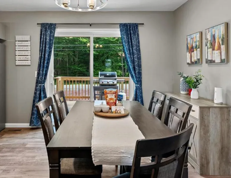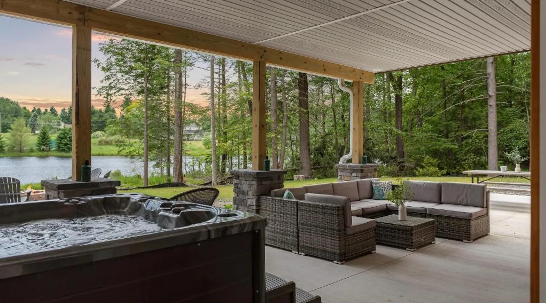 Spacious Holiday Home: Nittany Cabin by AvantStay Lakefront, View, Firepit in Blakeslee offers a spacious setting with free WiFi and a hot tub. Guests enjoy lake and mountain views from the balcony and patio. Modern Amenities: The property features air-conditioning, a fully equipped kitchen, washing machine, and a private bathroom. Additional amenities include a fireplace, TV, and free toiletries. Convenient Location: Located 41 mi from Wilkes-Barre/Scranton International Airport, the holiday home is 31 mi from Delaware Water Gap National Recreation Area and 2.1 mi from Jack Frost Mountain Resort. Nearby attractions include Pocono Raceway (7.5 mi) and Kalahari Waterpark (17 mi). Guests will have a special experience as the holiday home features a fireplace. The fully equipped kitchen features a stovetop, a refrigerator, a dishwasher and kitchenware. The spacious holiday home provides air conditioning, a washing machine, a balcony with lake views as well as a private bathroom featuring a bath.
