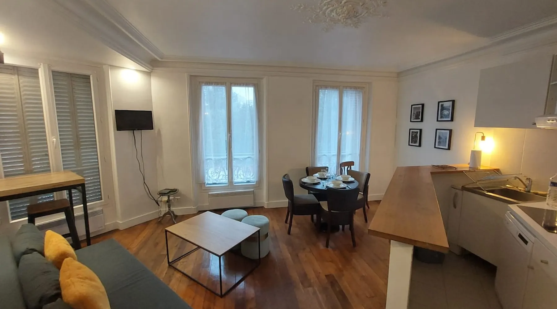 CHIC AND MODERN APARTMENT – PARIS 12TH ARRONDISSEMENT Stay in this stylish refurbished apartment, located rue de Charenton, in the heart of the 12th arrondissement. Spacious and bright, it has two bedrooms with double beds, living room with connected TV, fully equipped kitchen, and convenient laundry. Ideally located near the Gare de Lyon and shops, this apartment combines modern comfort and proximity to Parisian attractions. The space 100% COMFORT – YOUR PRIVILEGED SPACE: → A WARM AND FUNCTIONAL LIVING SPACE: The inviting lounge has a comfortable sofa, a smart TV for Netflix evenings, and a spacious dining table that seats up to 4. Ideal for relaxing or sharing a friendly meal. → FULLY EQUIPPED AND EQUIPPED KITCHEN: The modern kitchen is equipped with everything you need for cooking: hobs, fridge, microwave, dishwasher, coffee machine (capsules provided), as well as a full set of dishes and utensils. → 2 DOUBLE BEDROOMS FOR RESTORATIVE NIGHTS: Each room is equipped with a double bed with quality bedding, guaranteeing you peaceful nights of sleep. Convenient storage is available for an organized and clutter-free stay. → A FUNCTIONAL UTILITY ROOM: For your comfort, the apartment includes a laundry room equipped with a washing machine, a hanging rack and other useful amenities. → A MODERN BATHROOM: The bathroom is equipped with a spacious shower and stylish vanity. Towels and welcome products (soap, shampoo) are included for your convenience. 100% GOOD LOCATION – IN THE HEART OF LIVELY PARIS: → A GREAT LOCATION CLOSE TO AMENITIES: Located near the Gare de Lyon and public transport, this apartment gives you easy access to all the attractions of Paris. The neighborhood is lively and full of local restaurants, cafes, shops and markets. A CONVENIENT SETTING → TO DO EVERYTHING ON FOOT: Discover the charms of Paris nearby: stroll through the Bois de Vincennes, visit the Coulée Verte or explore the Bastille district, all just minutes away. 100% PREMIUM AMENITIES – FOR A PERFECT STAY: Fast ✔ Wifi to work or entertain Premium ✔ linens provided (sheets, towels) ✔ Essentials included (soap, shampoo, coffee capsules) Simplified ✔ check-in with flexible schedules upon request There is currently a problem with the television, this should be resolved soon. PRACTICAL INFORMATION: Apartment located on the 1st floor with elevator Check-in: from 3 p.m. (flexibility possible) Check-out: before 11am Thank you for respecting the premises: parties and noise prohibited Book now to enjoy a comfortable stay in this exceptional apartment in the heart of authentic and dynamic Paris! Guest access Guests will enjoy exclusive access to the entire apartment, including two comfortable bedrooms equipped with double beds and storage, a spacious living room with a connected TV and a friendly dining area, a fully equipped modern kitchen to prepare all your meals, a laundry room with a washing machine and hanging rack, as well as a stylish and functional bathroom. Located on the 1st floor with elevator, access is simple and convenient for everyone. Other things to note The apartment is located in a quiet building. Please respect the neighborhood by causing noise, especially in the evening. Parties and other events are not permitted. Professional cleaning is done before each arrival to ensure impeccable places. Household linens (sheets and towels) as well as basic necessities (soap, shampoo) are provided. Please let me know if you have any specific needs or special requests, I'll be happy to help you plan your stay. Registration Details 7511208404639