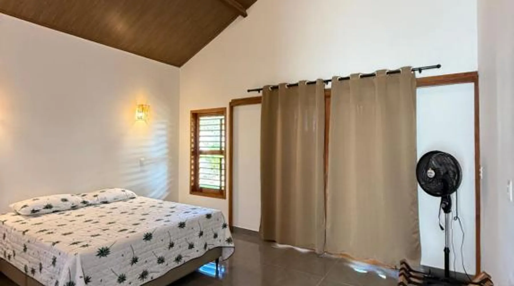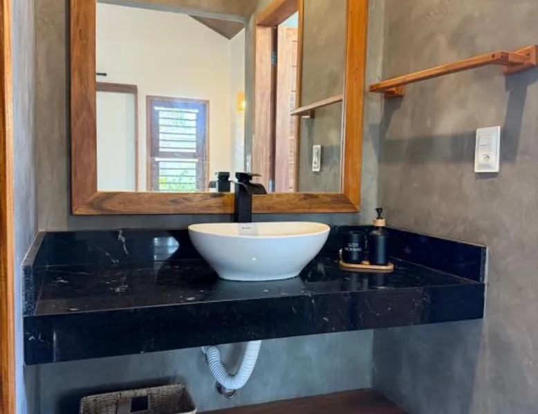 Comfortable Accommodations: Holanda House Jijoca in Jijoca de Jericoacoara offers family rooms with air-conditioning, balconies, and private bathrooms. Each room features garden views, a refrigerator, and a dining area. Outdoor Spaces: Guests can relax in the garden or on the terrace, enjoying the serene surroundings. The property includes a dining table and a dining area, perfect for outdoor meals. Convenient Facilities: The homestay provides free on-site private parking, a tea and coffee maker, and a hairdryer. Reception staff speak English and Portuguese, ensuring smooth communication. Local Attractions: Located 8.7 mi from Ariston Pessoa Regional Airport, the property is close to Dune Por do Sol (15 mi), Pedra Furada (21 mi), Nossa Senhora de Fatima Chapel (16 mi), and Jericoacoara Lighthouse (21 mi). The family room features air conditioning, a dining area, a balcony with garden views as well as a private bathroom boasting a shower. The unit has 1 bed.