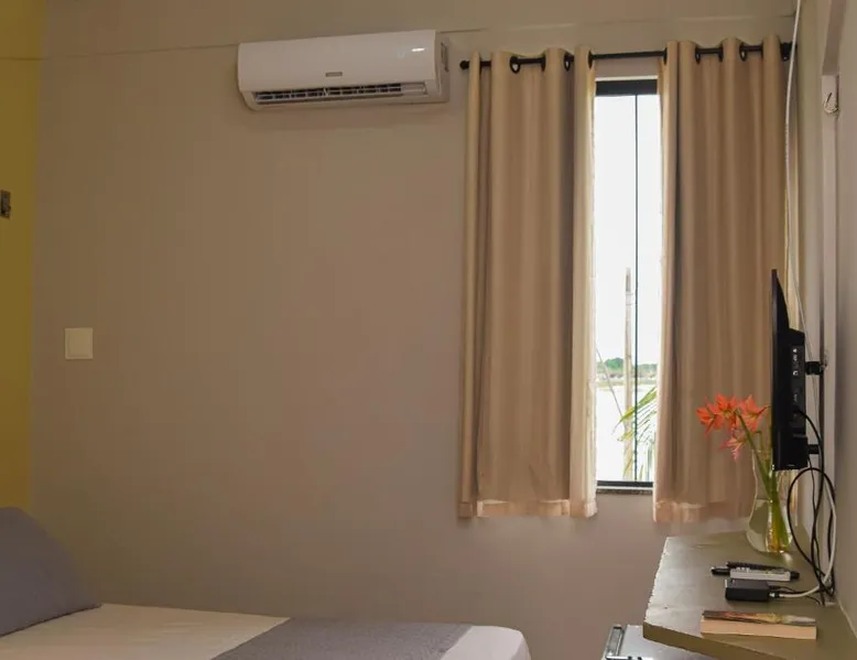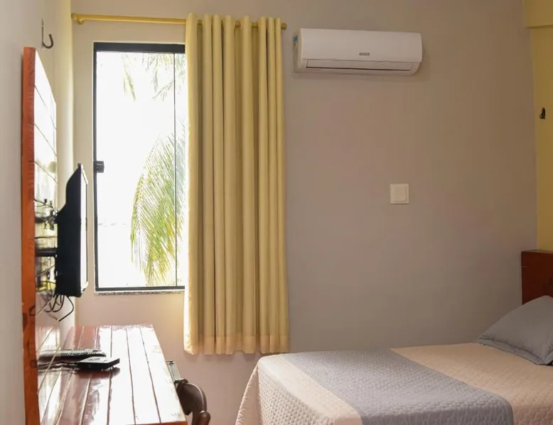 Comfortable Accommodations: Hotel Pousada Do Lago in Campo Maior offers family rooms with private bathrooms, air-conditioning, and balconies with lake, garden, or city views. Each room includes a mini-bar, TV, and wardrobe. Essential Facilities: Guests enjoy free WiFi, private check-in and check-out, a lounge, 24-hour front desk, housekeeping, room service, and free on-site private parking. Dining Options: A continental buffet breakfast is served with juice, cheese, and fruits. Location and Access: Senador Petrônio Portella Airport is 55 mi away. The single room includes a private bathroom equipped with a shower. This single room features a mini-bar, a wardrobe, a flat-screen TV with satellite channels and lake views. The unit offers 1 bed.