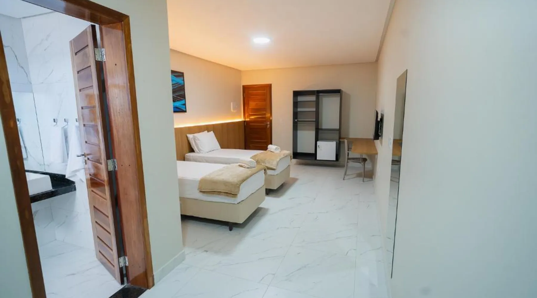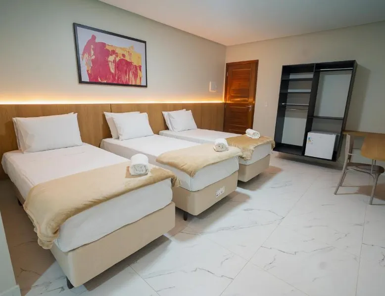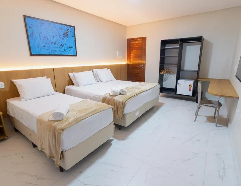 Comfortable Accommodations: Arrey Express Hotel - Piracuruca in Piracuruca offers family rooms with air-conditioning, private bathrooms, work desks, free toiletries, showers, TVs, and wardrobes. Essential Facilities: Guests enjoy a terrace and free WiFi, ensuring relaxation and connectivity during their stay. Convenient Services: The hotel provides a 24-hour front desk, room service, and free on-site private parking. Accessible Location: Located 83 mi from Parnaiba International Airport, the hotel offers easy access to local attractions. Offering free toiletries, this double room includes a private bathroom with a shower. This double room features air conditioning, a wardrobe and a flat-screen TV. The unit offers 1 bed.
