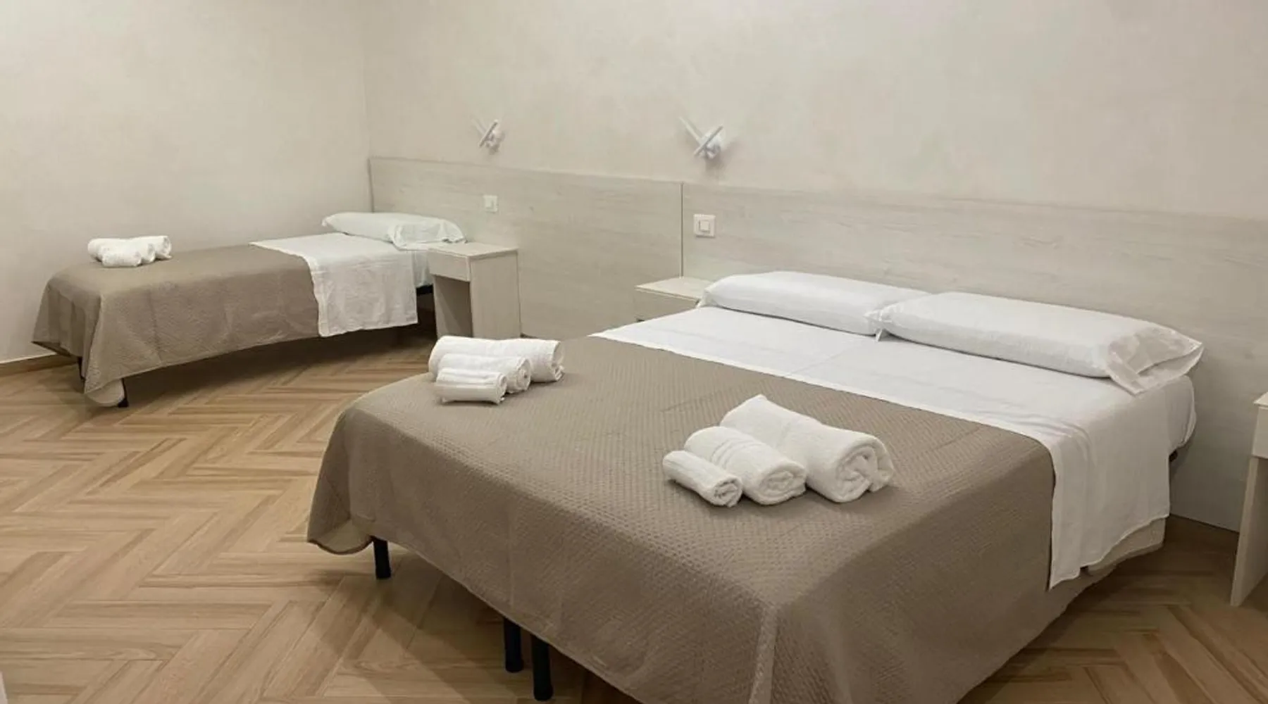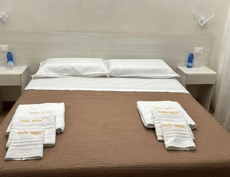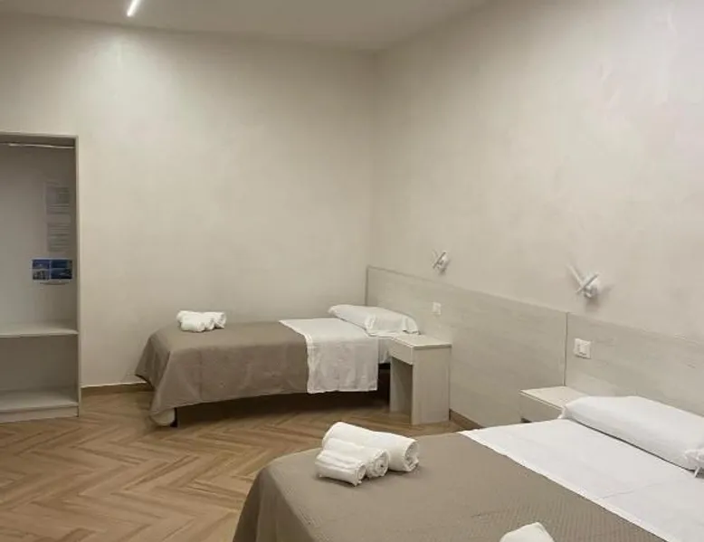 Comfortable Accommodations: B&B Villa Soleil in Vibo Valentia offers family rooms with private bathrooms, air-conditioning, and free WiFi. Each room includes a work desk, TV, and soundproofing for a pleasant stay. Relaxing Facilities: Guests can enjoy a beautiful garden, outdoor seating area, and terrace. The property features a lounge, shared kitchen, minimarket, and housekeeping service, ensuring convenience and comfort. Delicious Breakfast: A buffet breakfast is served daily, offering a variety of options to start the day. The on-site restaurant provides a welcoming atmosphere for meals. Prime Location: Located 25 mi from Lamezia Terme International Airport, the bed and breakfast is near attractions such as Murat Castle (6.8 mi) and Tropea Marina (18 mi). Highly rated for room cleanliness and comfort. This air-conditioned triple room is consisted of of a flat-screen TV with cable channels, a private bathroom as well as a terrace with an inner courtyard view. The unit has 2 beds.