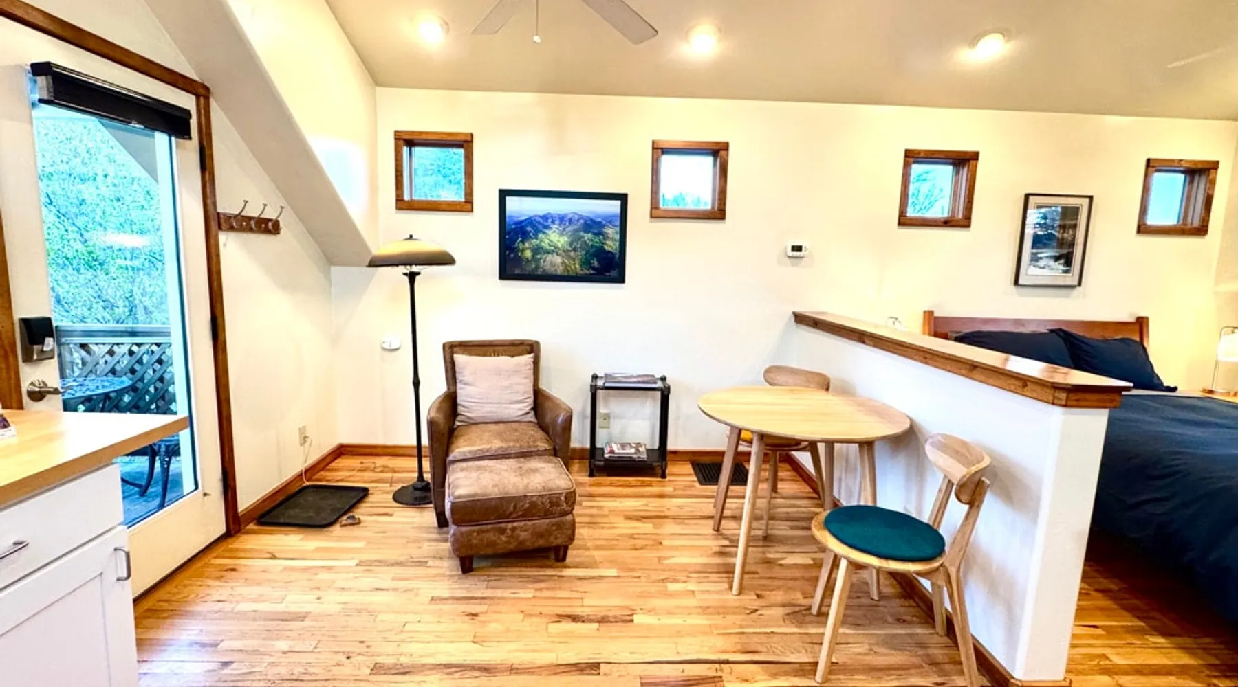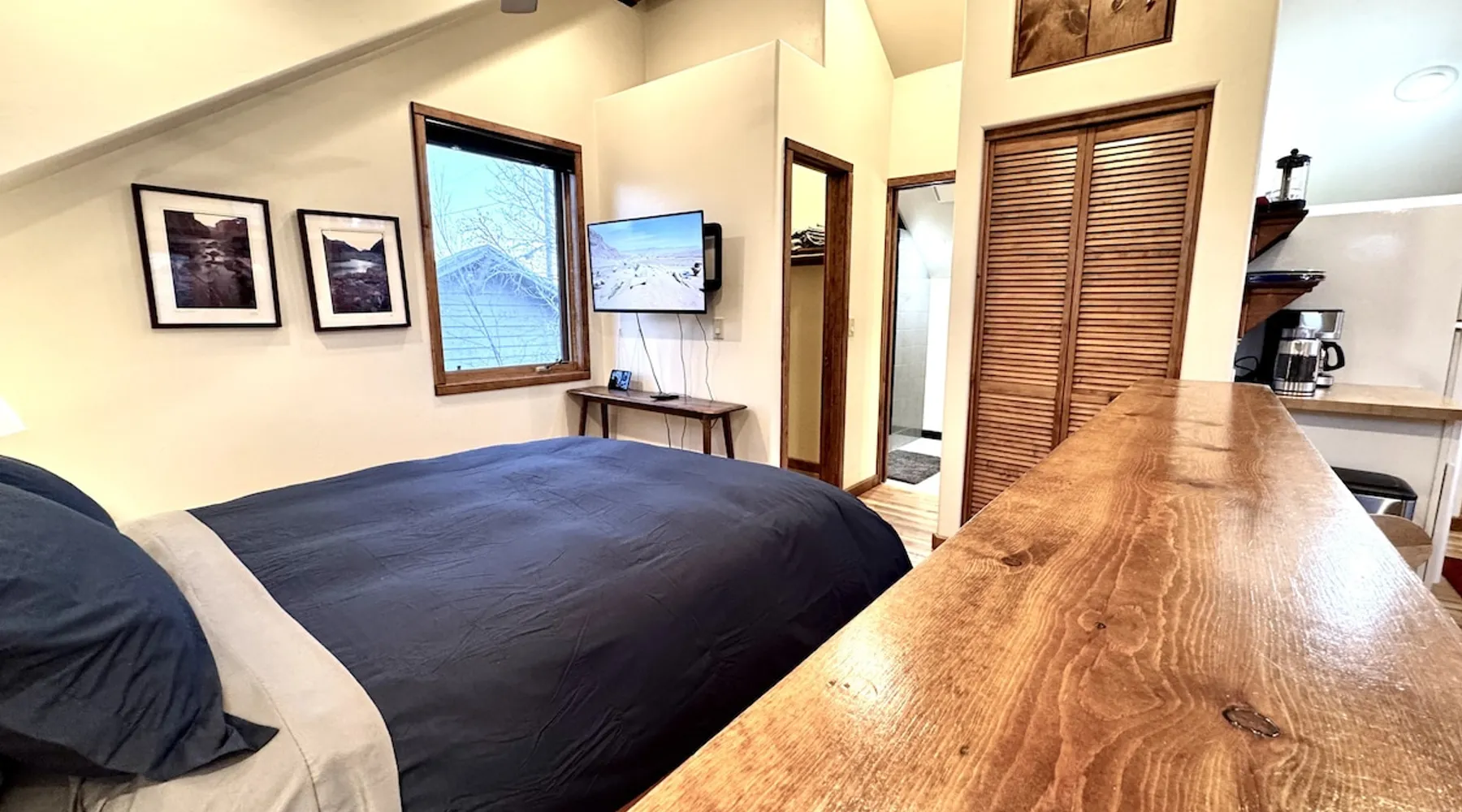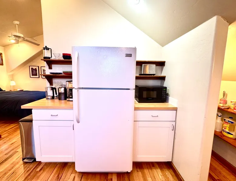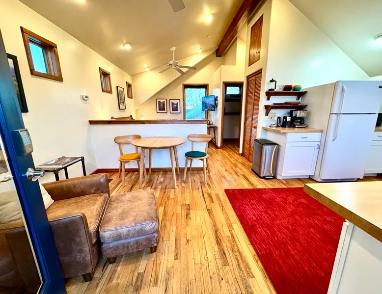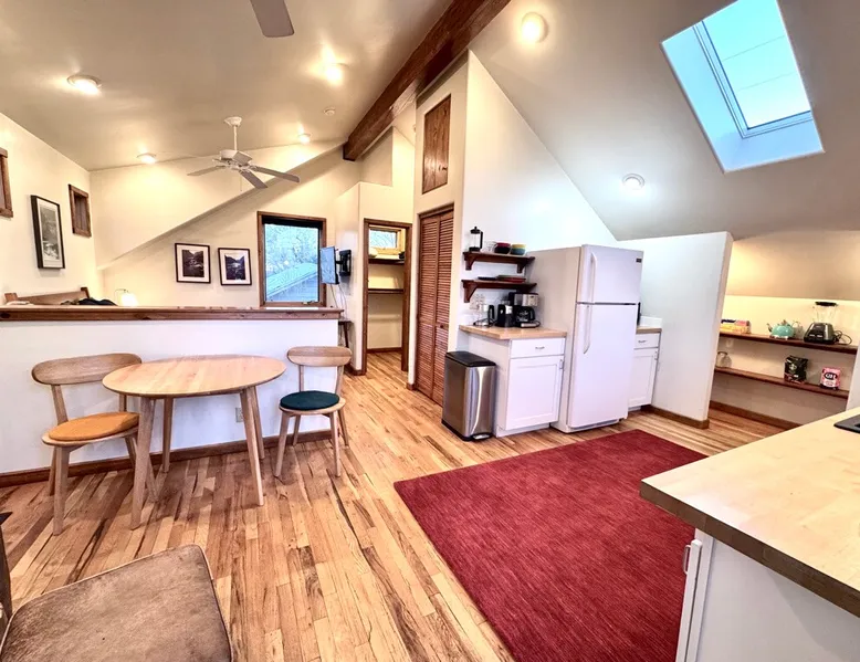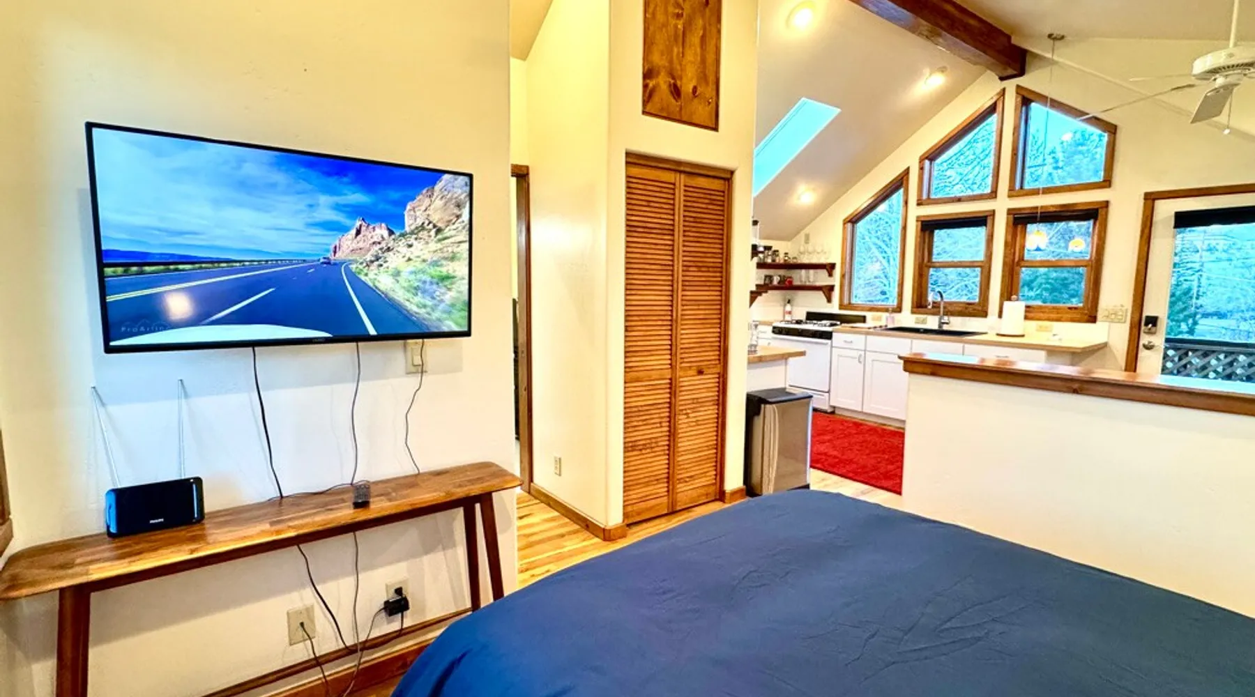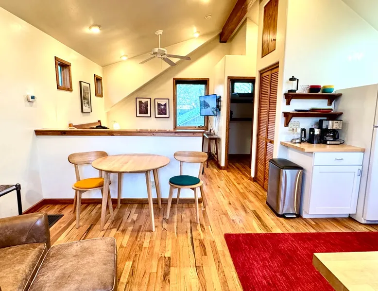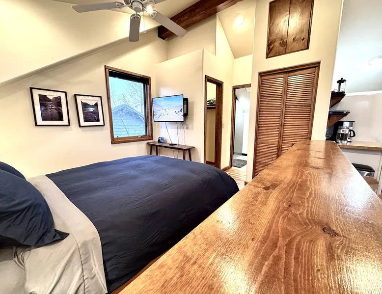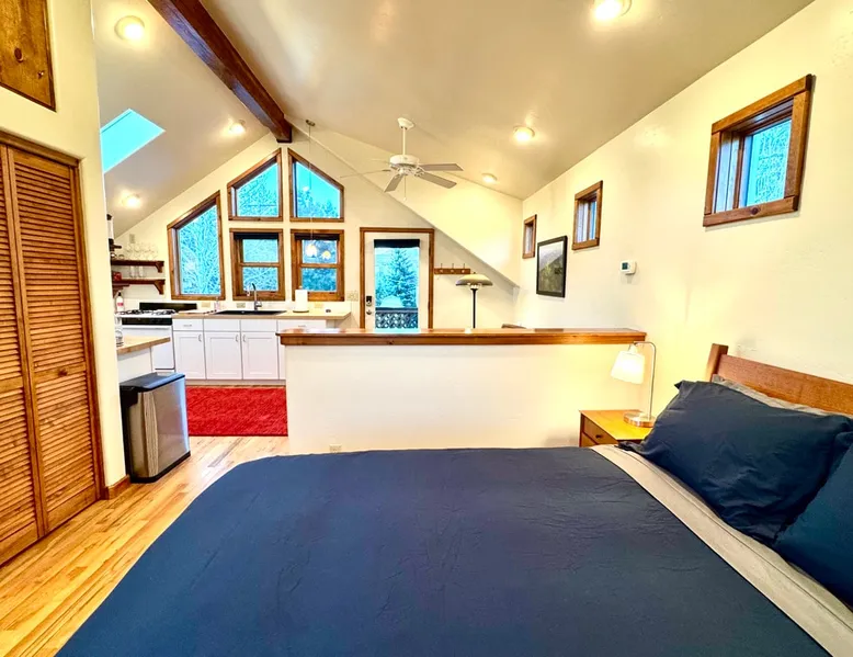 Modern, sunlit studio just two blocks from historic downtown Flagstaff & Route 66! Perched above a detached garage with private entry, this cozy retreat features a queen bed, full bath, well-equipped kitchen, dining area, and charming patio. Dedicated parking, storage for bikes/skis, A/C, Wi-Fi, and in-unit laundry. Walk to shops, dining, and trails—perfect for couples or solo travelers seeking comfort, style, and location. The space Welcome to your perfect Flagstaff getaway! This modern and private upstairs studio is nestled just two blocks from historic downtown Flagstaff and iconic Route 66—putting you within walking distance of charming cafes, local restaurants, breweries, and unique shops. Whether you're here to explore the beauty of northern Arizona or unwind in a cozy, well-appointed space, this studio is the ideal home base. Located above a detached garage and accessed via the back alley, the studio offers complete privacy with a dedicated parking area and a small storage shed—perfect for securely storing your bikes, skis, or other adventure gear. We’re also happy to accommodate early luggage drop-off when possible, with a small fee, to make your travels even easier. Inside, the space is thoughtfully designed for both comfort and functionality. Enjoy restful nights on a queen bed with quality linens, and refresh in the full private bathroom stocked with essentials including body soap, shampoo, and plush towels. The fully equipped kitchen makes it easy to cook at home with an oven, stove, microwave, toaster, blender, and a variety of cooking basics. Enjoy your meals at the dining table for two, or step outside to the private patio at the top of the stairs, where you'll find a small table and chairs—perfect for sipping your morning coffee or relaxing with a glass of wine in the fresh mountain air. Coffee lovers will appreciate the variety of brewing options: a drip coffee maker, French press, and pour-over setup are all available, along with complimentary coffee to get you started. Additional amenities include: Air conditioning and central heating Ceiling fans Fast, reliable Wi-Fi Smart TV for streaming In-unit washer and dryer Hair dryer, hangers, and ample clothing storage Books and reading material Fire extinguisher, smoke and carbon monoxide alarms for your safety Whether you’re staying for a weekend escape or a longer adventure (we welcome long-term stays of 28+ days), this inviting and thoughtfully stocked studio is ideal for solo travelers or couples seeking the best of Flagstaff. Come enjoy a peaceful stay in a prime location—your elevated escape awaits! Guest access You have the entire guest home to yourself and the private parking. Other things to note The unit sits above a garage and next to the owners home. He does have a dog in the back yard but it is well behaved and does not bark. Northern Arizona gets snow. Flagstaff is at 7,000ft above sea level and averages almost 100” of snow per year. Snow typically starts in late November and can last as late as June. The snowiest months are December through March and the snow amounts can vary greatly from year to year. If you choose to travel in Northern Arizona during the winter months you should be prepared to drive in the snow. Look ahead at the weather forecast as your trip gets closer and plan ahead. The website Az511 is a great resource for road conditions in Arizona. A vehicle with AWD is recommended. If you don’t have AWD, have tire chains with you and know how to use them. Keep extra food, water and blankets in the car in case you are stuck somewhere for an extended period of time. We will shovel the driveway and front walk to the door of the home once a storm has finished. Be prepared to shovel yourself if needed. Most online travel agencies (like Airbnb) offer travel insurance at a reasonable price. If you are making a reservation during the winter months you may want to consider purchasing the insurance in case the winter weather prevents you from getting to the home.