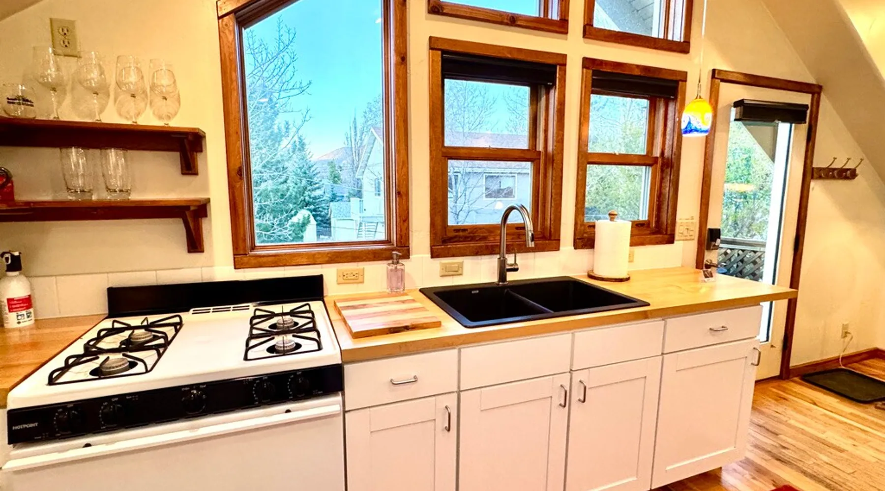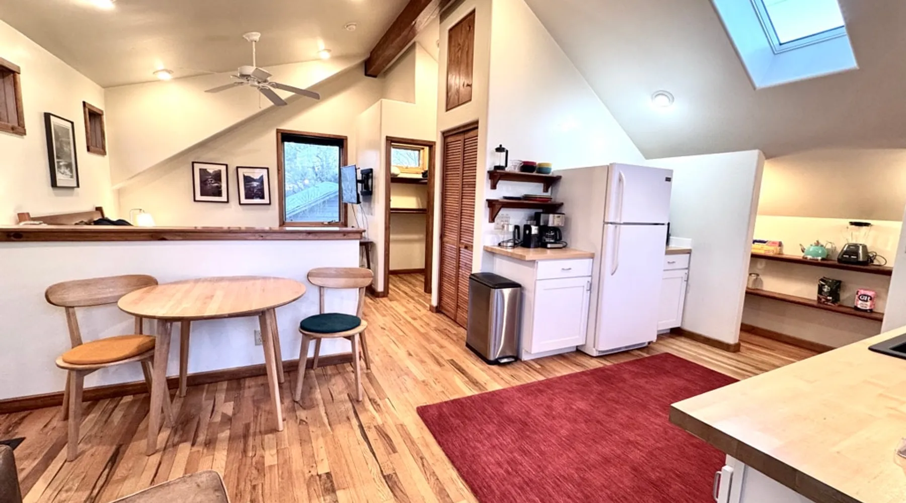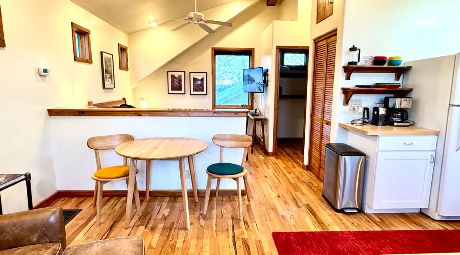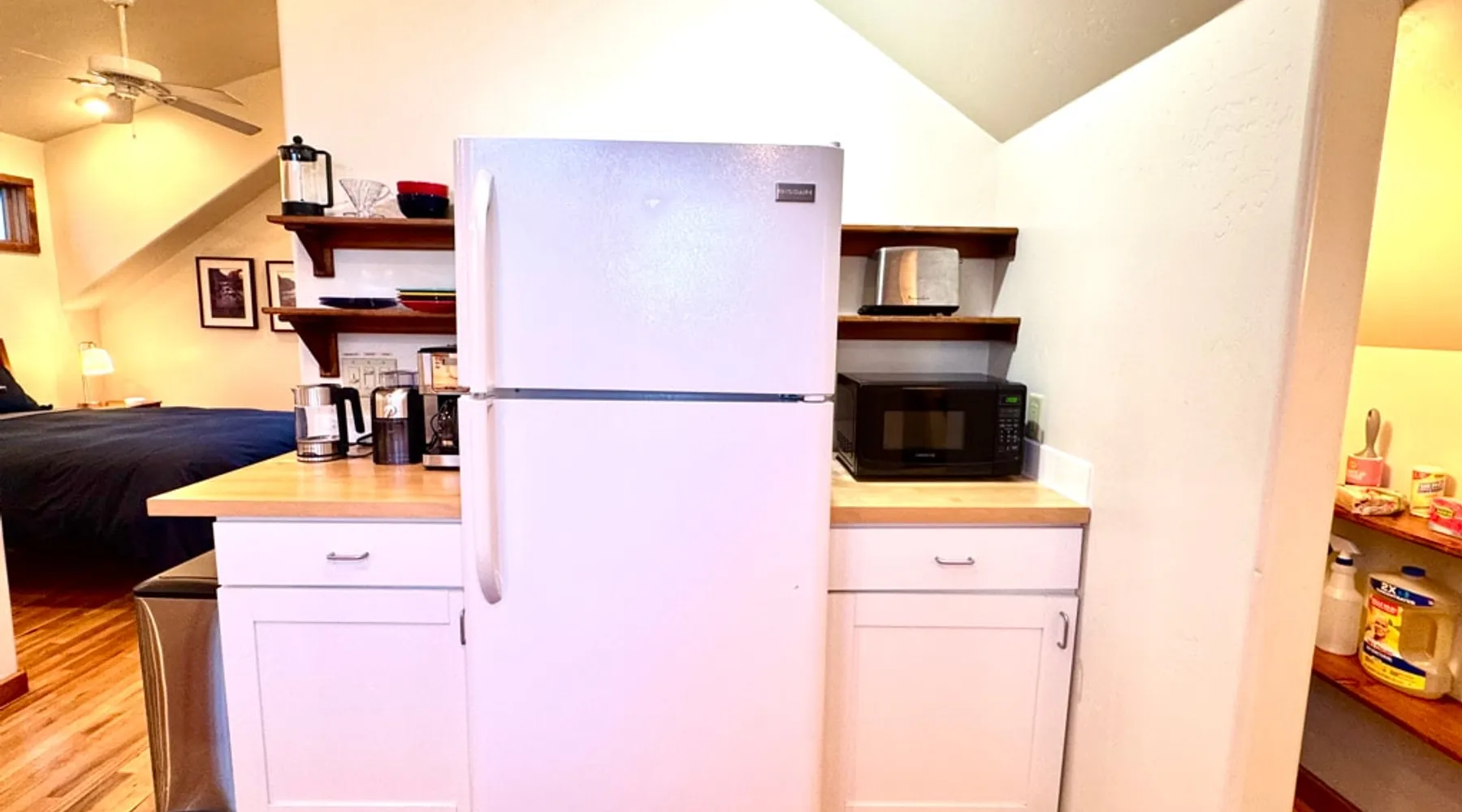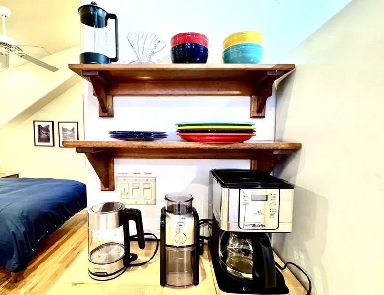 Modern, sunlit studio just two blocks from historic downtown Flagstaff & Route 66! Perched above a detached garage with private entry, this cozy retreat features a queen bed, full bath, well-equipped kitchen, dining area, and charming patio. Dedicated parking, storage for bikes/skis, A/C, Wi-Fi, and in-unit laundry. Walk to shops, dining, and trails—perfect for couples or solo travelers seeking comfort, style, and location. The space Welcome to your perfect Flagstaff getaway! This modern and private upstairs studio is nestled just two blocks from historic downtown Flagstaff and iconic Route 66—putting you within walking distance of charming cafes, local restaurants, breweries, and unique shops. Whether you're here to explore the beauty of northern Arizona or unwind in a cozy, well-appointed space, this studio is the ideal home base. Located above a detached garage and accessed via the back alley, the studio offers complete privacy with a dedicated parking area and a small storage shed—perfect for securely storing your bikes, skis, or other adventure gear. We’re also happy to accommodate early luggage drop-off when possible, with a small fee, to make your travels even easier. Inside, the space is thoughtfully designed for both comfort and functionality. Enjoy restful nights on a queen bed with quality linens, and refresh in the full private bathroom stocked with essentials including body soap, shampoo, and plush towels. The fully equipped kitchen makes it easy to cook at home with an oven, stove, microwave, toaster, blender, and a variety of cooking basics. Enjoy your meals at the dining table for two, or step outside to the private patio at the top of the stairs, where you'll find a small table and chairs—perfect for sipping your morning coffee or relaxing with a glass of wine in the fresh mountain air. Coffee lovers will appreciate the variety of brewing options: a drip coffee maker, French press, and pour-over setup are all available, along with complimentary coffee to get you started. Additional amenities include: Air conditioning and central heating Ceiling fans Fast, reliable Wi-Fi Smart TV for streaming In-unit washer and dryer Hair dryer, hangers, and ample clothing storage Books and reading material Fire extinguisher, smoke and carbon monoxide alarms for your safety Whether you’re staying for a weekend escape or a longer adventure (we welcome long-term stays of 28+ days), this inviting and thoughtfully stocked studio is ideal for solo travelers or couples seeking the best of Flagstaff. Come enjoy a peaceful stay in a prime location—your elevated escape awaits! Guest access You have the entire guest home to yourself and the private parking. Other things to note The unit sits above a garage and next to the owners home. He does have a dog in the back yard but it is well behaved and does not bark. Northern Arizona gets snow. Flagstaff is at 7,000ft above sea level and averages almost 100” of snow per year. Snow typically starts in late November and can last as late as June. The snowiest months are December through March and the snow amounts can vary greatly from year to year. If you choose to travel in Northern Arizona during the winter months you should be prepared to drive in the snow. Look ahead at the weather forecast as your trip gets closer and plan ahead. The website Az511 is a great resource for road conditions in Arizona. A vehicle with AWD is recommended. If you don’t have AWD, have tire chains with you and know how to use them. Keep extra food, water and blankets in the car in case you are stuck somewhere for an extended period of time. We will shovel the driveway and front walk to the door of the home once a storm has finished. Be prepared to shovel yourself if needed. Most online travel agencies (like Airbnb) offer travel insurance at a reasonable price. If you are making a reservation during the winter months you may want to consider purchasing the insurance in case the winter weather prevents you from getting to the home.