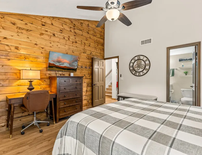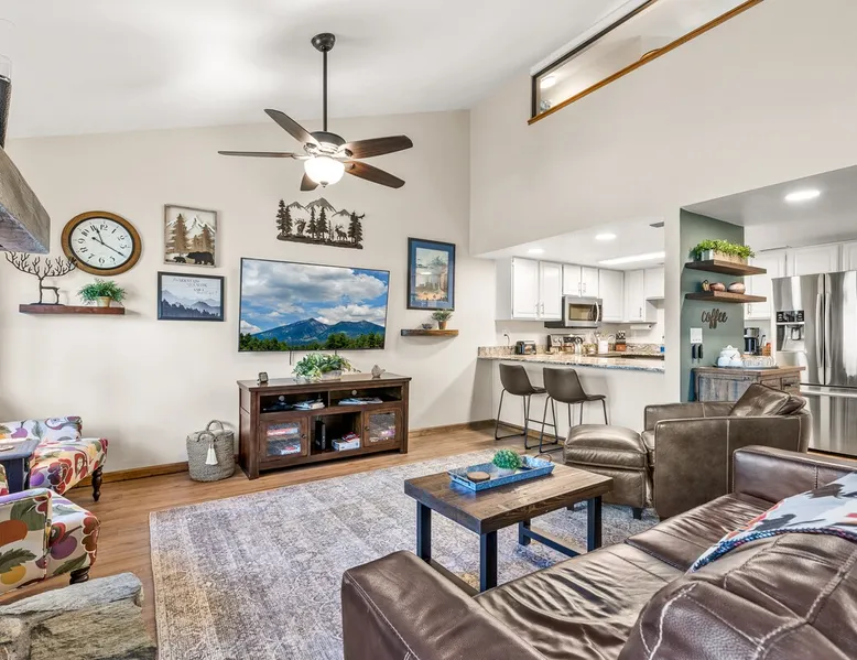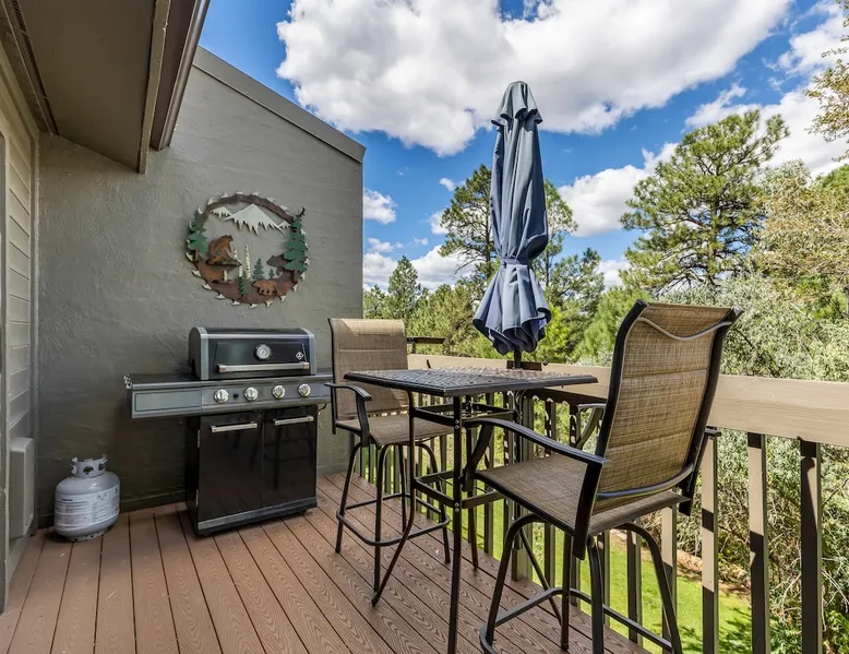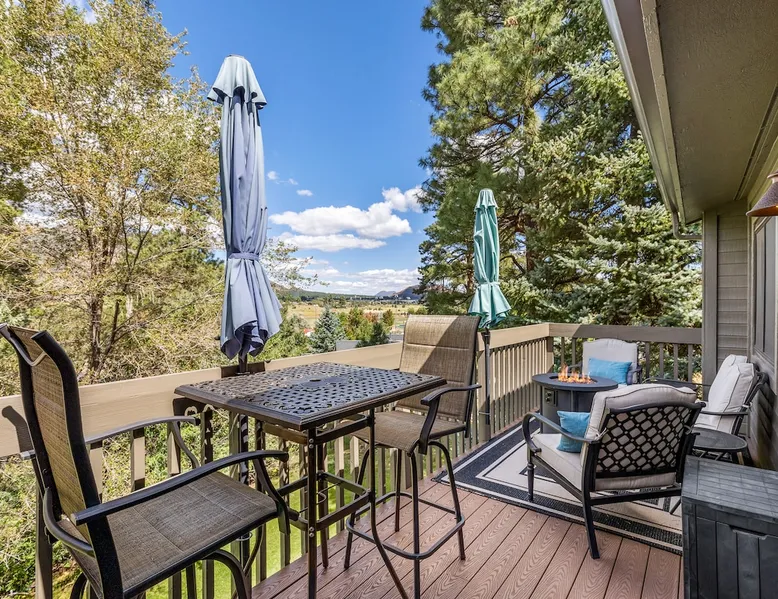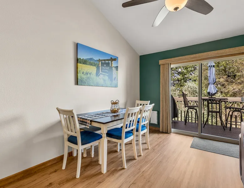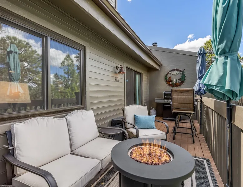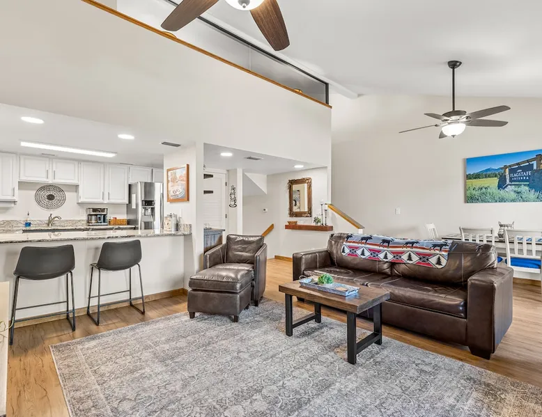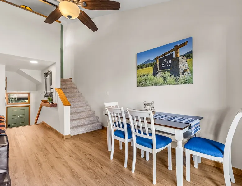 Welcome to our modern 2 bedroom and 2 bathroom townhouse in the pines! This property is located in the country club and a great starting point to explore Flagstaff & Northern Arizona. The primary bedroom is on the entry level, the second bedroom is a loft on the 3rd level. Each bedroom is connected to a full bathroom and a sleeper sofa is included in the living room. The kitchen is fully stocked and a full size washer and dryer is available in the unit for you to use. We cant wait to host you! The space Experience the best of Flagstaff from this stylish 2-bedroom, 2-bathroom townhouse perfectly designed for comfort and adventure. With space to sleep up to 5 guests, this home offers a relaxing escape in the pines with all the conveniences you need. Step inside to find a bright, open living space with cozy seating, a dining area, and a fully equipped kitchen where you can prepare meals with ease. Enjoy the convenience of air conditioning, a rare perk in Flagstaff, keeping you cool after a day exploring the outdoors. Wake up to mountain views from your window and step outside to access nearby hiking and biking trails, perfect for immersing yourself in the beauty of northern Arizona. After a day of adventure, return home to unwind in comfort with plenty of room for family or friends. ✨ Highlights: 2 bedrooms, 2 bathrooms (sleeps 5) - Both with king beds. Second bedroom is loft style up stairs, pull out couch in the living room Air conditioning for year-round comfort Mountain views and outdoor trail access nearby Fully equipped kitchen for home-cooked meals Ideal location for exploring Flagstaff & beyond Whether you’re here for outdoor adventure, a family getaway, or a peaceful mountain retreat, this townhouse is your perfect basecamp in Flagstaff. Guest access Guests will have access to the entire unit. *Some closets closed/ locked for cleaning supplies. Please do not attempt to open. Other things to note *INDOOR FIREPLACE NOT FOR GUEST USE. *This home has 3 levels, you MUST climb stairs to access all of them. *MAX 5 guests per stay, children over 2 count as guests. City STR license #: 000387