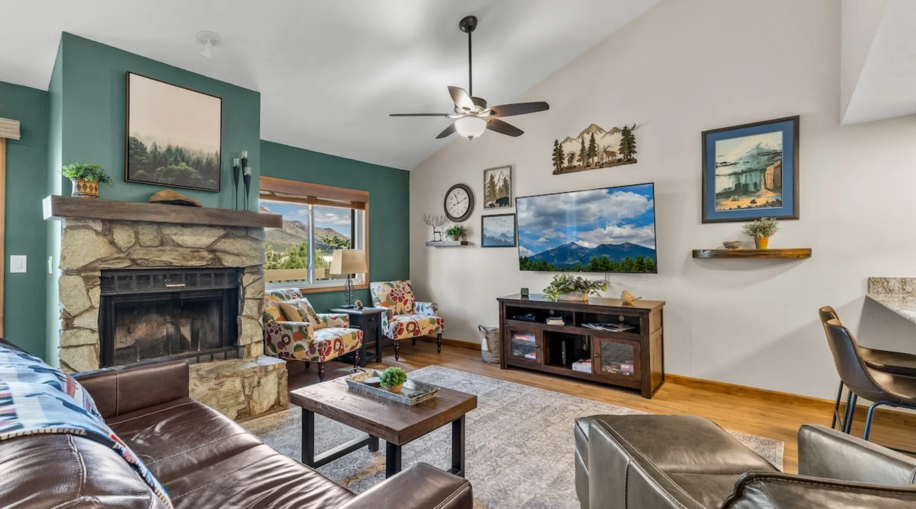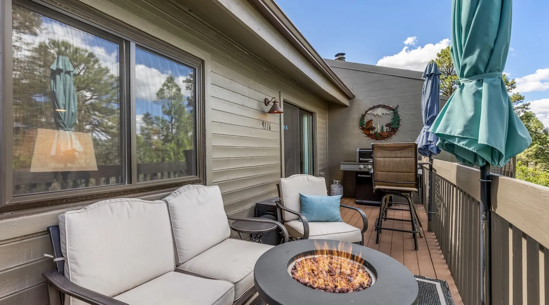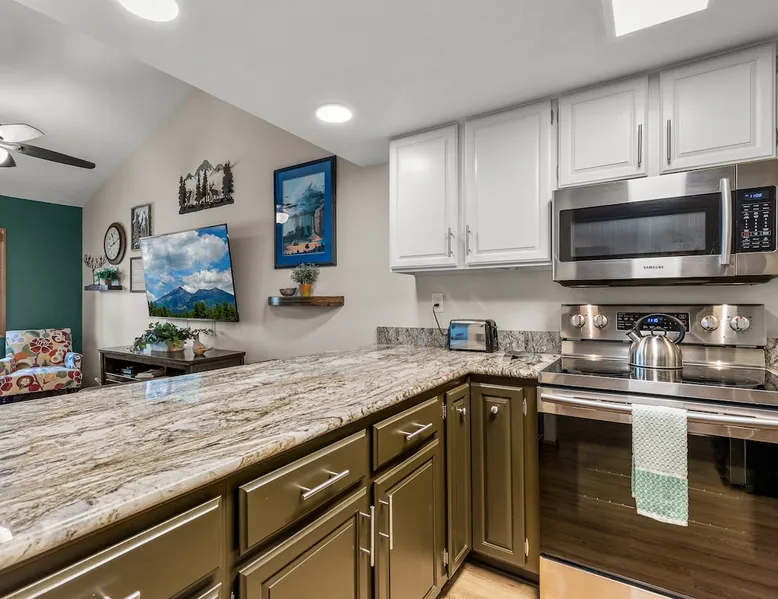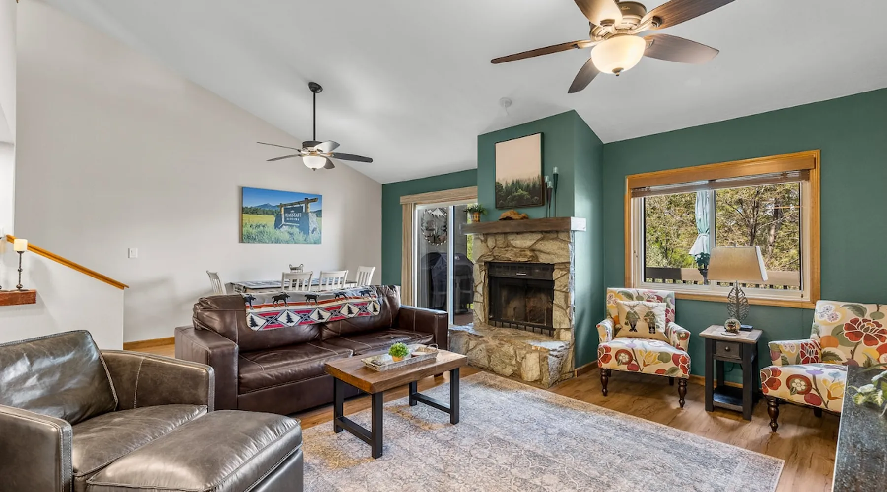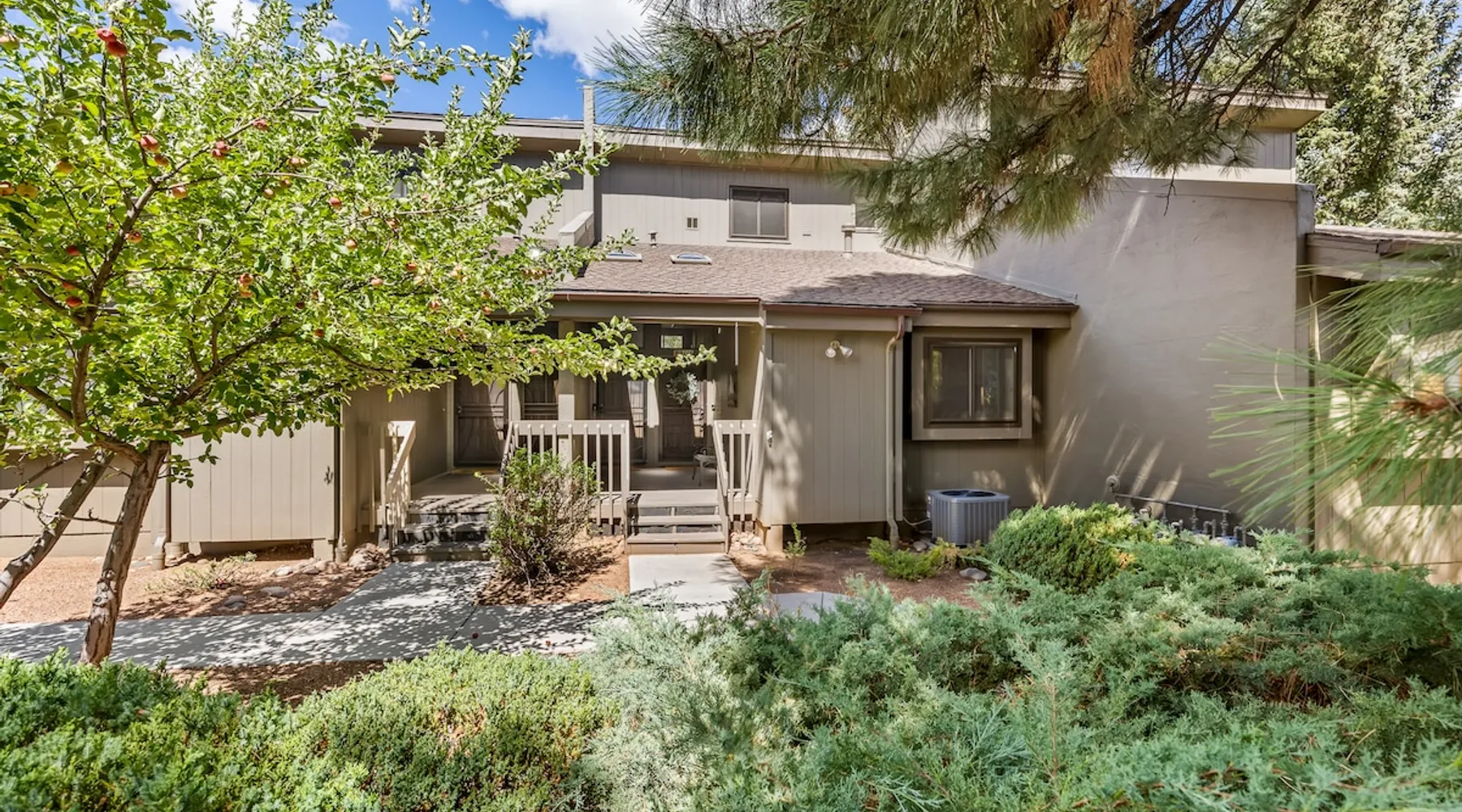 Welcome to our modern 2 bedroom and 2 bathroom townhouse in the pines! This property is located in the country club and a great starting point to explore Flagstaff & Northern Arizona. The primary bedroom is on the entry level, the second bedroom is a loft on the 3rd level. Each bedroom is connected to a full bathroom and a sleeper sofa is included in the living room. The kitchen is fully stocked and a full size washer and dryer is available in the unit for you to use. We cant wait to host you! The space Experience the best of Flagstaff from this stylish 2-bedroom, 2-bathroom townhouse perfectly designed for comfort and adventure. With space to sleep up to 5 guests, this home offers a relaxing escape in the pines with all the conveniences you need. Step inside to find a bright, open living space with cozy seating, a dining area, and a fully equipped kitchen where you can prepare meals with ease. Enjoy the convenience of air conditioning, a rare perk in Flagstaff, keeping you cool after a day exploring the outdoors. Wake up to mountain views from your window and step outside to access nearby hiking and biking trails, perfect for immersing yourself in the beauty of northern Arizona. After a day of adventure, return home to unwind in comfort with plenty of room for family or friends. ✨ Highlights: 2 bedrooms, 2 bathrooms (sleeps 5) - Both with king beds. Second bedroom is loft style up stairs, pull out couch in the living room Air conditioning for year-round comfort Mountain views and outdoor trail access nearby Fully equipped kitchen for home-cooked meals Ideal location for exploring Flagstaff & beyond Whether you’re here for outdoor adventure, a family getaway, or a peaceful mountain retreat, this townhouse is your perfect basecamp in Flagstaff. Guest access Guests will have access to the entire unit. *Some closets closed/ locked for cleaning supplies. Please do not attempt to open. Other things to note *INDOOR FIREPLACE NOT FOR GUEST USE. *This home has 3 levels, you MUST climb stairs to access all of them. *MAX 5 guests per stay, children over 2 count as guests. City STR license #: 000387