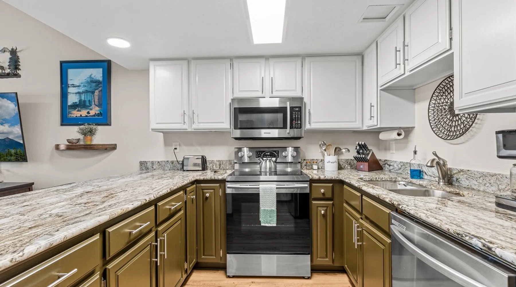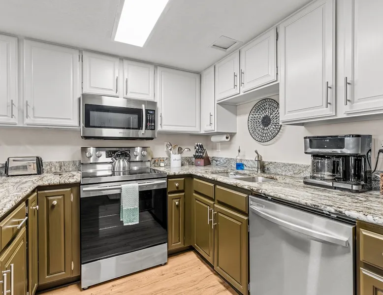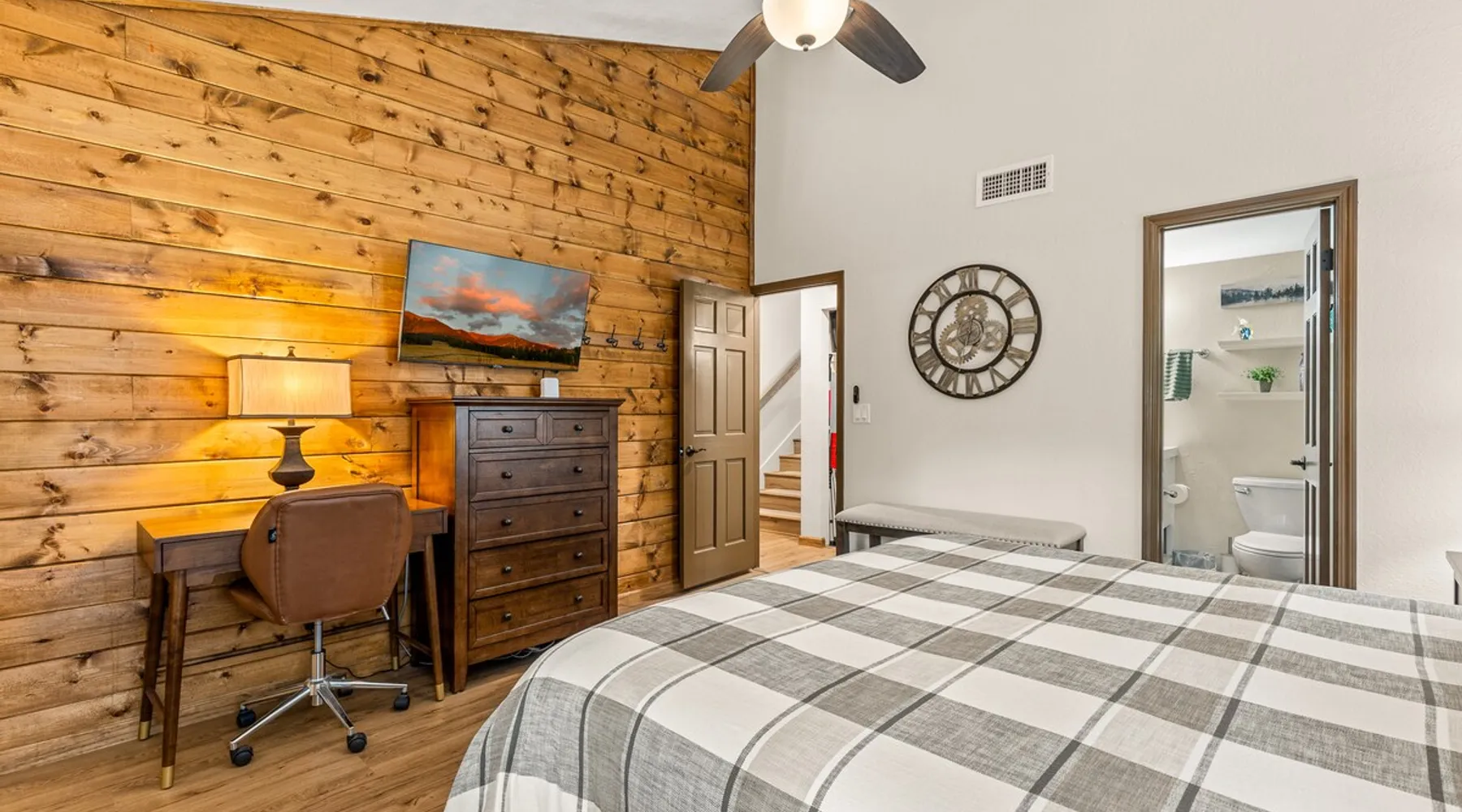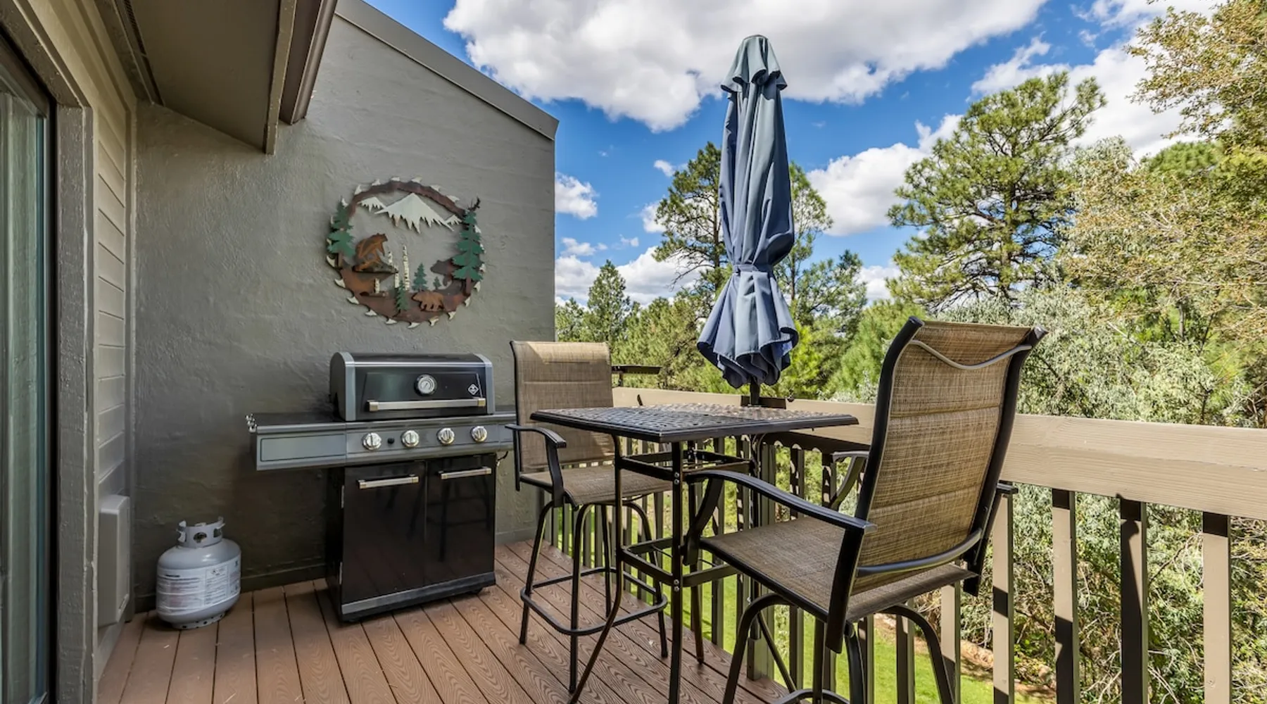 Welcome to our modern 2 bedroom and 2 bathroom townhouse in the pines! This property is located in the country club and a great starting point to explore Flagstaff & Northern Arizona. The primary bedroom is on the entry level, the second bedroom is a loft on the 3rd level. Each bedroom is connected to a full bathroom and a sleeper sofa is included in the living room. The kitchen is fully stocked and a full size washer and dryer is available in the unit for you to use. We cant wait to host you! The space Experience the best of Flagstaff from this stylish 2-bedroom, 2-bathroom townhouse perfectly designed for comfort and adventure. With space to sleep up to 5 guests, this home offers a relaxing escape in the pines with all the conveniences you need. Step inside to find a bright, open living space with cozy seating, a dining area, and a fully equipped kitchen where you can prepare meals with ease. Enjoy the convenience of air conditioning, a rare perk in Flagstaff, keeping you cool after a day exploring the outdoors. Wake up to mountain views from your window and step outside to access nearby hiking and biking trails, perfect for immersing yourself in the beauty of northern Arizona. After a day of adventure, return home to unwind in comfort with plenty of room for family or friends. ✨ Highlights: 2 bedrooms, 2 bathrooms (sleeps 5) - Both with king beds. Second bedroom is loft style up stairs, pull out couch in the living room Air conditioning for year-round comfort Mountain views and outdoor trail access nearby Fully equipped kitchen for home-cooked meals Ideal location for exploring Flagstaff & beyond Whether you’re here for outdoor adventure, a family getaway, or a peaceful mountain retreat, this townhouse is your perfect basecamp in Flagstaff. Guest access Guests will have access to the entire unit. *Some closets closed/ locked for cleaning supplies. Please do not attempt to open. Other things to note *INDOOR FIREPLACE NOT FOR GUEST USE. *This home has 3 levels, you MUST climb stairs to access all of them. *MAX 5 guests per stay, children over 2 count as guests. City STR license #: 000387