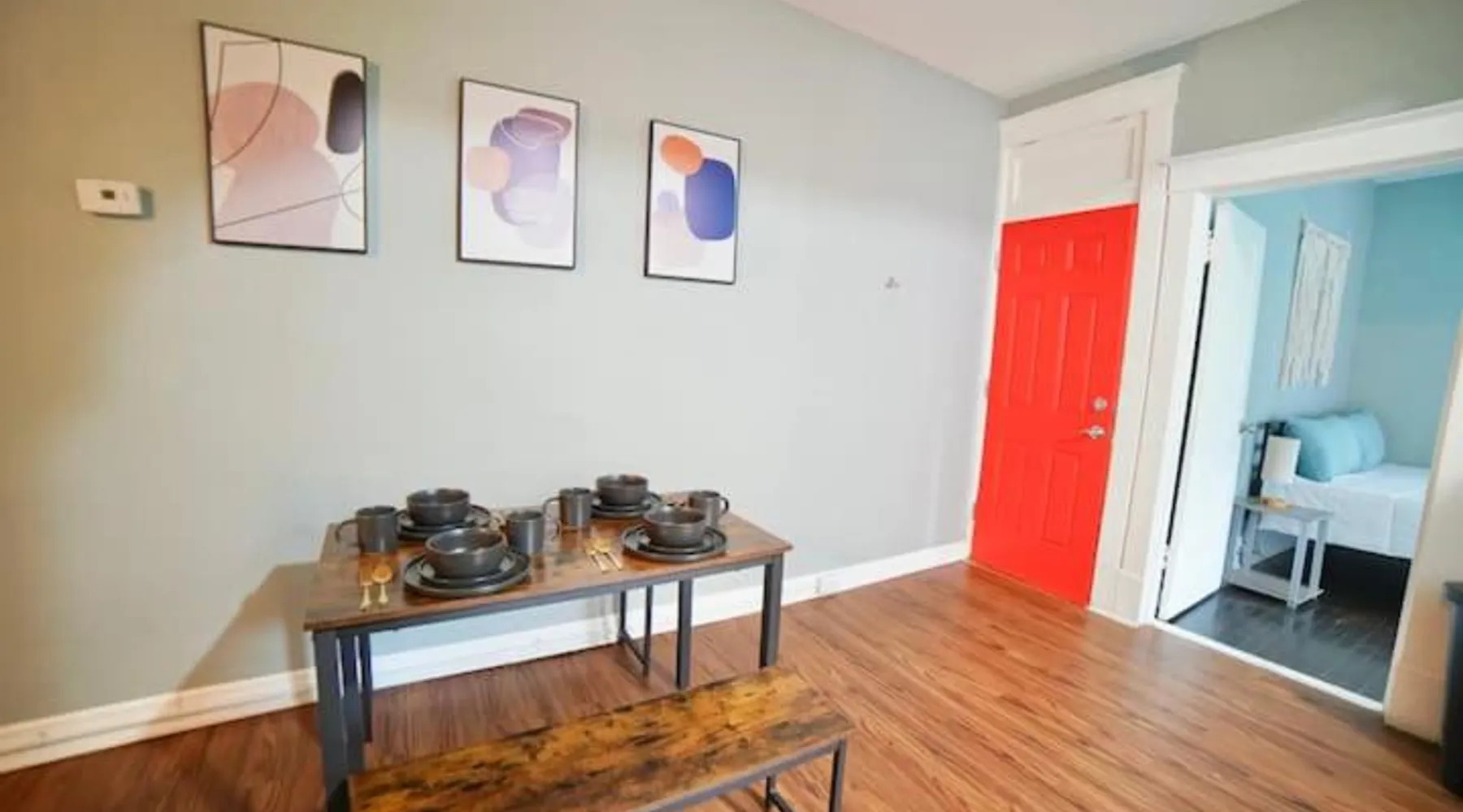 Comfortable Living: Cute Neighborhood Rainbow Apt in Saint Louis offers a welcoming apartment with free WiFi, air-conditioning, and a washing machine. Each unit includes a private bathroom, fully equipped kitchen, and a TV. Convenient Facilities: Guests can enjoy family rooms, free on-site private parking, and a washing machine. The property ensures a pleasant stay with amenities such as a washing machine and a fully equipped kitchen. Prime Location: Located 9.3 mi from St. Louis Lambert International Airport, the apartment is 1.2 mi from the St. Louis Zoo. Nearby attractions include Forest Park (2.4 mi), Grant's Farm (6.8 mi), and an ice-skating rink. The air-conditioned apartment features 2 bedrooms, 1 bathroom and a kitchen. The apartment's kitchen is available for cooking and storing food. This apartment provides a washing machine and a flat-screen TV. The unit offers 4 beds.