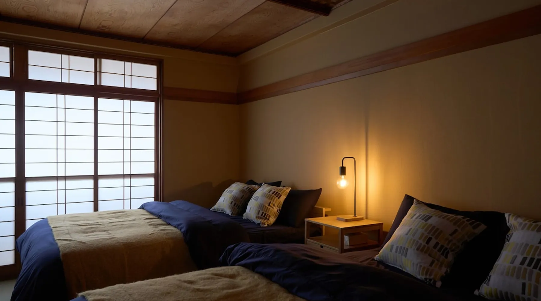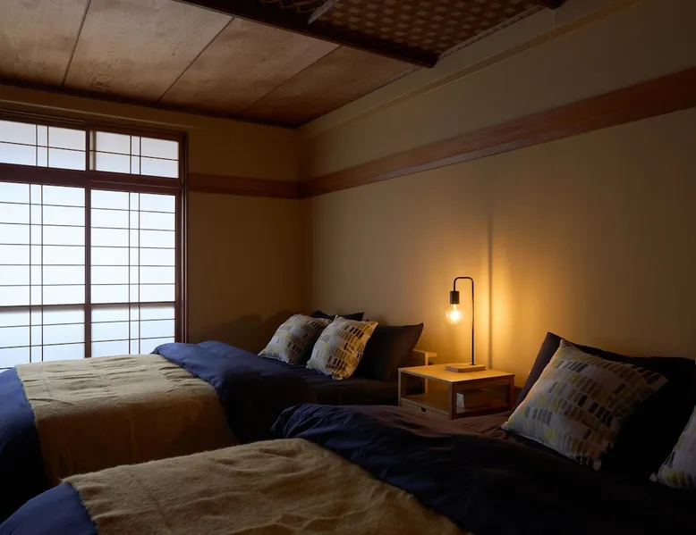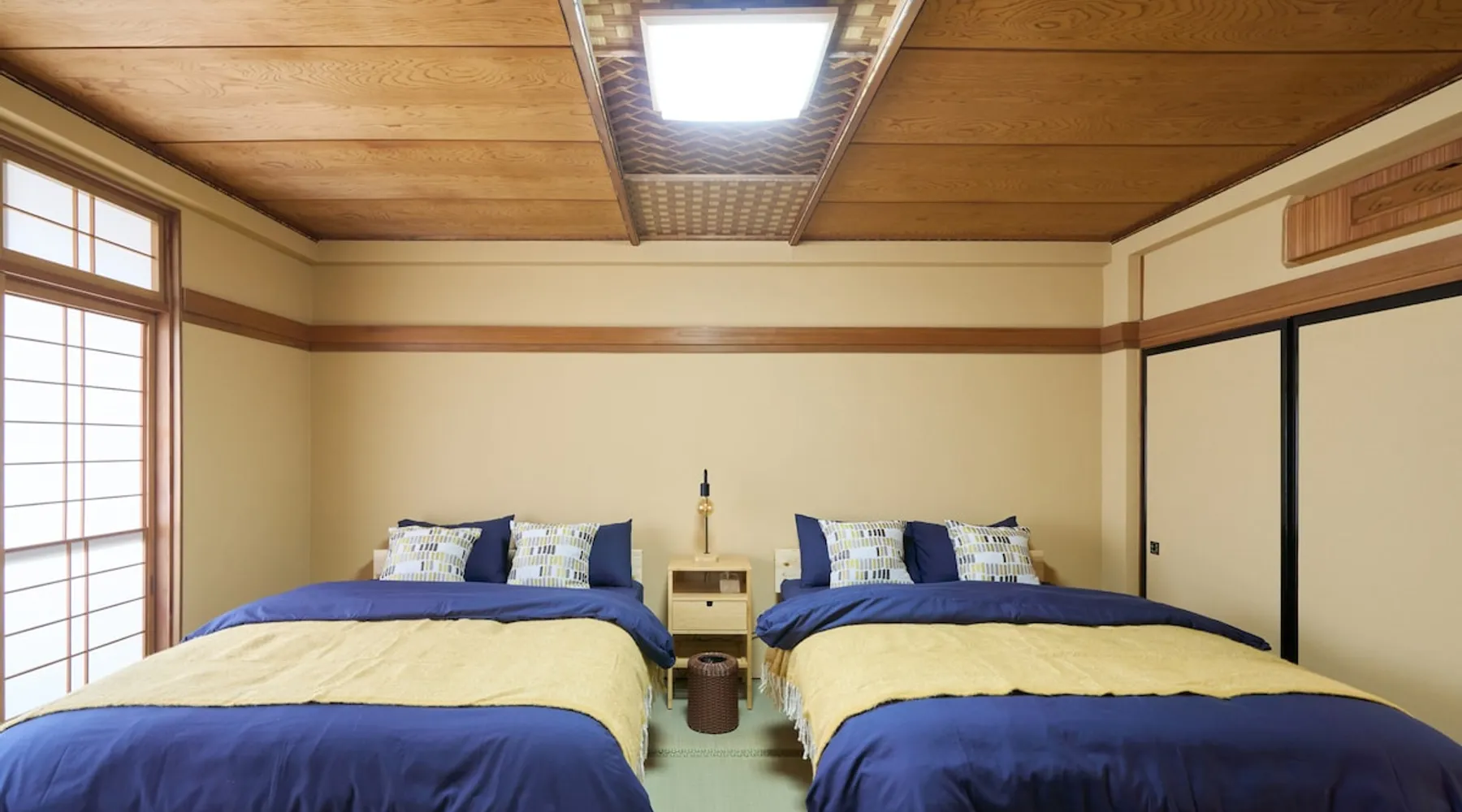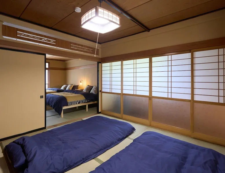 Located in the heart of Hachinohe, this large-capacity accommodation can be used by friends, families, or relatives. Close to the center of the city, convenient to get anywhere.There are 2 rooms with 2 gently connected bedrooms, and 1 separate room, so 3 families can stay at the same time. You can cook yourself in the large dining kitchen.Aladdin's projector is installed in the large Japanese-style room on the ground floor.You can enjoy your favorite content, such as TV, Netflix, YouTube, and games, on a large screen. It is a 5-minute walk to the center of the city and a 7-minute walk to the famous Miroku Yokocho.Shinmeigu, where the floats of the Hachinohe Sansha Taisai, a summer tradition, are located diagonally in front. It can be used for large groups, such as class reunions, gatherings of close friends, families, relatives, and training camps.Please use it for sightseeing in Aomori, based in Hachinohe. The space This is a rental house in one building. There is a 12-tatami Japanese-style room (Akane) in front of you from the large dirt room, and you can use it as a gathering room or as a bedroom.There is a lighting and projector, so you can enjoy video and games on the large screen. At the end of the long hallway, there is a large dining kitchen (oven).There is also a refrigerator, rice cooker, dishes, cooking utensils, etc., so please feel free to use them. On the first floor, there is a bath, washroom, and a toilet with a washlet.It is also fully equipped with a washing machine and clothes drying hangers. There are four rooms on the second floor. There are two Japanese-style rooms with 10 tatami mats (Yamabuki) and 8 tatami mats (kogane). This room has two Japanese-style rooms with 8 tatami mats (Toawa) and 6 tatami mats. Yamabuki (10 tatami mats) has 2 double beds, and Kogane (8 tatami mats) has 5 single futon sets. There are 2 semi-double beds in Tokiwa (8 tatami mats) and 4 single futon sets in Matsuba (6 tatami mats). There are also 3 sets of single futons in the ground floor room (12 tatami mats). Depending on the number of guests and the room, please move the futon, etc. * If a large car passes on the road in front of you, the house may vibrate, but please rest assured it is not an earthquake. ===== 1st floor [Akane] 12 tatami mat Japanese-style room with projector 2 sets of single futons [Kamado] 12.5 tatami dining kitchen 2nd floor [Yamabuki] 10 tatami Japanese-style room · 2 double beds [Kogane] 8 tatami mat Japanese-style room · 2 sets of single futons [Tokiwa] Japanese-style room with 8 tatami mats and 2 semi-double beds [Matsubo] 6 tatami mat Japanese-style room · 2 sets of single futons Guest access You can use all rooms on the 1st and 2nd floors. Please refrain from entering the first floor courtyard from the back door of the dining kitchen. Other things to note All rooms are non-smoking🚭 Please smoke outdoors with your own ashtray. If we find out that you smoked, we will charge you a cleaning fee of 20,000 yen. Registration Details Hotels and Inns Business Act | 八戸市保健所 | 八戸市保健指令第144号
