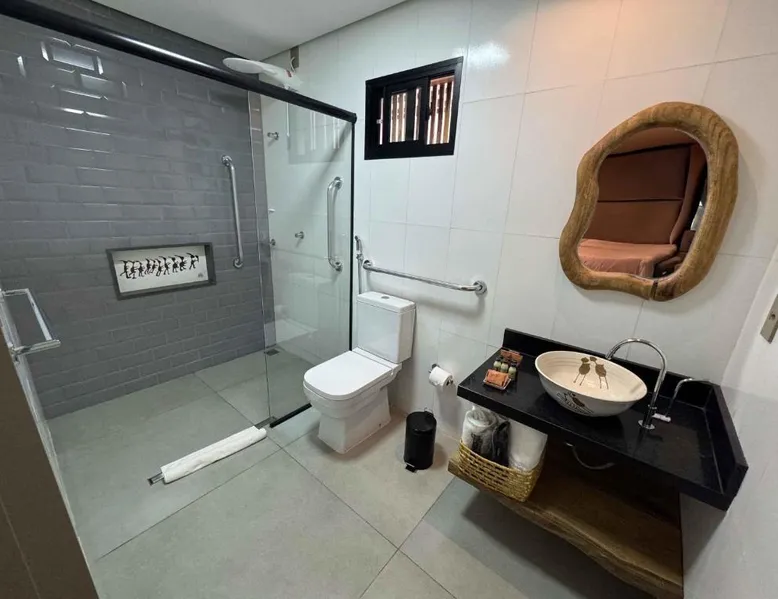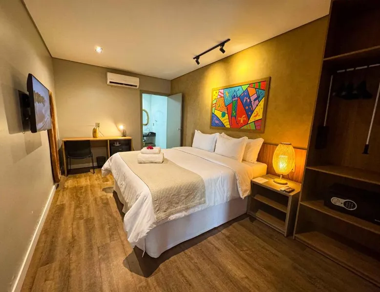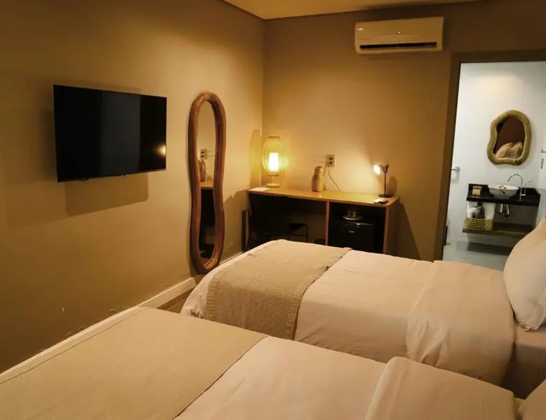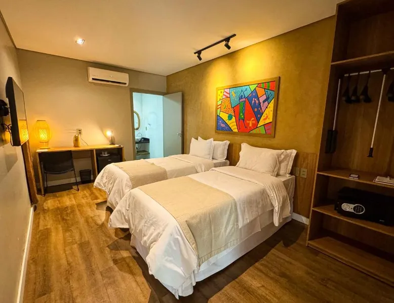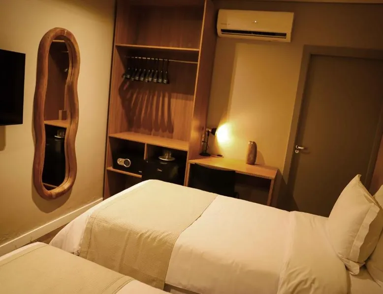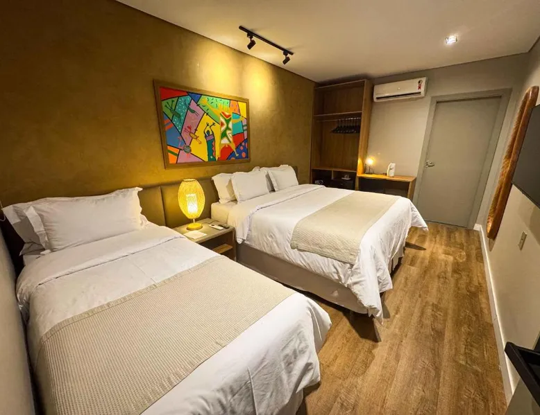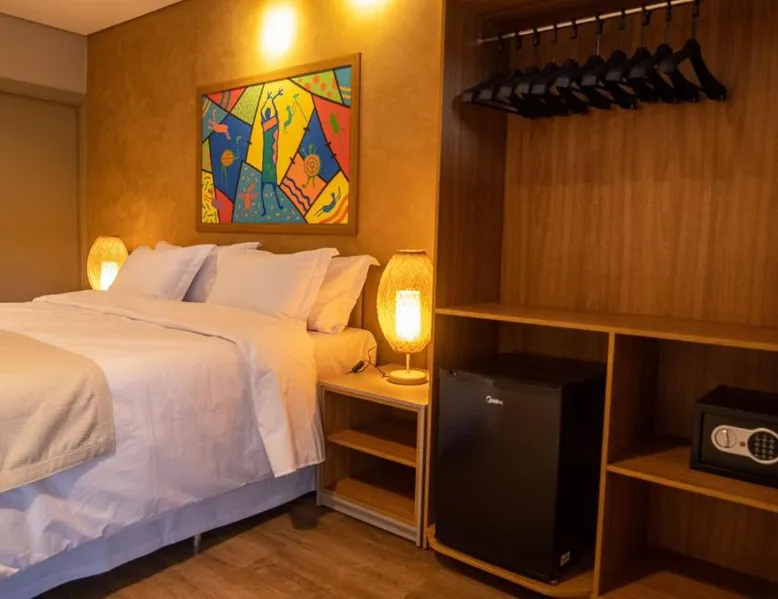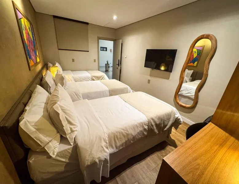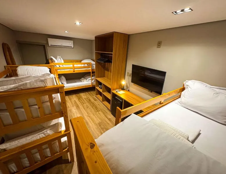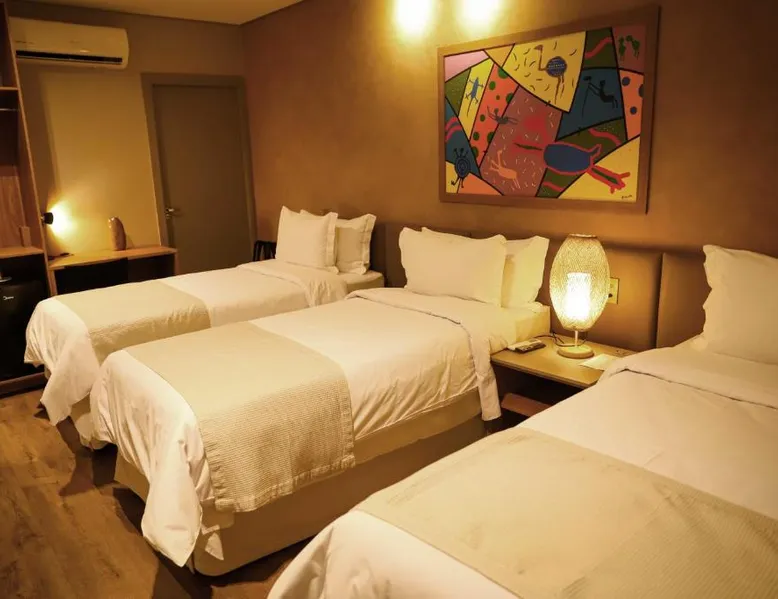 Comfortable Accommodations: Rooms feature air-conditioning, private bathrooms, mini-bars, and free WiFi. Ground-floor units offer garden views. Exceptional Facilities: The hotel offers a spa and wellness center, fitness center, year-round outdoor swimming pool, and a terrace. Additional amenities include a pool bar and free on-site private parking. Dining Options: Guests can enjoy a restaurant serving Brazilian, local, and Steakhouse cuisines, as well as a bar. Breakfast options include continental, American, buffet, and vegetarian. Convenient Location: Located 6.2 mi from Serra da Capivara Airport, the hotel provides easy access to local attractions. The dormitory room features air conditioning, a mini-bar, as well as a private bathroom boasting a shower and a hairdryer. This dormitory room has a wardrobe, a safe deposit box and a flat-screen TV. The unit has 3 beds.