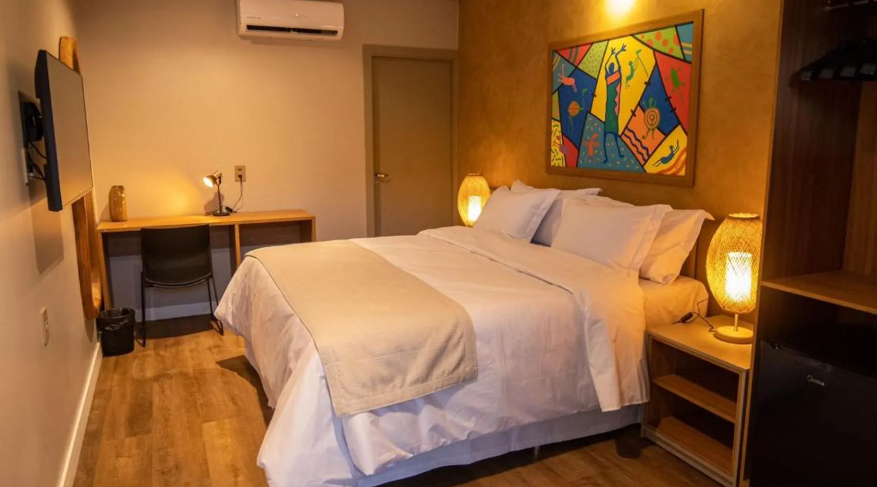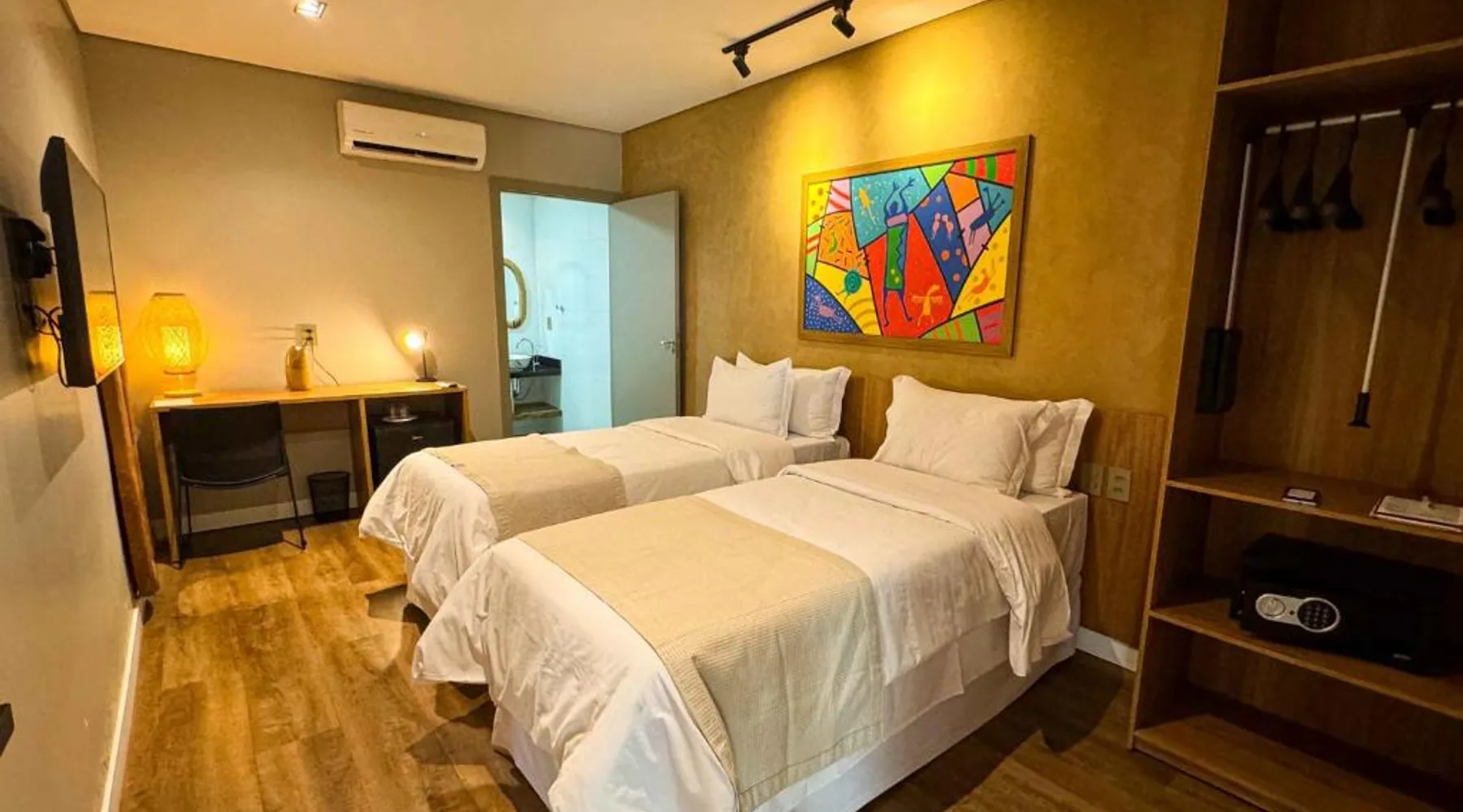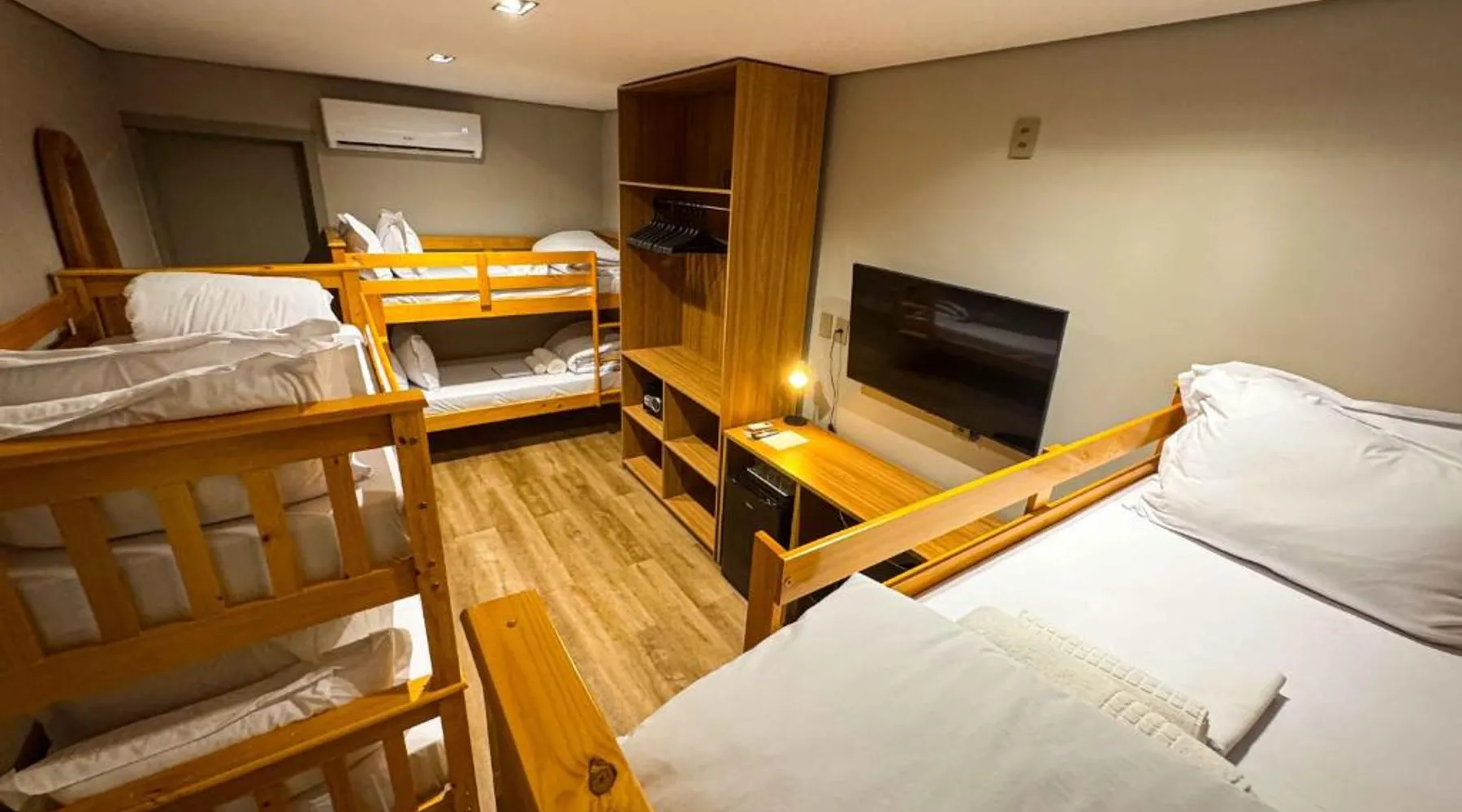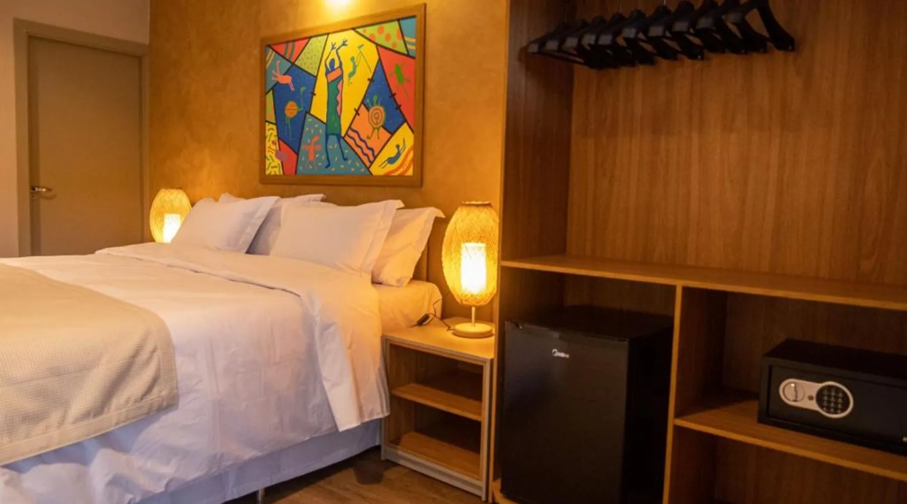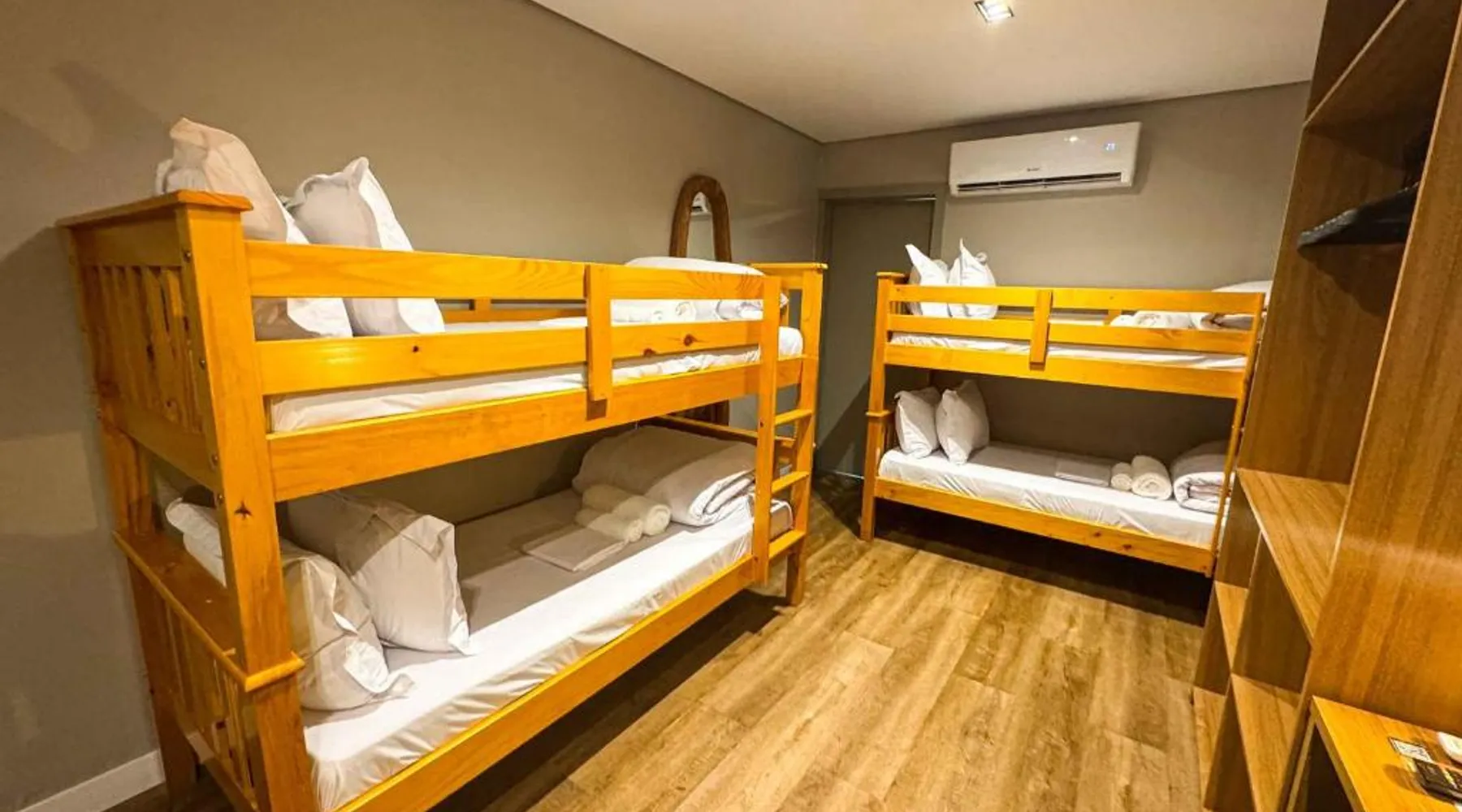 Comfortable Accommodations: Rooms feature air-conditioning, private bathrooms, mini-bars, and free WiFi. Ground-floor units offer garden views. Exceptional Facilities: The hotel offers a spa and wellness center, fitness center, year-round outdoor swimming pool, and a terrace. Additional amenities include a pool bar and free on-site private parking. Dining Options: Guests can enjoy a restaurant serving Brazilian, local, and Steakhouse cuisines, as well as a bar. Breakfast options include continental, American, buffet, and vegetarian. Convenient Location: Located 6.2 mi from Serra da Capivara Airport, the hotel provides easy access to local attractions. The dormitory room features air conditioning, a mini-bar, as well as a private bathroom boasting a shower and a hairdryer. This dormitory room has a wardrobe, a safe deposit box and a flat-screen TV. The unit has 3 beds.