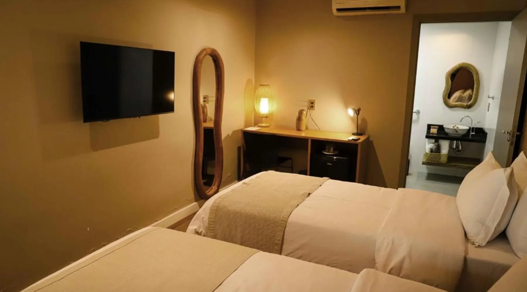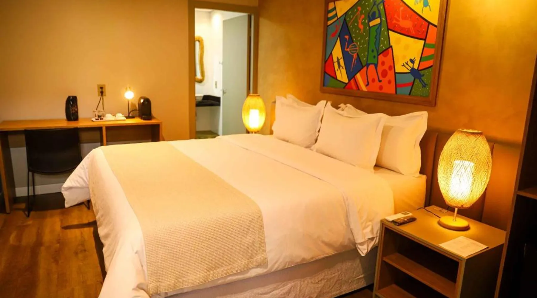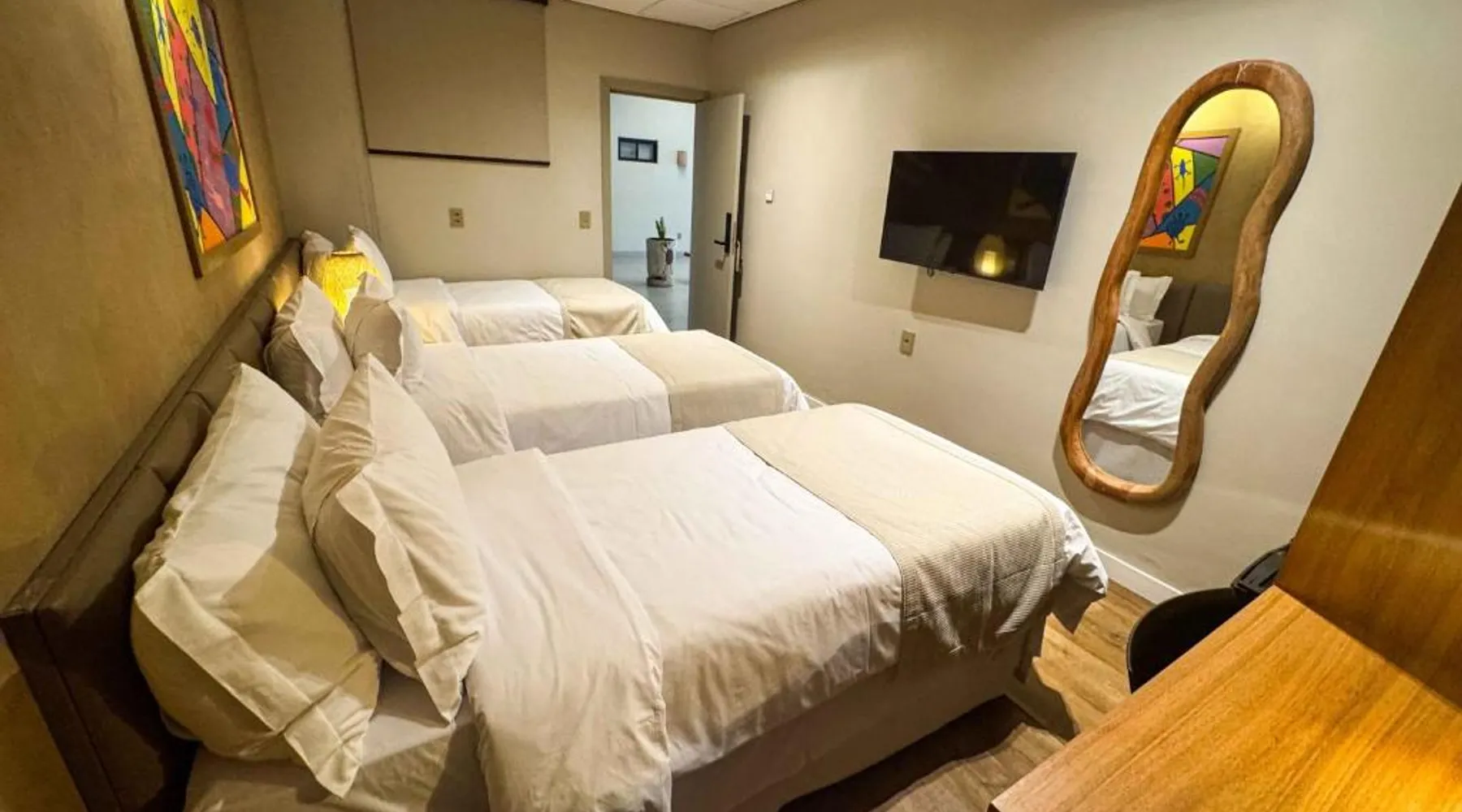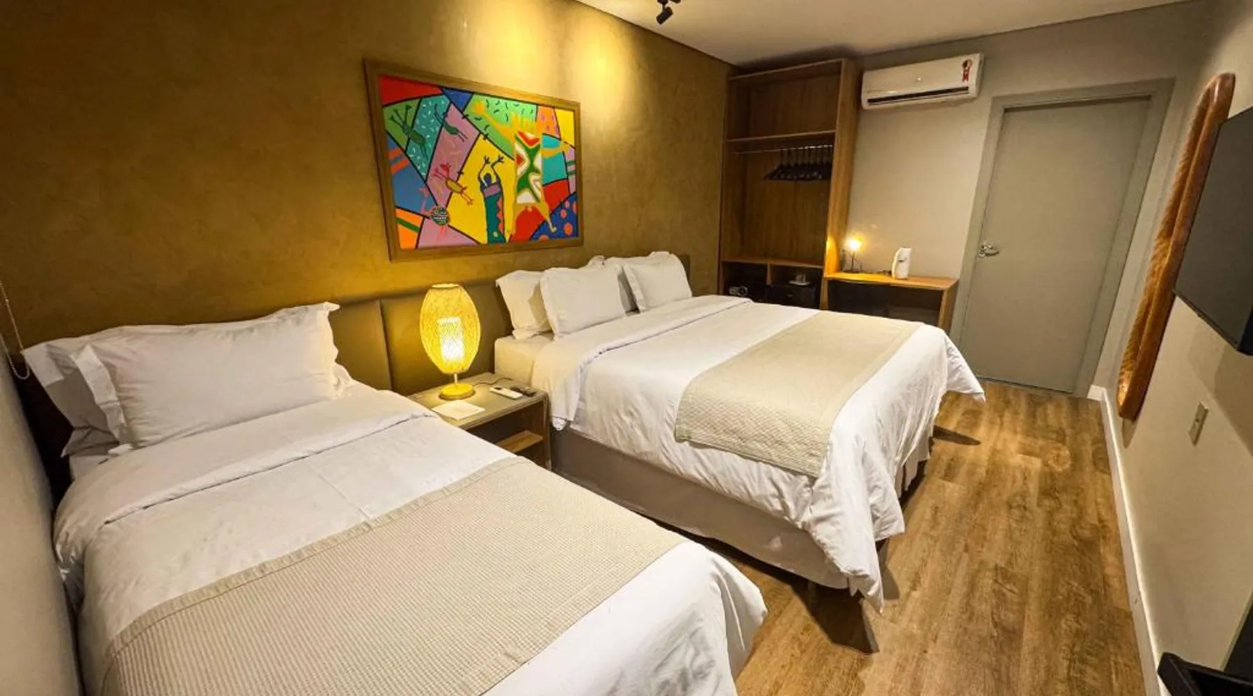 Comfortable Accommodations: Rooms feature air-conditioning, private bathrooms, mini-bars, and free WiFi. Ground-floor units offer garden views. Exceptional Facilities: The hotel offers a spa and wellness center, fitness center, year-round outdoor swimming pool, and a terrace. Additional amenities include a pool bar and free on-site private parking. Dining Options: Guests can enjoy a restaurant serving Brazilian, local, and Steakhouse cuisines, as well as a bar. Breakfast options include continental, American, buffet, and vegetarian. Convenient Location: Located 6.2 mi from Serra da Capivara Airport, the hotel provides easy access to local attractions. The dormitory room features air conditioning, a mini-bar, as well as a private bathroom boasting a shower and a hairdryer. This dormitory room has a wardrobe, a safe deposit box and a flat-screen TV. The unit has 3 beds.