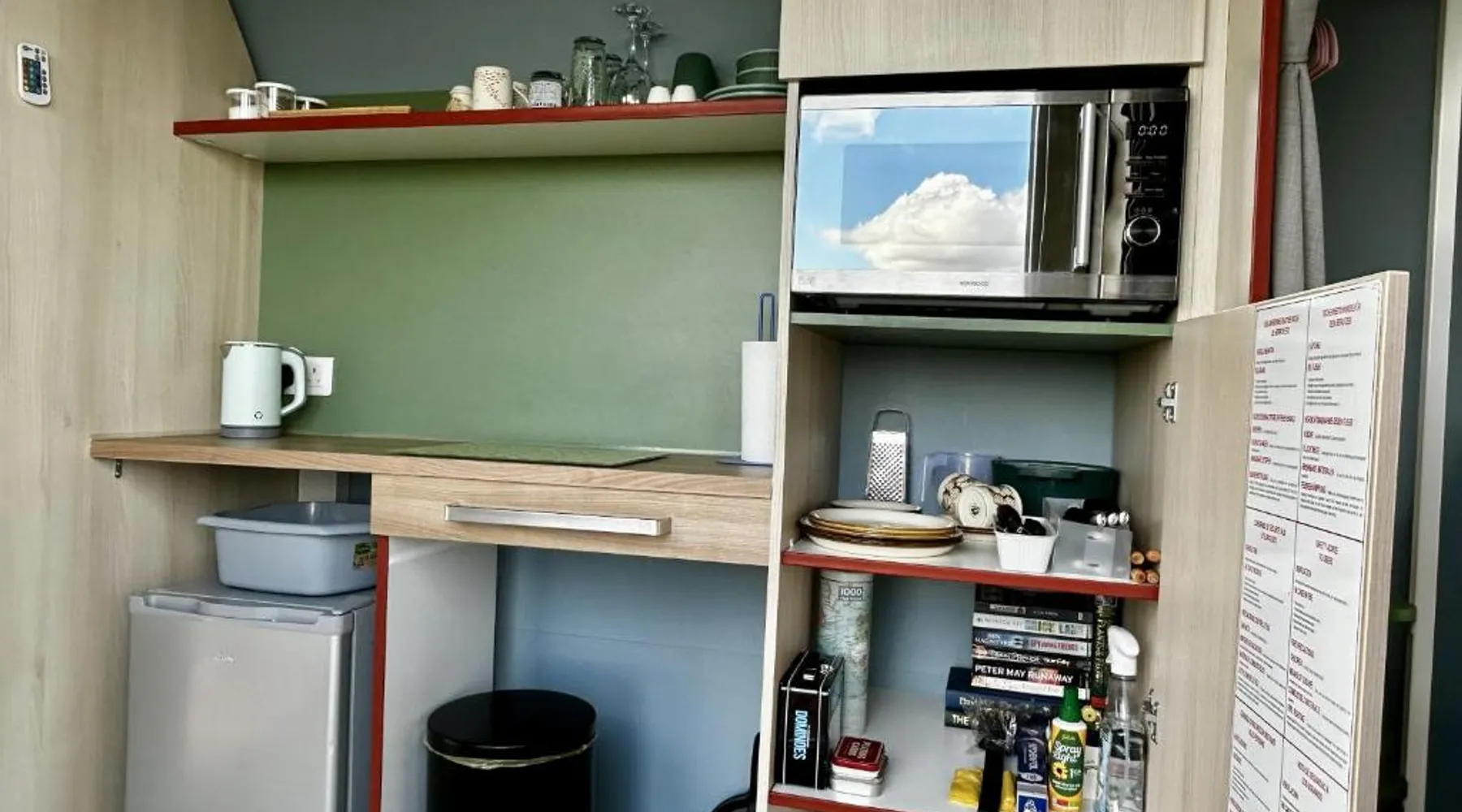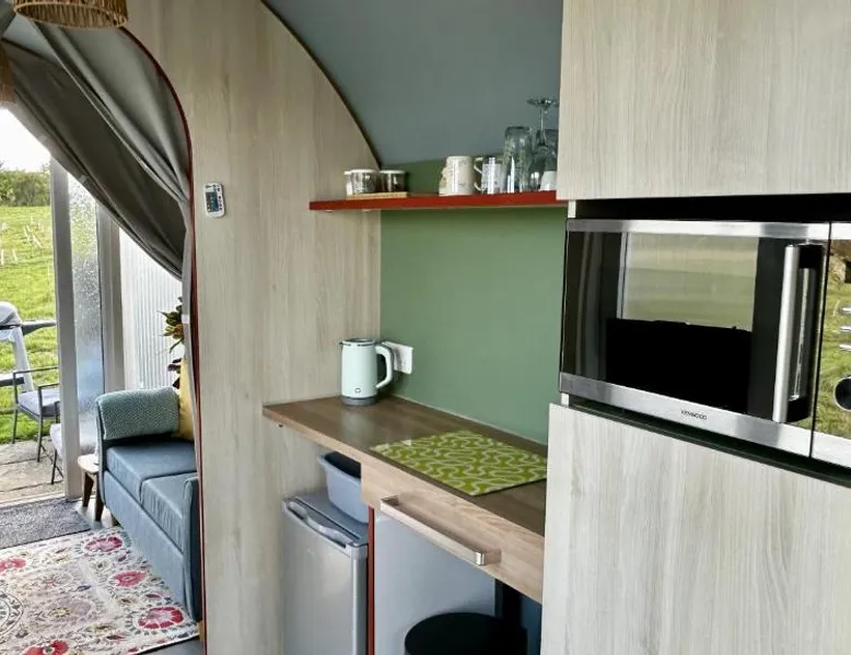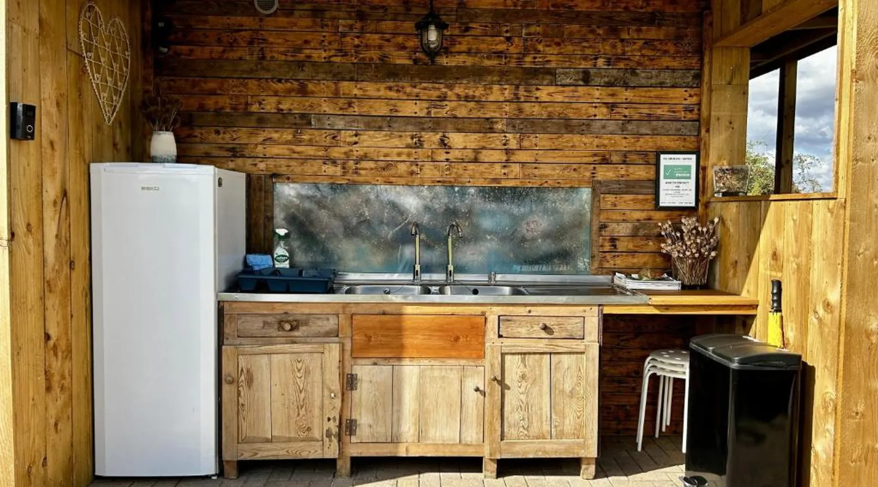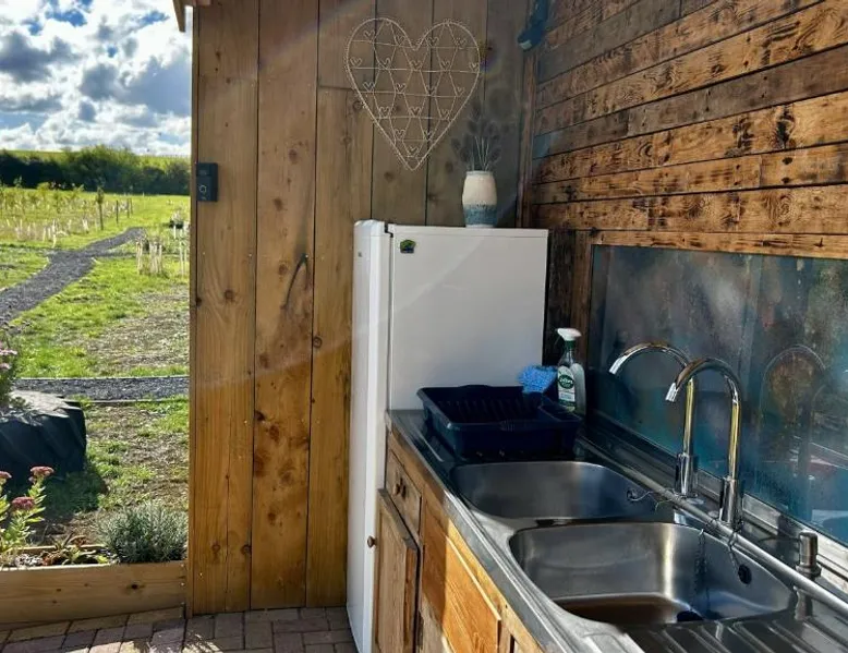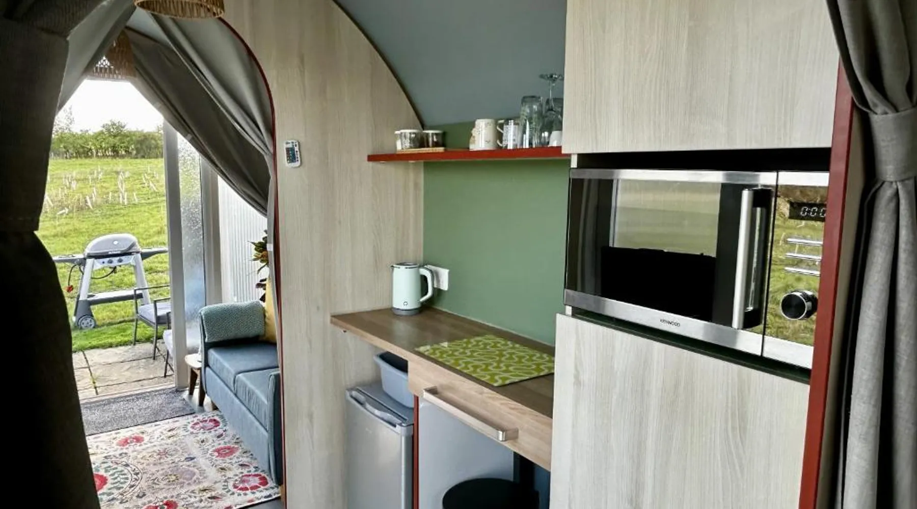 Elegant Accommodations: Brambles Glamping in Bengeworth offers recently renovated camping with a garden and free WiFi. Private check-in and check-out services ensure a seamless arrival and departure. Outdoor Amenities: Guests can enjoy an outdoor fireplace, seating area, picnic spots, and barbecue facilities. Free on-site private parking is available, along with bicycle parking and outdoor dining areas. Comfortable Living: Each ground-floor unit features a kitchenette with a refrigerator, stovetop, microwave, and electric kettle. Additional amenities include a dining table, sofa, and garden views. Local Attractions: Located 34 mi from Birmingham Airport, Brambles Glamping is near Coughton Court (14 mi), Royal Shakespeare Company (16 mi), and Warwick Castle (25 mi). Guests will find a stovetop, a refrigerator, kitchenware and a microwave in the well-equipped kitchenette. The chalet also features a barbecue. This chalet has a seating area, a patio, garden views and a shared bathroom. The unit has 1 bed.