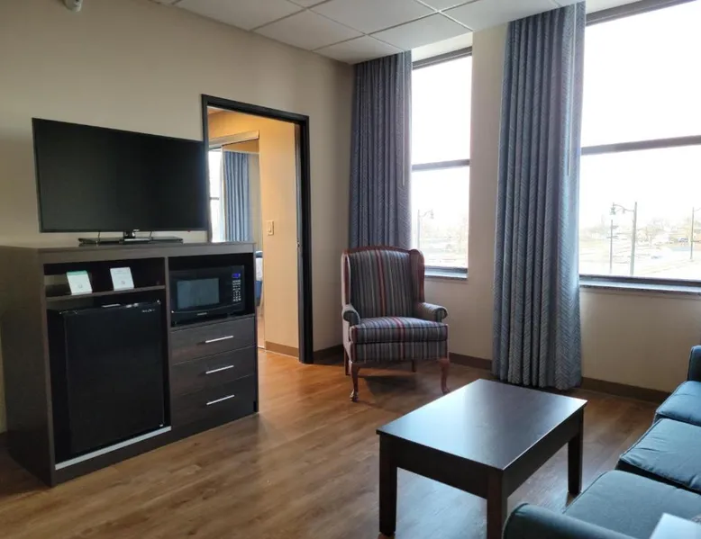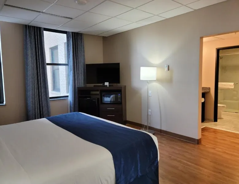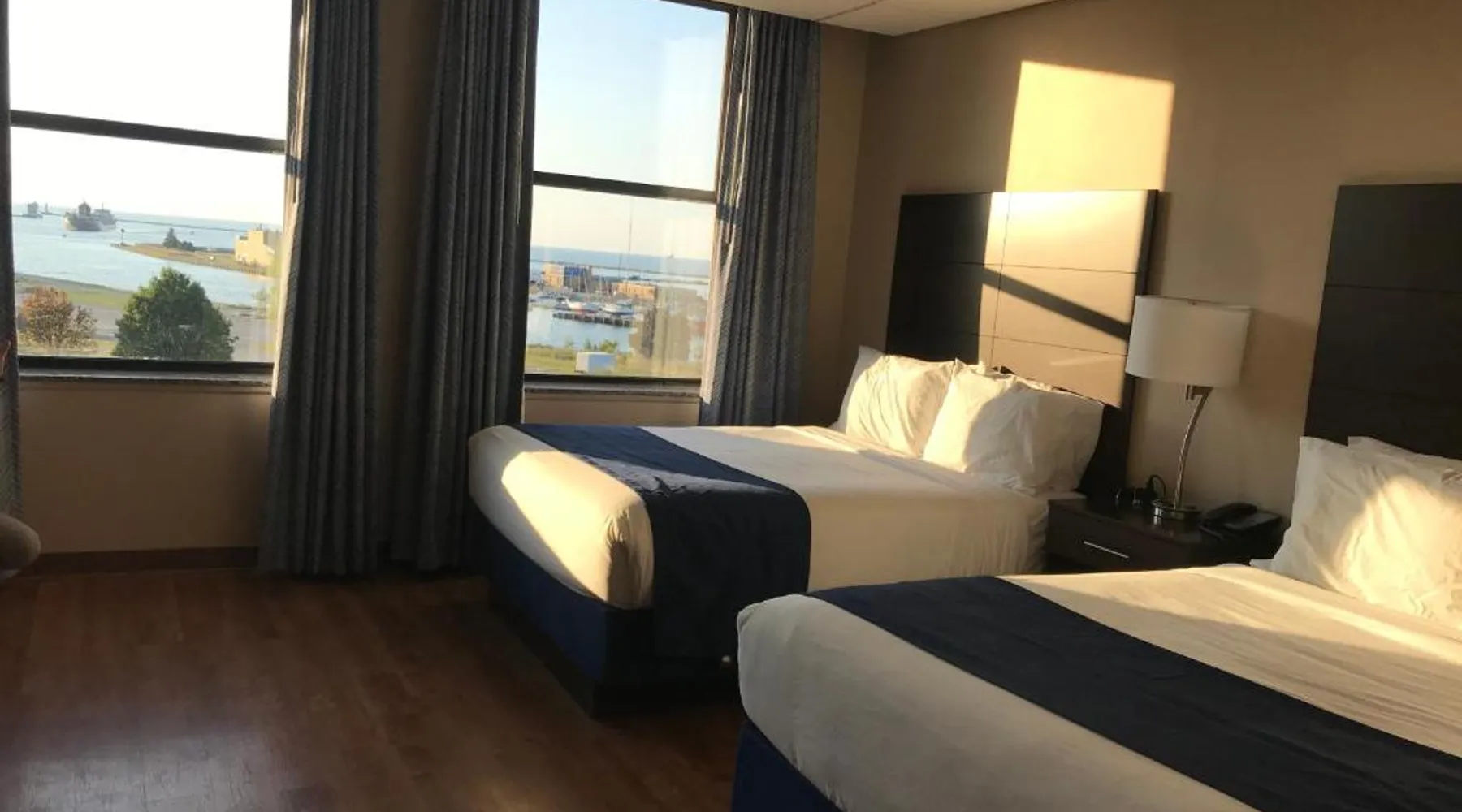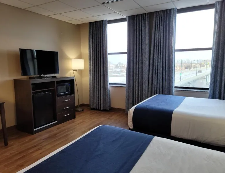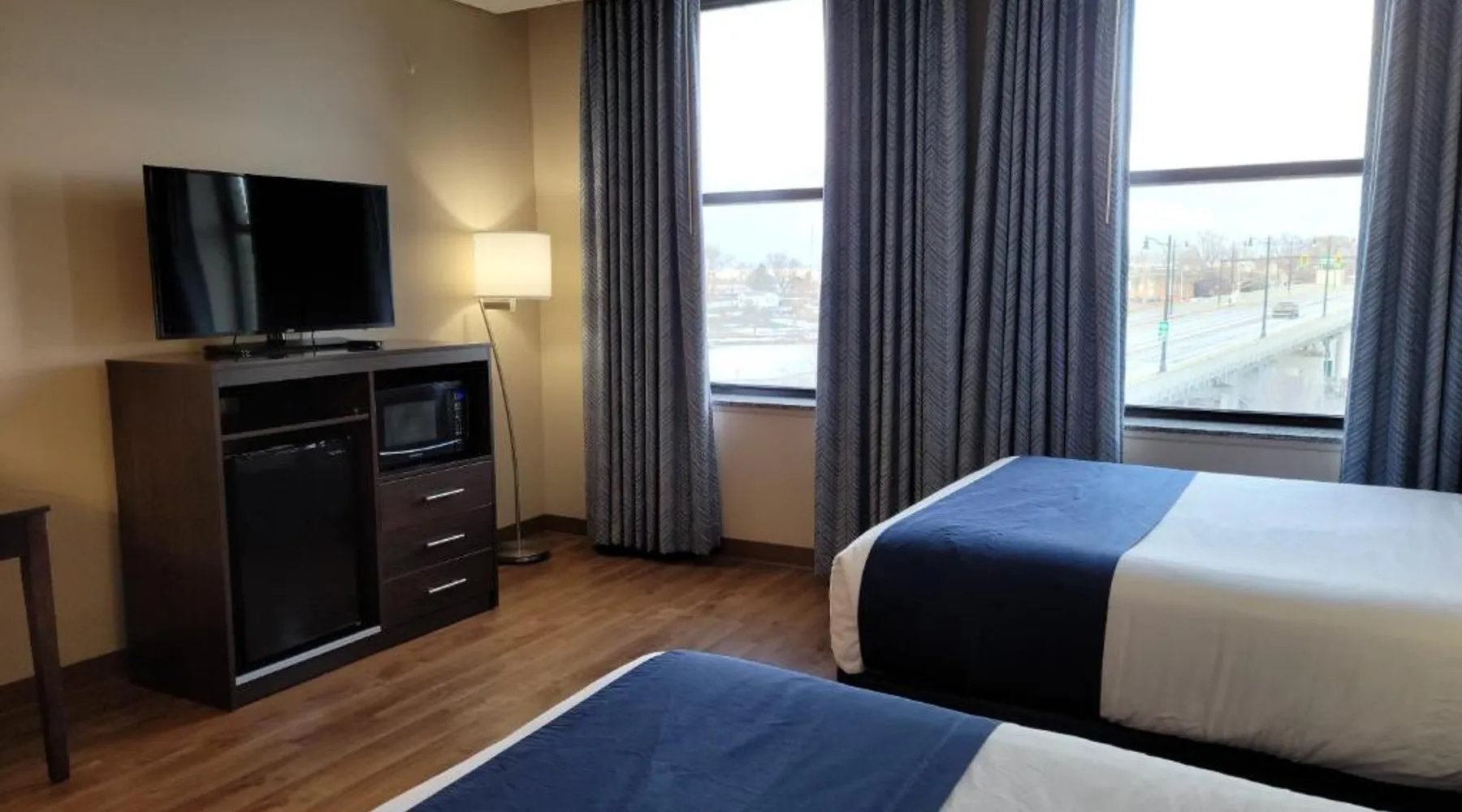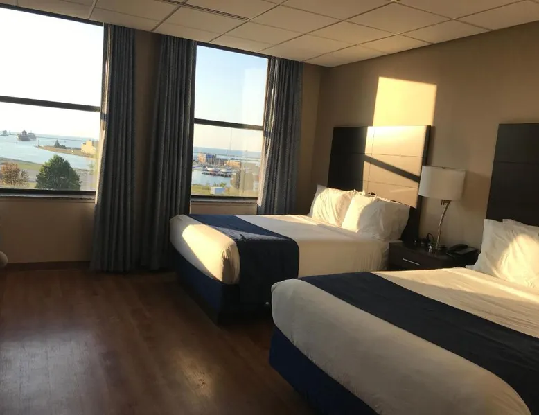 Comfortable Accommodations: Ariel Broadway Hotel in Lorain offers family rooms with private bathrooms, air-conditioning, and free WiFi. Each room includes a work desk, mini-bar, and modern amenities. Exceptional Facilities: Guests can enjoy a fitness center, indoor swimming pool, sun terrace, and water sports facilities. The hotel features a family-friendly restaurant serving American cuisine, a bar, and a lounge. Convenient Location: Located 24 mi from Cleveland Hopkins International Airport, the hotel is near attractions such as Lakeview Beach (1.2 mi) and Cleveland Browns Stadium (28 mi). Guests appreciate the convenient location and excellent service. The spacious air-conditioned double room offers a flat-screen TV with cable channels, a coffee machine, a wardrobe, heating as well as city views. The unit offers 1 bed.