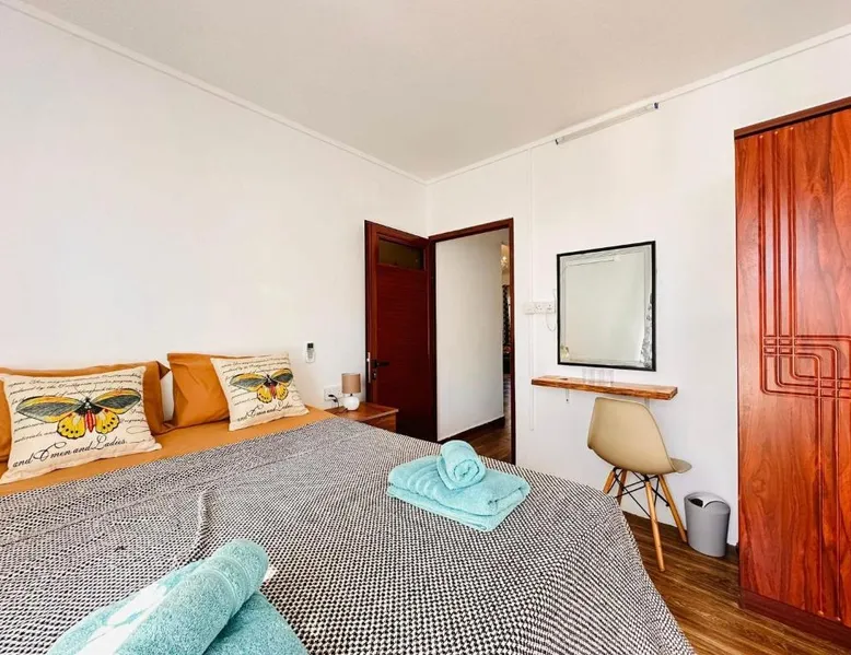 Spacious Accommodations: Nilaya Penthouse, 3BHK Luxury by Coastal in Roches Noires offers a spacious, recently renovated apartment with three bedrooms and a living room. Guests enjoy sea views, air-conditioning, and a terrace or balcony. Modern Amenities: The property features a sun terrace, free WiFi, and a hot tub. Additional facilities include a minimarket, outdoor seating area, hairdresser/beautician, family rooms, full-day security, bicycle parking, barbecue facilities, and car hire. Prime Location: Roches Noires Beach is a 13-minute walk away. Sir Seewoosagur Ramgoolam Airport is 41 mi from the property. Nearby attractions include Sir Seewoosagur Ramgoolam Botanical Garden and Le Touessrok Golf Course. Featuring a private entrance, this air-conditioned apartment consists of 1 living room, 3 separate bedrooms and 1 bathroom with a walk-in shower and a bath. Guests will find a stovetop, a refrigerator, kitchenware and an oven in the fully equipped kitchen. The apartment also offers a barbecue. The spacious apartment provides a washing machine, a tea and coffee maker, a seating area as well as a terrace with sea views. The unit offers 4 beds.