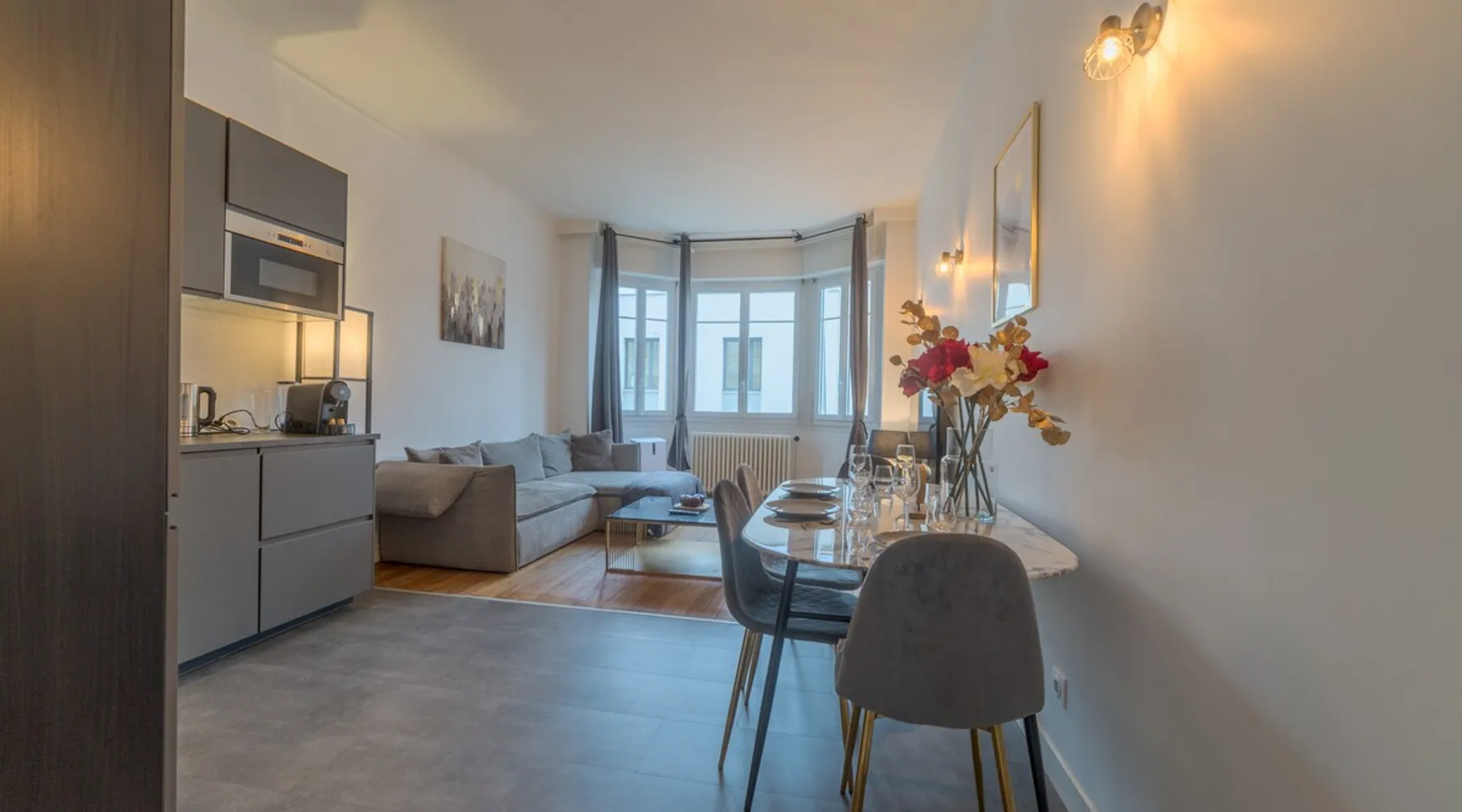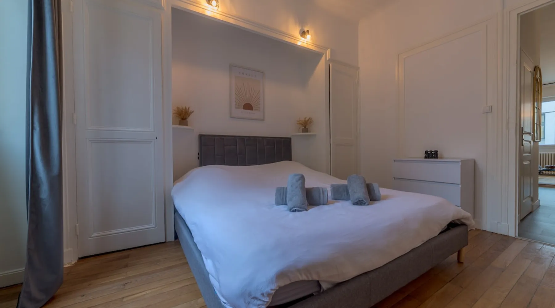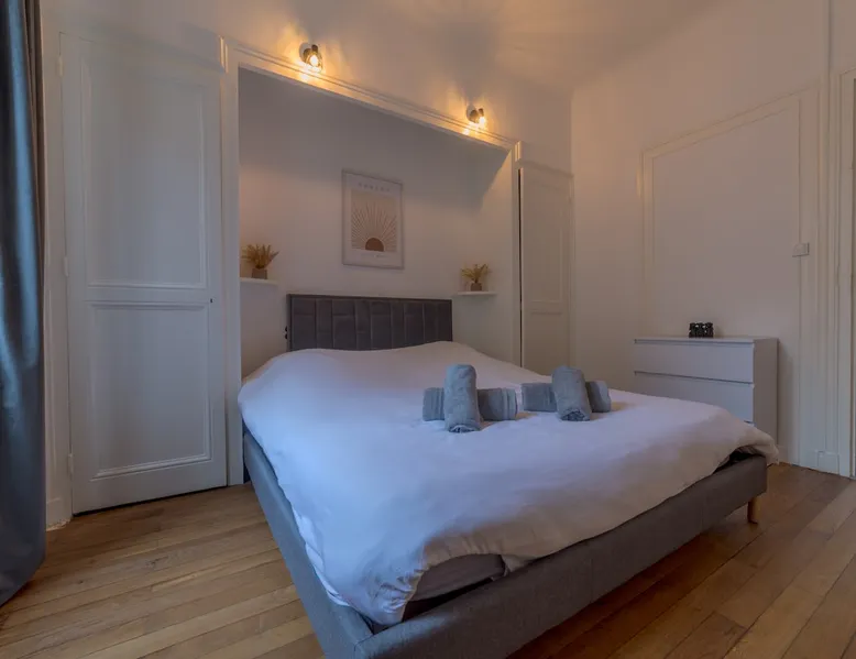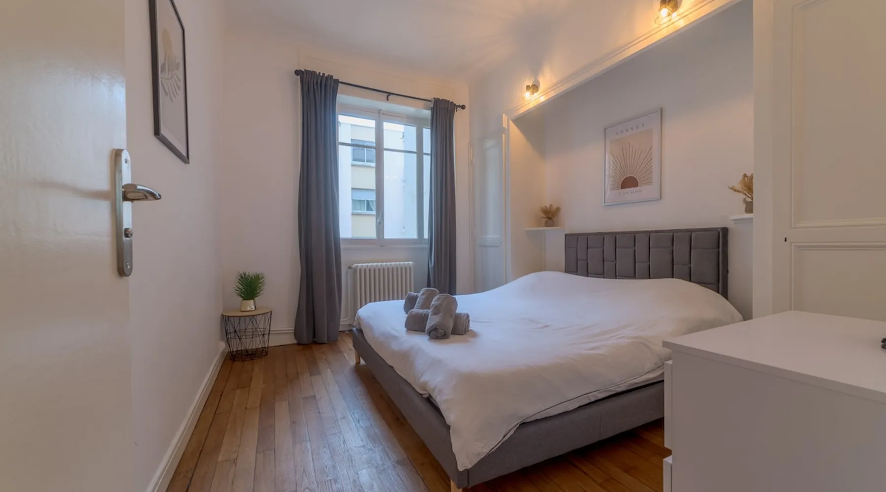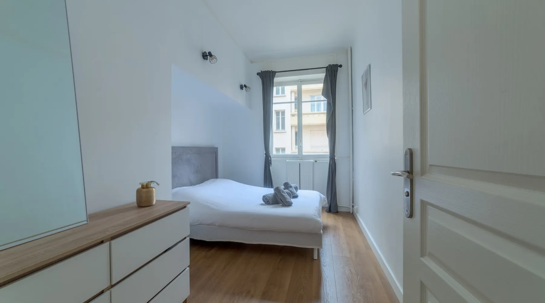 Immerse yourself in the elegance of this exceptional 2-bedroom apartment, nestled in the popular Foch district, just 5 minutes from Parc de la Tête d'Or. Offering a refined and modern setting, this premium apartment, which can accommodate up to 4 people, guarantees you an unforgettable stay. Enjoy a bright living room, fully-equipped kitchen, comfortable bedrooms and elegant bathroom, for a unique experience in one of Lyon's most sought-after neighborhoods. The space 100% COMFORT & DESIGN → A SPACIOUS AND BRIGHT LIVING ROOM: Settle into a refined and spacious living space that combines modernity and conviviality. The living room, large and bright, is equipped with a designer sofa and a smart TV, perfect for relaxing after a busy day. The meticulously chosen decor creates a soothing atmosphere, conducive to relaxation and sharing. → ULTRA-EQUIPPED OPEN KITCHEN: The kitchen, the true heart of the apartment, is a masterpiece of modernity. Equipped with all the essential amenities – stove, fridge, dishwasher, microwave, oven, Nespresso coffee machine and much more – it invites you to prepare delicious meals in a friendly setting. The opening onto the living and dining room promotes a fluid and warm living space. → TWO SOMBER AND COMFORTABLE BEDROOMS: Both bedrooms offer a haven of peace. Each has a luxury double bed guaranteeing restful nights, as well as built-in storage spaces and a sleek layout to optimize your comfort. The quality of the materials and the refined design create a soft atmosphere conducive to relaxation after a day of discoveries in Lyon. → AN ELEGANT AND FUNCTIONAL BATHROOM: The bathroom, completely renovated, is distinguished by its spacious shower cubicle, modern vanity unit and separate toilet. A chic and practical space where every detail is designed for your well-being. → HIGH-END CONNECTIVITY AND SERVICES: To meet all your needs, the apartment is equipped with high-speed Wi-Fi, ideal for remote work or your entertainment moments. You will also enjoy air conditioning for optimal comfort in any season. Premium linens and towels, as well as premium toiletries (soap, shower gel, shampoo), await you to guarantee a carefree stay. Nespresso coffee is also available to help you get the day off to a good start. 100% PRACTICAL → AN IDEAL LOCATION IN THE FOCH NEIGHBORHOOD: Ideally located in the prestigious Foch neighborhood of the 6th arrondissement, this apartment is just a 5-minute walk from Parc de la Tête d'Or, a green setting in the heart of the city. The Foch metro, in the immediate vicinity, will allow you to quickly reach the city center and its must-see attractions. The neighborhood, both quiet and chic, is full of the best restaurants, shops and tourist attractions in Lyon. → CONVENIENT PARKING: Free parking is available right in front of the property, making your arrival and driving around easy. → FLEXIBLE CHECK-IN & CHECKOUT: Check-in is autonomous and flexible thanks to our secure key box, allowing you to arrive at your convenience from 3pm. Early check-in or late check-out can be arranged upon request, subject to availability and with a surcharge, for even more flexibility. → CONCIERGE SERVICE AT YOUR DISPOSAL: We make it a point of honor to meticulously prepare the apartment before each arrival to provide you with an unparalleled experience. A concierge service is available for anything you need and to assist you during your stay. AN UNFORGETTABLE STAY AWAITS YOU! Book now and be seduced by the elegance, comfort and exceptional location of this exceptional 2-bedroom apartment! ✨ Guest access Guests will have independent access to the entire apartment. To retrieve the keys, a secure key box is located near the accommodation. This convenient and flexible service allows you to pick up and drop off keys easily, according to your check-in and check-out times. Access to the apartment includes all amenities: 2 bedrooms, living room with sofa, fully equipped kitchen, and modern bathroom. You'll also have access to amenities like TV with Netflix, high-speed Wi-Fi, and linens provided. Everything is designed to offer you an exceptional stay. Other things to note A few hours before your arrival, you will receive a digital welcome booklet with all the essential information to access the accommodation independently and enjoy your stay. House Rules: For the respect of the neighborhood and the tranquility of the place, parties and noisy events are strictly prohibited. It is also requested not to smoke inside the apartment. We're dedicated to your comfort and safety. Check-in hours are only from 3:00 p.m. and departure times are always imperative before 11:00 a.m. Parking: It's easy to find spots in front of the listing address. House Rules: Please respect the neighborhood by avoiding excessive noise, especially at night. This apartment is non-smoking and pets are not allowed. Check-in and Checkout: Check-in is at 3pm and check-out is before 11am. Safety: For your safety, the apartment is equipped with a smoke detector. Included services: Cleaning is included, as well as bath towels, shower gel, shampoo and coffee for a worry-free stay. Check-out: Please lock the listing and drop the keys in the key box. Listing features: Our modern and well-appointed accommodation offers all the amenities for a comfortable and pleasant stay. Ideal to explore the region independently. Important: Currently, the bed base is damaged and the bed legs are broken, so the bed is placed directly on the floor. We wanted to inform you in advance to avoid any surprises. The problem will be resolved in a few days. Registration details 6938624539154