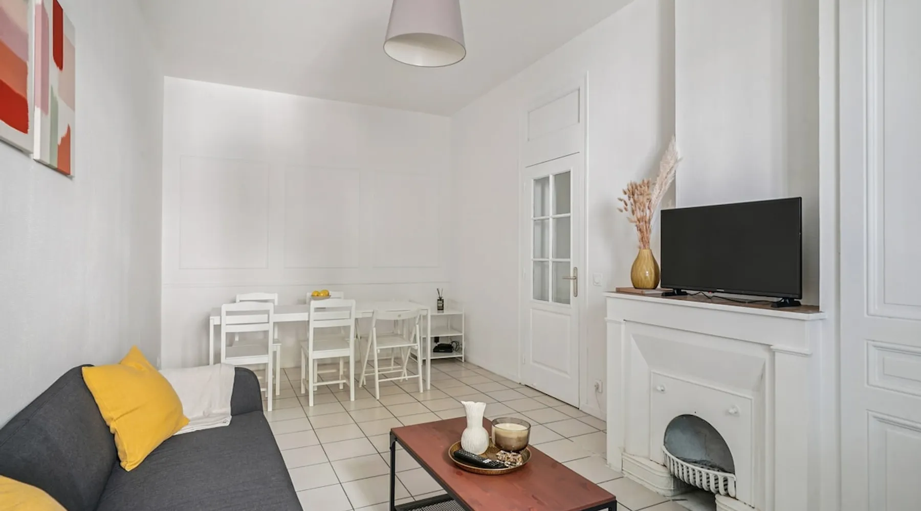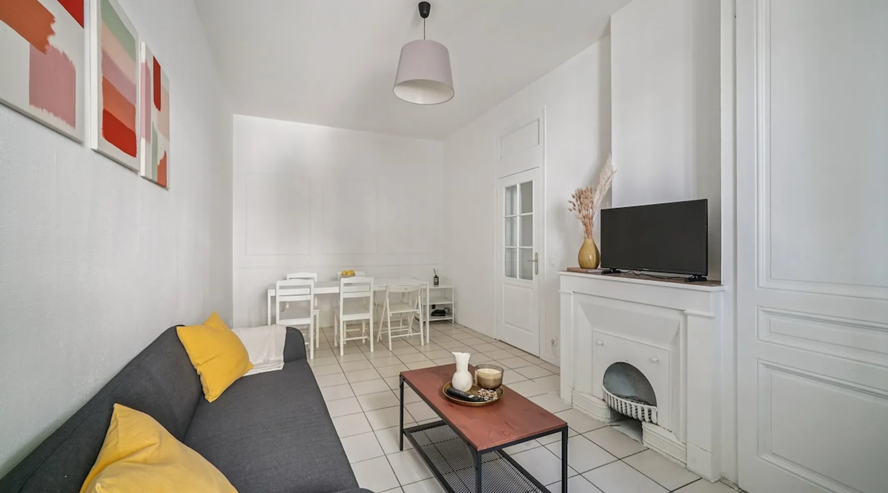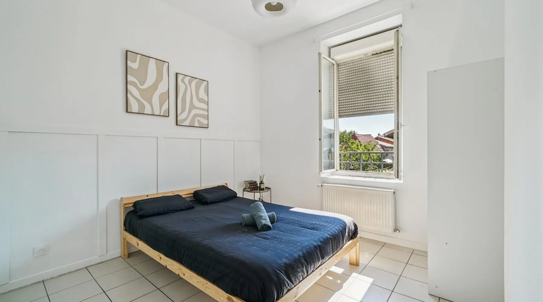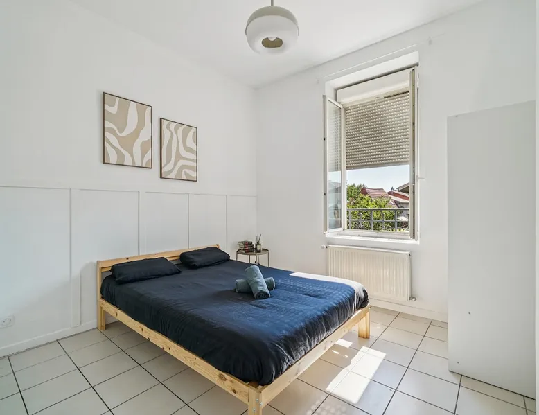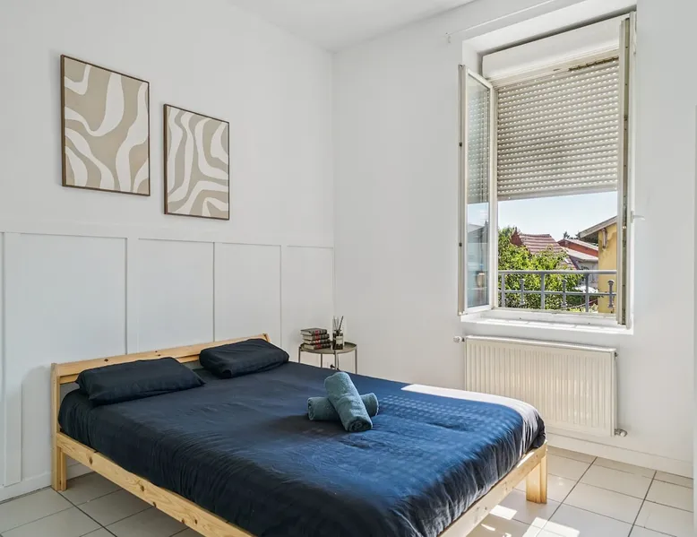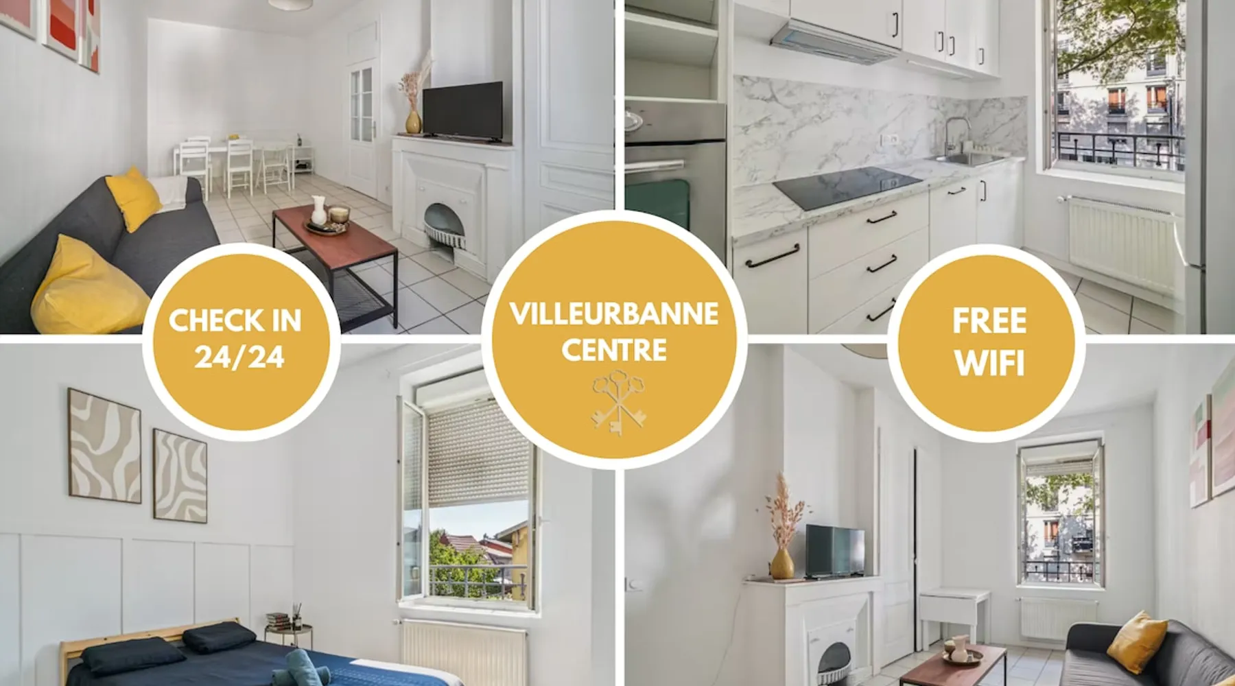 COMFORTABLE AND MODERN 2-BEDROOM APARTMENT IN VILLEURBANNE. Perfect for 4 travellers, it offers two bedrooms with double beds, a fully equipped open kitchen in white marble, a bright living room with TV and Wi-Fi, a shower room with walk-in shower, and separate toilets. Located on the 1st floor (no lift), with self check-in via secure key box. The space 100% COMFORT → A TASTEFULLY RENOVATED APARTMENT FOR A PEACEFUL STAY Upon entering, you will be seduced by the well-thought-out volumes and the soft atmosphere of this 60 m² T3, entirely renovated with quality materials. The bright living room offers a warm space, ideal for relaxing after a day in Lyon: comfortable sofa, connected TV, high-speed Wi-Fi, and a dining table for 4 guests. → A CONTEMPORARY AND FUNCTIONAL KITCHEN Open to the living room, the modern white marble kitchen is equipped to meet all your culinary needs: oven, hobs, microwave, fridge-freezer, dishwasher, as well as a capsule coffee machine, kettle and complete utensils. You will find all the comforts of a real home. → TWO BEDROOMS WITH HIGH-END BEDDING The accommodation has two real bedrooms, each equipped with a double bed (140x200) with hotel bedding, built-in storage and a cosy atmosphere. Perfect for a stay for two, with family or colleagues, with privacy and comfort guaranteed. → AN ELEGANT BATHROOM AND SEPARATE TOILET The spacious bathroom has a walk-in shower, a designer washbasin, a towel dryer, as well as all the necessary towels. The toilets are separate for added convenience in everyday life. 100% GOOD LOCATION → IN THE HEART OF VILLEURBANNE – EASY ACCESS TO ALL OF LYON Located on the dynamic Avenue Roger Salengro, the apartment enjoys a central location close to Lyon 1 University, La Doua, La Part-Dieu and the main roads. Shops, restaurants, bakeries, supermarkets and public transport (tram, metro, bus) are within walking distance. → A STRATEGIC LOCATION FOR YOUR TRAVELS Whether you are on a business trip, a family visit or a Lyon getaway, this location allows you to quickly reach: Lyon city centre (Presqu'île, Vieux Lyon) Economic hubs (Part-Dieu, Villeurbanne, Vaulx-en-Velin) The banks of the Rhône and the large parks → SECURE SELF-CHECK-IN WITH KEY BOX For more flexibility, access to the accommodation is independent via a secure key box. All instructions will be communicated to you in advance for a simple arrival without time constraints. BOOK NOW FOR A PEACEFUL STAY Our team ensures that every stay is perfect. Before your arrival, the apartment is cleaned and carefully prepared by professionals. Guest access Guests have full access to the apartment. Check-in is completely autonomous thanks to a secure key box, the exact location of which will be communicated to you before your arrival. Everything is designed for a simple, fast and time-free installation. Other things to note “My place to go from now. My second stay here and when I came back for the second time, I already felt at home. Friendly host, the place that shines with cleanliness, peace and calm is the perfect combination for a great experience!” In order to offer you a pleasant stay, we provide you with: – sheets for bedding (no renewal during the stay) – towels and bath mats (no renewal during the stay) – hand soap (no renewal during the stay) – coffee capsules (no renewal during your stay) We always do a full cleaning of the accommodation before each arrival thanks to a professional team, to guarantee you cleanliness and comfort. We thank you for respecting the premises and keeping it in good condition. No smoking – evenings, noise disturbances, and no pets allowed. Hours: – Check-in: from 3 p.m. (flexibility possible on request) – Check-out by 11am We are a concierge intervening in Lyon and its surroundings, at your disposal for any questions or needs during your stay. We look forward to hosting you already!