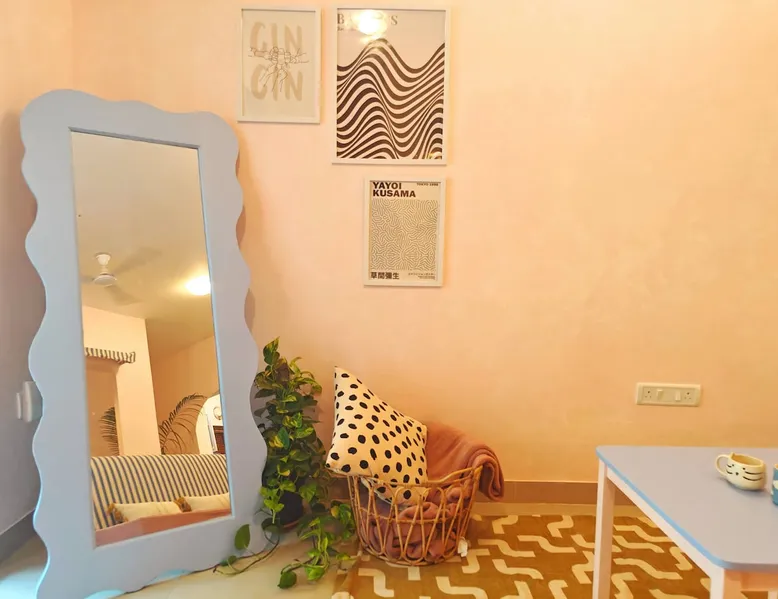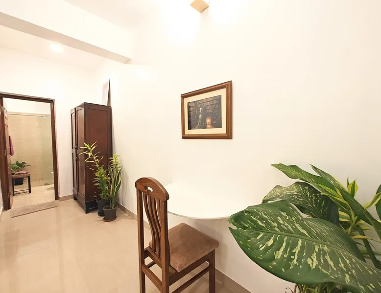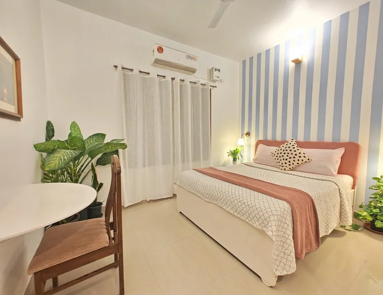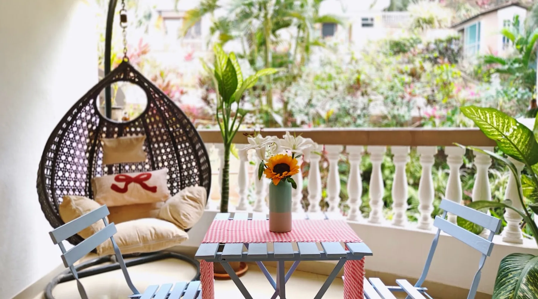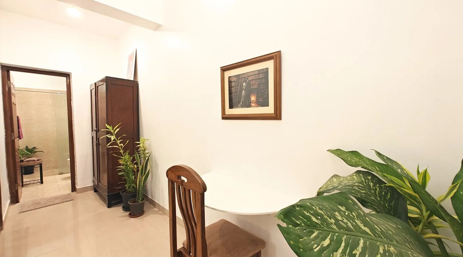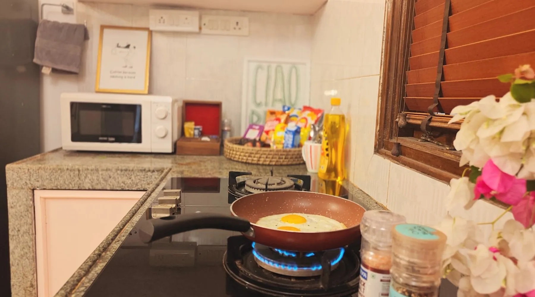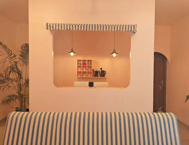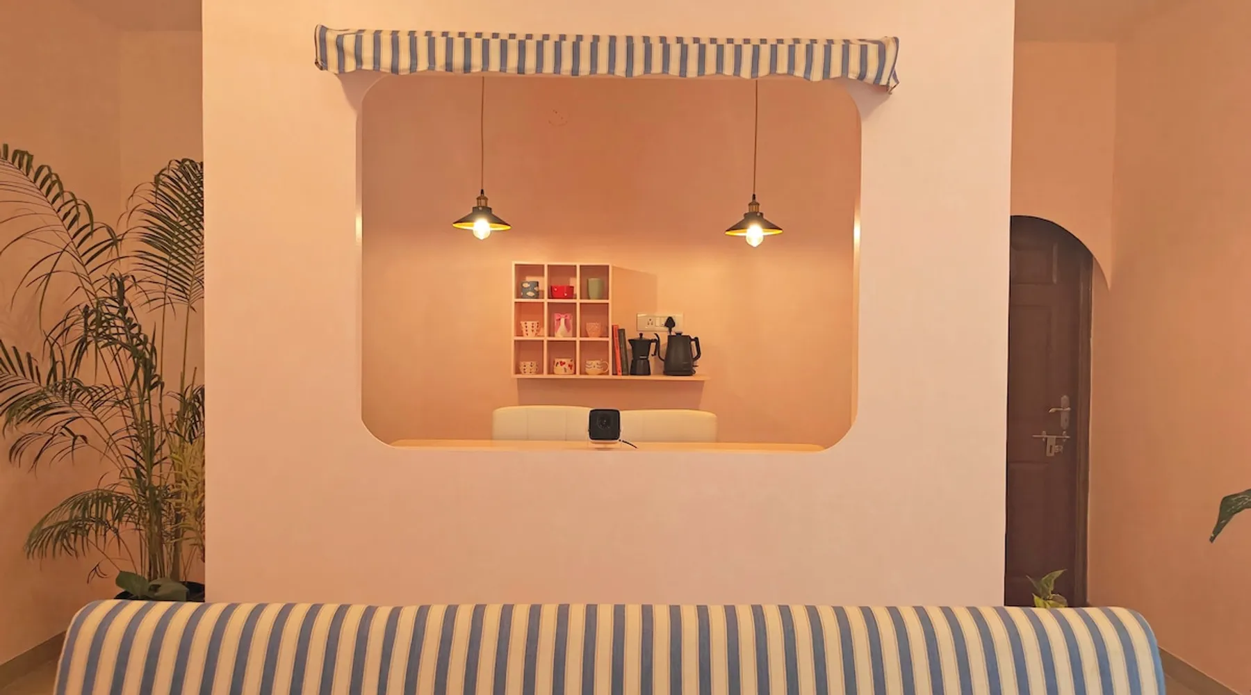 Nestled in the lush hills of Vadi, Siolim, Mocha is a spacious 1 BHK designed for comfort. With glass windows overlooking greenery, a cozy bedroom, en-suite bathroom, and a living room with a sofa-cum-bed & projector for OTT movie nights, Mocha is the perfect blend of style and relaxation. The cafe-inspired nook, with a work/dining table, makes it ideal for staycations. Explore Siolim's cafes bars, with Anjuna, Vagator, Assagao & Morjim, Mandrem beaches 15-20 min away & 35 min from MOPA airport. The space As you step inside Mocha, you’ll find a cozy little nook reminiscent of a cafe at home. Sip on freshly brewed coffee from a collection of cute mugs, get some work done at the cafe-inspired space, or just enjoy the laid-back vibe. The living room features a low, comfy sofa-cum-bed, perfect for lounging or enjoying movie nights on the king-sized wall projection, complete with a smart projector equipped with all OTT platforms. The bedroom is warm and inviting, featuring a full-sized storage cupboard and a cozy en-suite bathroom. The kitchen is fully equipped with a 4-burner hob, oven, fridge, and RO system for fresh water, ensuring you can whip up a snack or meal with ease. The balcony offers breathtaking views of the lush green hill behind the apartment, making it an ideal spot to unwind. Other things to note Local Gems @ Walking Distance: The Blue Wagon Cafe & Sabr Coffee: Great food, cozy vibes, 5 minutes walk away Boiler Maker: Amazing cocktails & fresh beers (5 pm–12 am), 6 minutes walk away Rare Republic: Great cafe open till 8 pm (closed Wednesdays) just downstairs in the same building Coastal Spice: Delicious Goan thali & elaborate menu Thalassa, Summerhouse, Kiki & C’est la Vie: Perfect for sundowners with stunning views. Moto Cafe: Great dive bar for nostalgic rock vibe For Groceries/Daily Needs: Swiggy Instamart & Blinkit deliver in 15 mins round the clock Nearby supermarkets: AJ’s, Jimmy’s supermarket in Siolim are a 10 min drive away, and Kavita Super market in Siolim (open till midnight). Distance to Beaches & Airports (Drive Time): Vagator Beach: 10 mins Morjim Beach: 15 mins Chapora Fort & Street: 7 mins GOI Airport (Dabolim): 1.5 hours GOX Airport (Mopa): 1 hour Important Note: Minor electricity fluctuations may occur during the rains, a common occurrence in Goa. Mocha has an internal power backup for WiFi, fans, bedside sockets, and essential lights. However, the AC, geyser, and some lights won’t work on backup. Rest assured, we’re always in touch with the electricity department for speedy resolutions! Order food via Swiggy/Zomato, grab beers from the wine shop outside, or explore countless dining and sunset spots nearby. Mocha is your perfect retreat for a memorable staycation in Goa! 🌿✨ You said: Registration Details HOT24NI2778