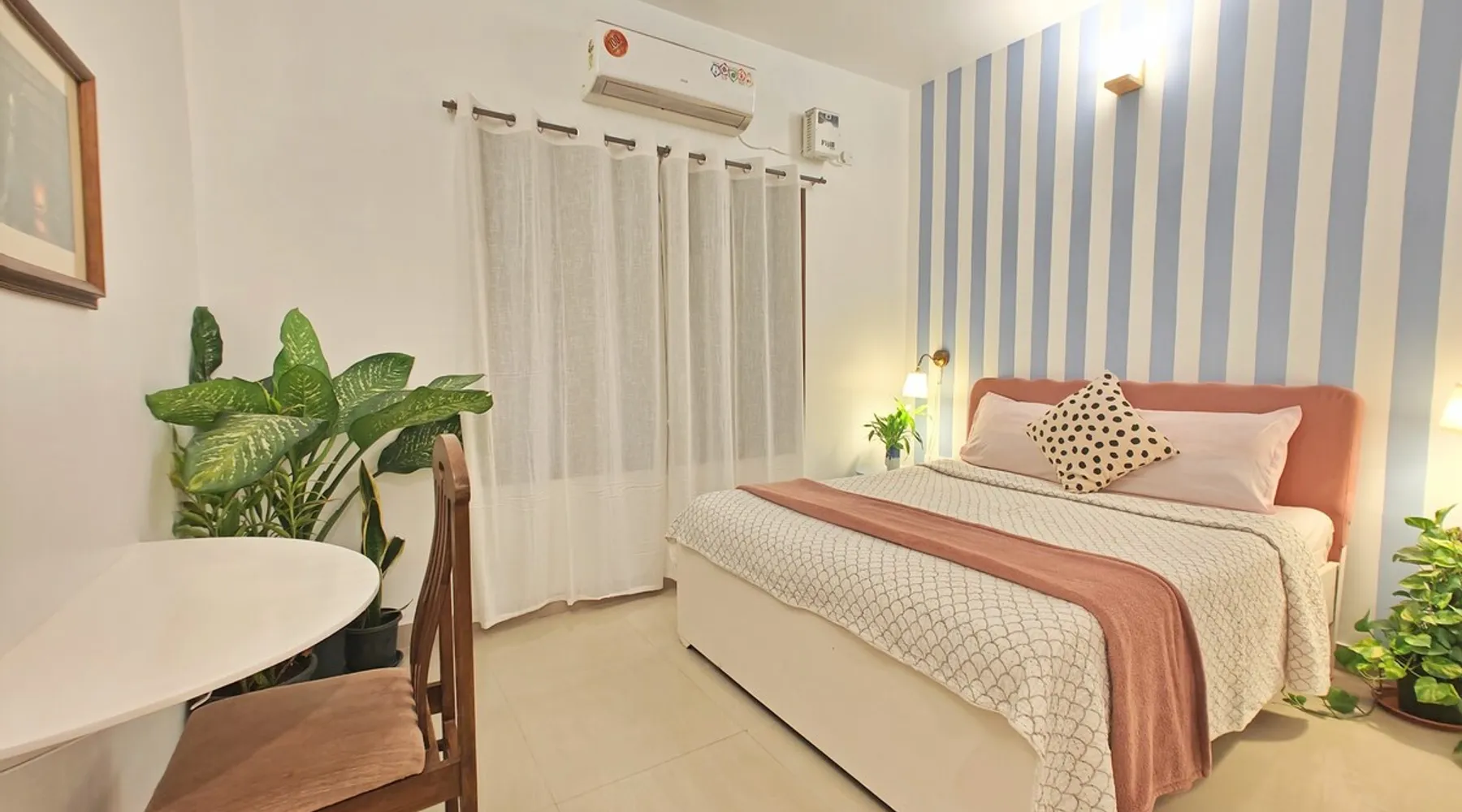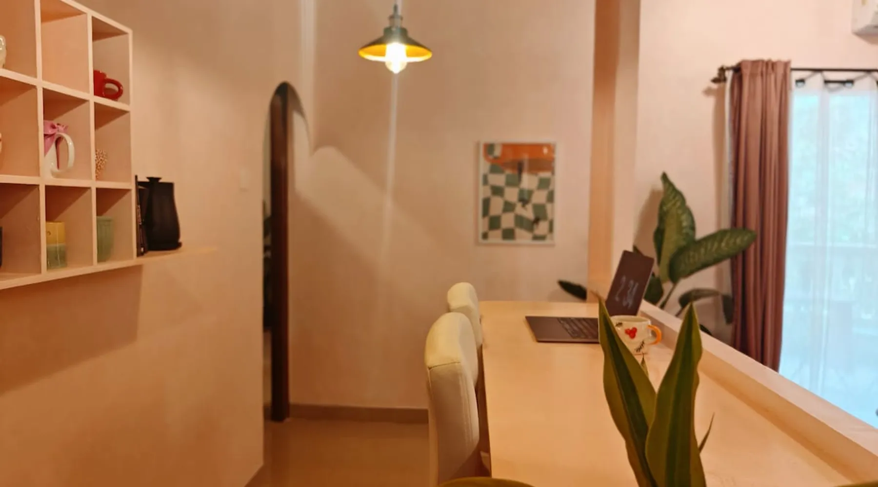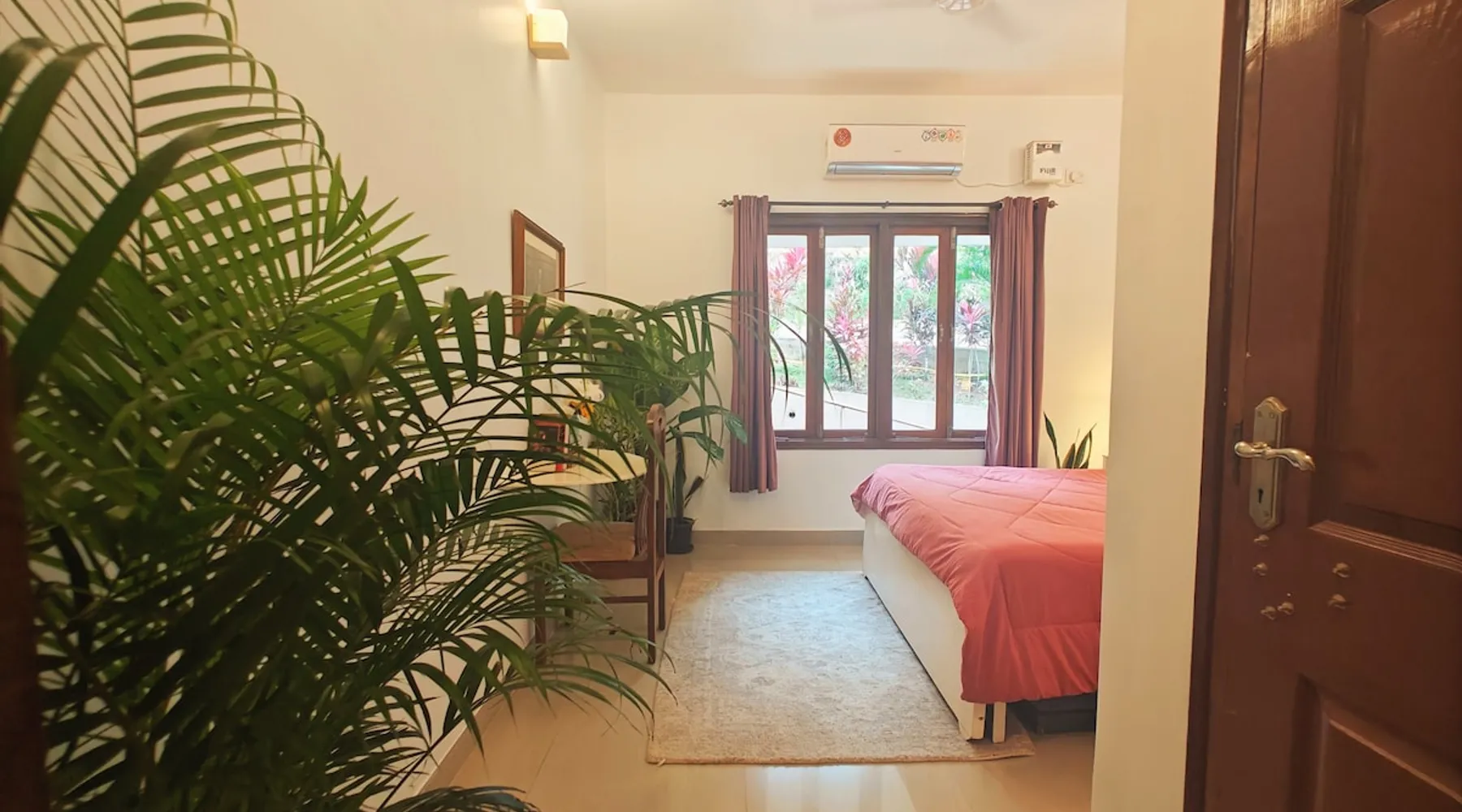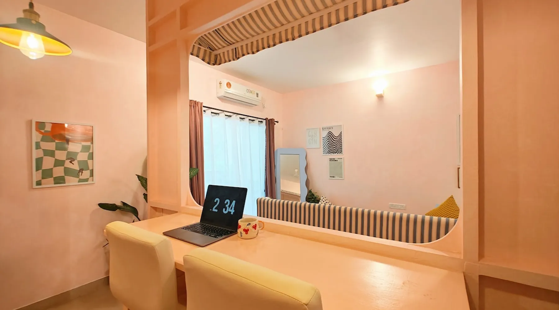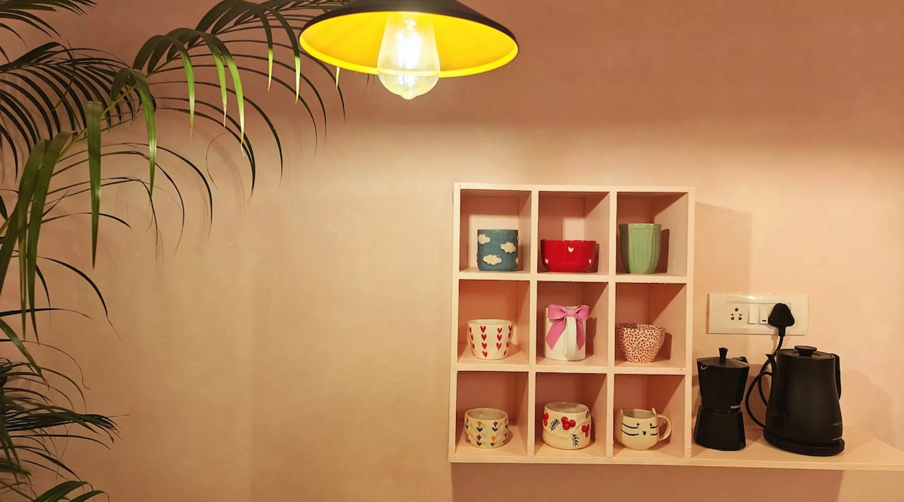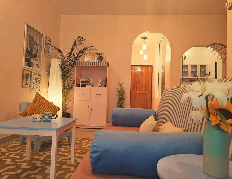 Nestled in the lush hills of Vadi, Siolim, Mocha is a spacious 1 BHK designed for comfort. With glass windows overlooking greenery, a cozy bedroom, en-suite bathroom, and a living room with a sofa-cum-bed & projector for OTT movie nights, Mocha is the perfect blend of style and relaxation. The cafe-inspired nook, with a work/dining table, makes it ideal for staycations. Explore Siolim's cafes bars, with Anjuna, Vagator, Assagao & Morjim, Mandrem beaches 15-20 min away & 35 min from MOPA airport. The space As you step inside Mocha, you’ll find a cozy little nook reminiscent of a cafe at home. Sip on freshly brewed coffee from a collection of cute mugs, get some work done at the cafe-inspired space, or just enjoy the laid-back vibe. The living room features a low, comfy sofa-cum-bed, perfect for lounging or enjoying movie nights on the king-sized wall projection, complete with a smart projector equipped with all OTT platforms. The bedroom is warm and inviting, featuring a full-sized storage cupboard and a cozy en-suite bathroom. The kitchen is fully equipped with a 4-burner hob, oven, fridge, and RO system for fresh water, ensuring you can whip up a snack or meal with ease. The balcony offers breathtaking views of the lush green hill behind the apartment, making it an ideal spot to unwind. Other things to note Local Gems @ Walking Distance: The Blue Wagon Cafe & Sabr Coffee: Great food, cozy vibes, 5 minutes walk away Boiler Maker: Amazing cocktails & fresh beers (5 pm–12 am), 6 minutes walk away Rare Republic: Great cafe open till 8 pm (closed Wednesdays) just downstairs in the same building Coastal Spice: Delicious Goan thali & elaborate menu Thalassa, Summerhouse, Kiki & C’est la Vie: Perfect for sundowners with stunning views. Moto Cafe: Great dive bar for nostalgic rock vibe For Groceries/Daily Needs: Swiggy Instamart & Blinkit deliver in 15 mins round the clock Nearby supermarkets: AJ’s, Jimmy’s supermarket in Siolim are a 10 min drive away, and Kavita Super market in Siolim (open till midnight). Distance to Beaches & Airports (Drive Time): Vagator Beach: 10 mins Morjim Beach: 15 mins Chapora Fort & Street: 7 mins GOI Airport (Dabolim): 1.5 hours GOX Airport (Mopa): 1 hour Important Note: Minor electricity fluctuations may occur during the rains, a common occurrence in Goa. Mocha has an internal power backup for WiFi, fans, bedside sockets, and essential lights. However, the AC, geyser, and some lights won’t work on backup. Rest assured, we’re always in touch with the electricity department for speedy resolutions! Order food via Swiggy/Zomato, grab beers from the wine shop outside, or explore countless dining and sunset spots nearby. Mocha is your perfect retreat for a memorable staycation in Goa! 🌿✨ You said: Registration Details HOT24NI2778