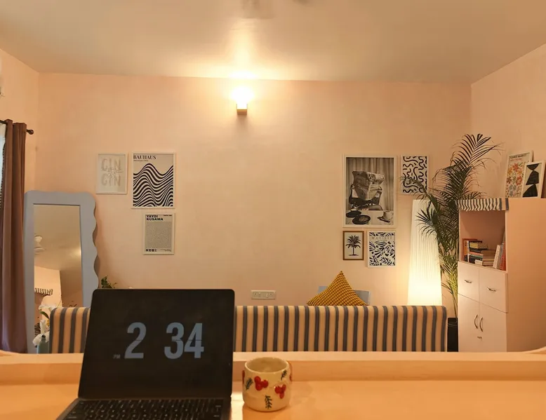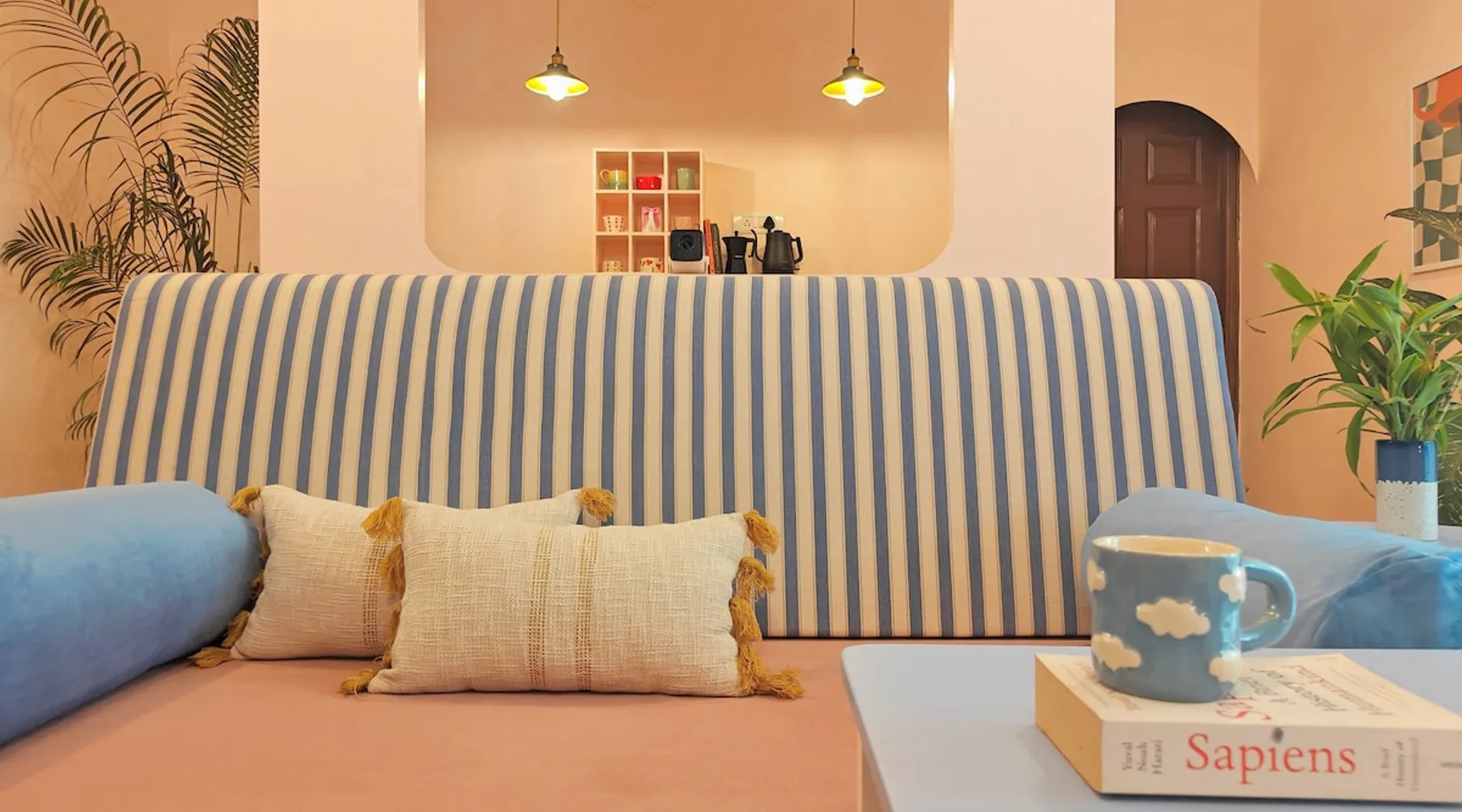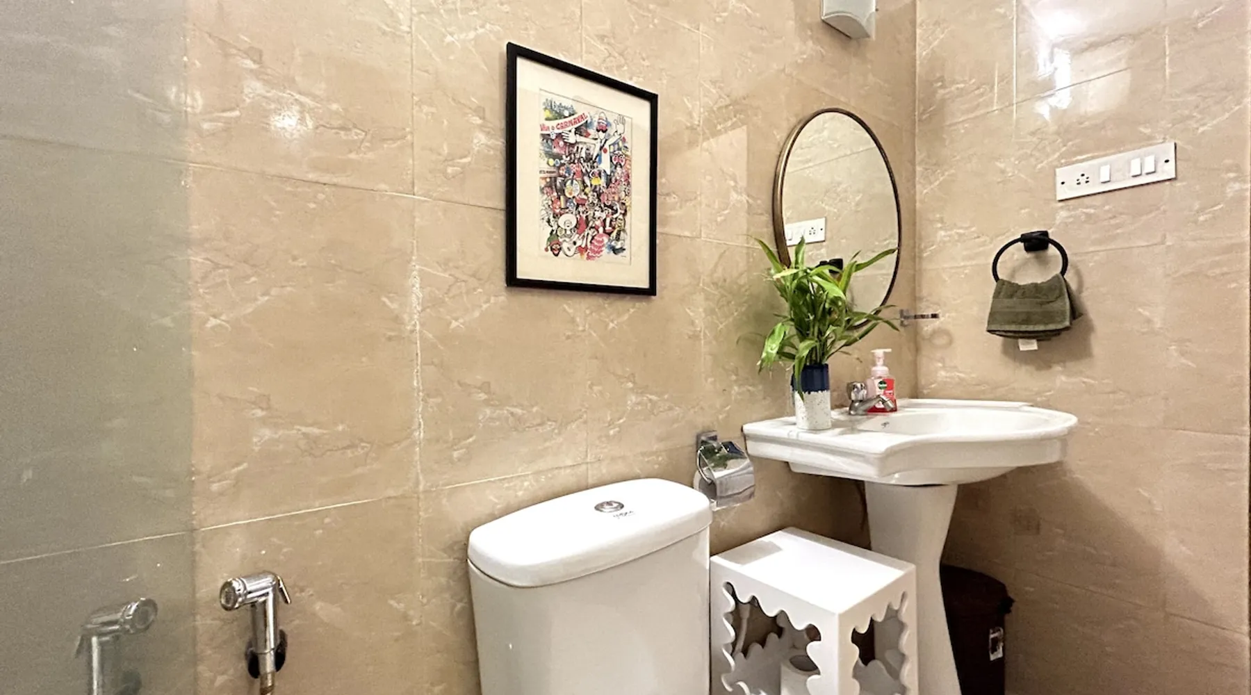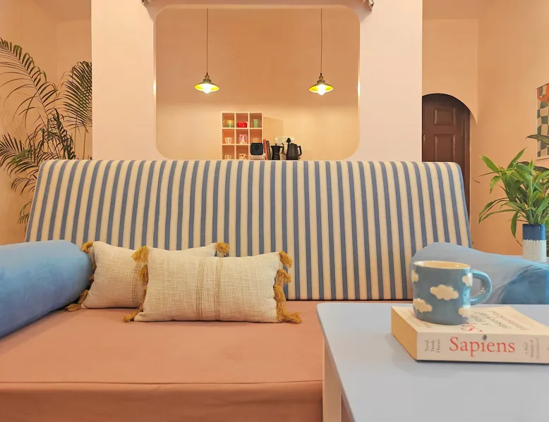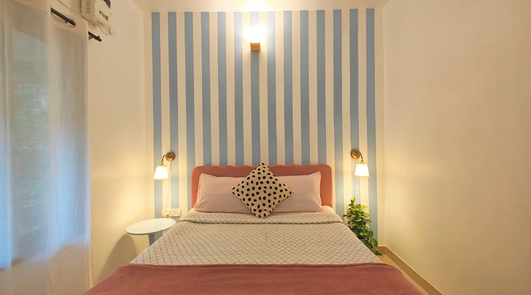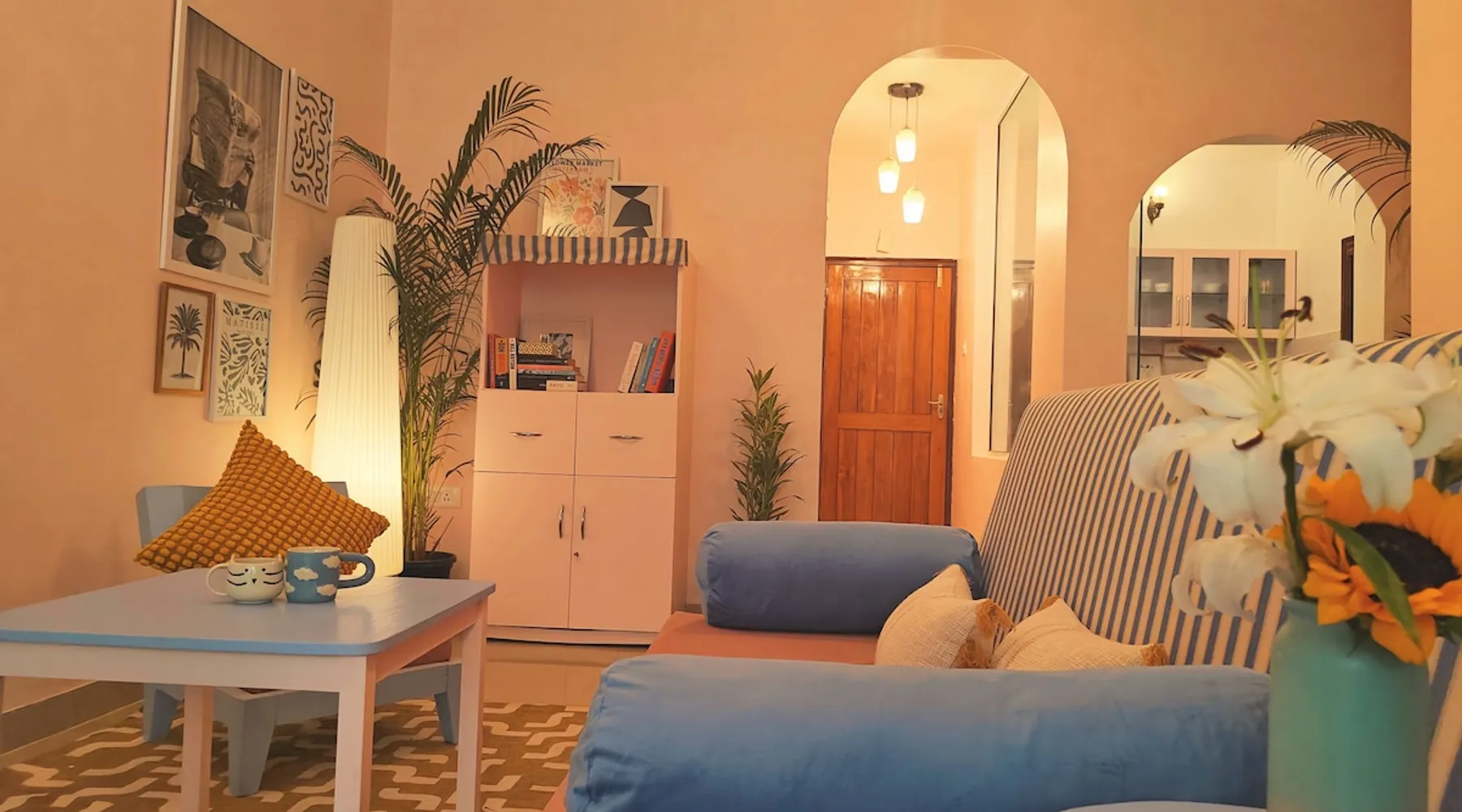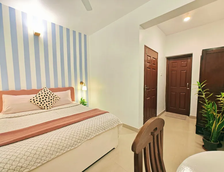 Nestled in the lush hills of Vadi, Siolim, Mocha is a spacious 1 BHK designed for comfort. With glass windows overlooking greenery, a cozy bedroom, en-suite bathroom, and a living room with a sofa-cum-bed & projector for OTT movie nights, Mocha is the perfect blend of style and relaxation. The cafe-inspired nook, with a work/dining table, makes it ideal for staycations. Explore Siolim's cafes bars, with Anjuna, Vagator, Assagao & Morjim, Mandrem beaches 15-20 min away & 35 min from MOPA airport. The space As you step inside Mocha, you’ll find a cozy little nook reminiscent of a cafe at home. Sip on freshly brewed coffee from a collection of cute mugs, get some work done at the cafe-inspired space, or just enjoy the laid-back vibe. The living room features a low, comfy sofa-cum-bed, perfect for lounging or enjoying movie nights on the king-sized wall projection, complete with a smart projector equipped with all OTT platforms. The bedroom is warm and inviting, featuring a full-sized storage cupboard and a cozy en-suite bathroom. The kitchen is fully equipped with a 4-burner hob, oven, fridge, and RO system for fresh water, ensuring you can whip up a snack or meal with ease. The balcony offers breathtaking views of the lush green hill behind the apartment, making it an ideal spot to unwind. Other things to note Local Gems @ Walking Distance: The Blue Wagon Cafe & Sabr Coffee: Great food, cozy vibes, 5 minutes walk away Boiler Maker: Amazing cocktails & fresh beers (5 pm–12 am), 6 minutes walk away Rare Republic: Great cafe open till 8 pm (closed Wednesdays) just downstairs in the same building Coastal Spice: Delicious Goan thali & elaborate menu Thalassa, Summerhouse, Kiki & C’est la Vie: Perfect for sundowners with stunning views. Moto Cafe: Great dive bar for nostalgic rock vibe For Groceries/Daily Needs: Swiggy Instamart & Blinkit deliver in 15 mins round the clock Nearby supermarkets: AJ’s, Jimmy’s supermarket in Siolim are a 10 min drive away, and Kavita Super market in Siolim (open till midnight). Distance to Beaches & Airports (Drive Time): Vagator Beach: 10 mins Morjim Beach: 15 mins Chapora Fort & Street: 7 mins GOI Airport (Dabolim): 1.5 hours GOX Airport (Mopa): 1 hour Important Note: Minor electricity fluctuations may occur during the rains, a common occurrence in Goa. Mocha has an internal power backup for WiFi, fans, bedside sockets, and essential lights. However, the AC, geyser, and some lights won’t work on backup. Rest assured, we’re always in touch with the electricity department for speedy resolutions! Order food via Swiggy/Zomato, grab beers from the wine shop outside, or explore countless dining and sunset spots nearby. Mocha is your perfect retreat for a memorable staycation in Goa! 🌿✨ You said: Registration Details HOT24NI2778