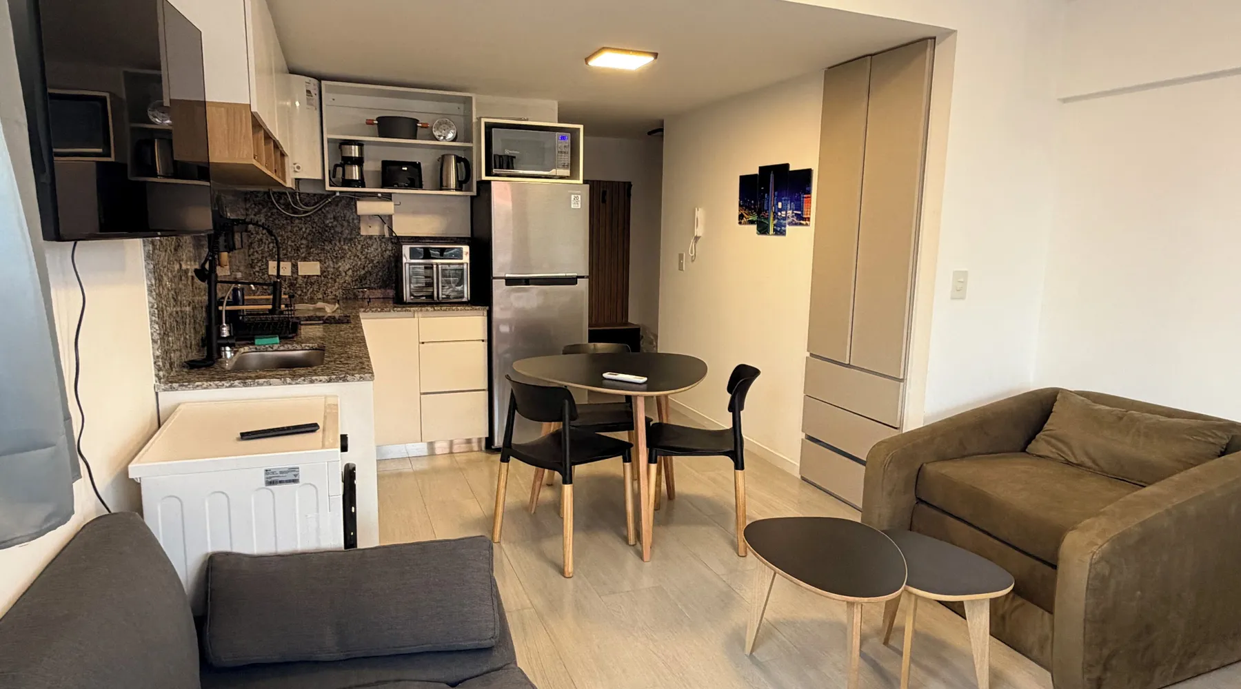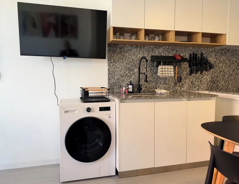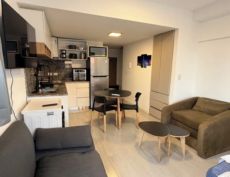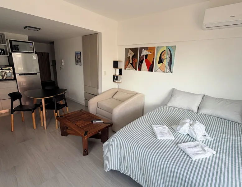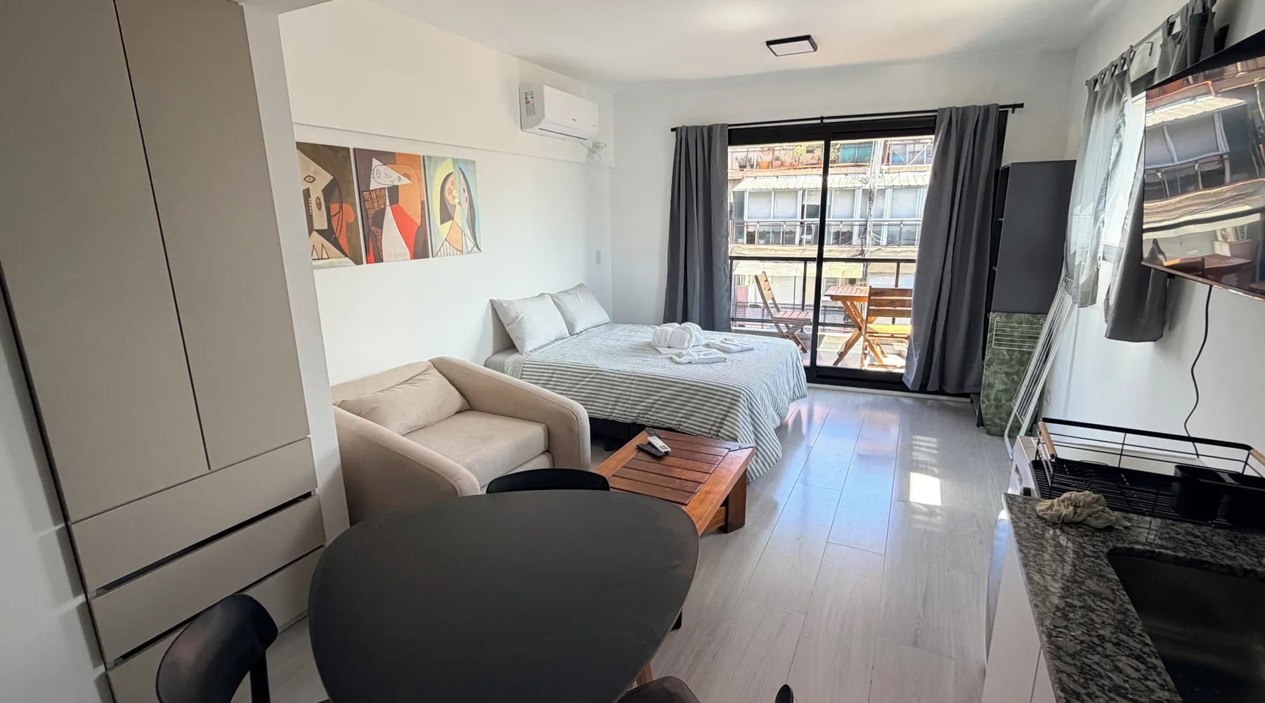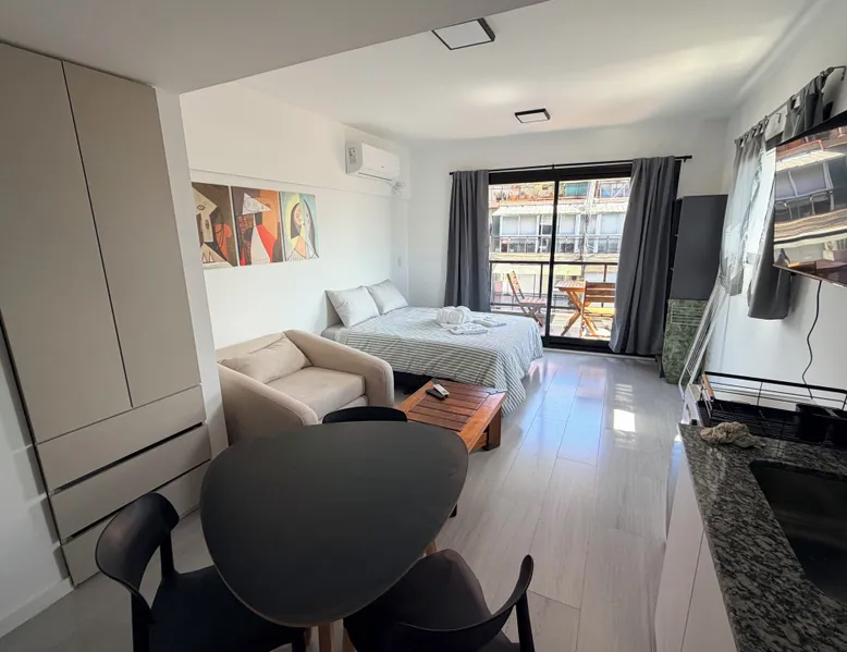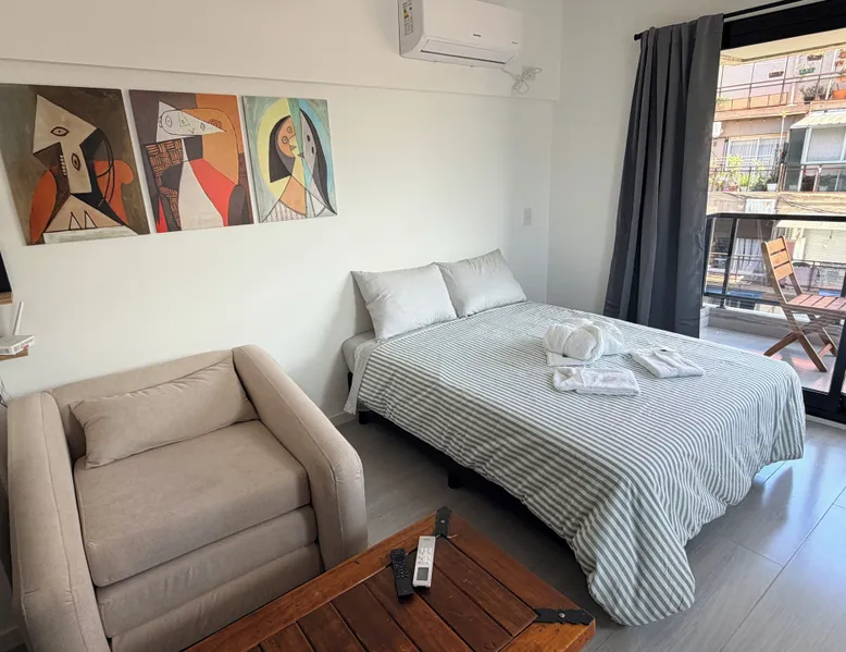 airesB&B presents the Palermo Portẽnito. The Portẽnito is a new 10th Floor space efficient and bright studio apartment. It is located on the border of the bustling Palermo SoHo and the trendy Villa Crespo. This apartment was designed by a returning digital nomad and includes all the necessary quality amenities required to be self sufficient and productive. The apartment has a spacious 12th floor CoWork Salon for work/entertainment as well as a 13th floor rooftop pool with 360 view (Dec 2025). Dia and Jumbo stores within 2 blocks. The space: The Portẽnito is a bright space efficient 9th floor studio apartment with new Samsung refrigerator, air conditioner and washing machine. A TCL ULED 43” TV is in the living with articulating mount so it can be watched anywhere in the room. The space has 2 beds, a full sized Serta mattress bed as well as a pullout single bed sofa/cama. The kitchen is bright with table and chairs for 3 people. The kitchen incorporates a 2 element infrared glass cooktop and a countertop large air fryer. The kitchen has a toaster, coffee maker and kettle as well as all necessary cooking accessories and knives that would make a chef blush. The kitchen also has an under sink mount Culligan USA water filter to save the cost and effort of finding bottled water. The bathroom has a medium sized corner shower, hair dryer, iron and storage. The toilet has a built in bidet The apartment has an ample storage, including a custom cabinet with shelves and hangers as well as extra shelf unit. The entrance has a bench and storage unit. The patio has comfortable wood table and chairs for enjoy tranquility to enjoy a coffee or work. The rooftop has both a bright cowork/entertainment salon and a heated pool to enjoy the hot afternoons. The lobby of the apartment has a REZ meat shop as well as both a Dia and Jumbo within 2 blocks. For fitness, there are 2 large Sports Clubs located 2 and 3 blocks away. The Urbanito is located on the corner of Lerma and Israel and is within 4 blocks of both Avenida Corrientes (B Line) and Cordoba. A few extra blocks walk or bike ride is the spectacular Parque Centennario. There is every ethnic food choice you can wish within a 5 minute walk. 10 minutes, you are in the foodie and entertainment center of Palermo SoHo and Plaza Serrano. Walk to the South, you enter Almagro with many local Tango and cocktail bars. Moviestar area is about 2.4km away, about a 10min Uber ride. Additional house cleaning can be provided by AiresBnB at a small extra cost. Guest access: Guests are free to use the rooftop pool and cowork/entertainment roof as well as bike storage area outside the apartment next to elevator. Other things to note Since the building is new, The pool and cowork area will be available in mid -December as they are currently being finished.