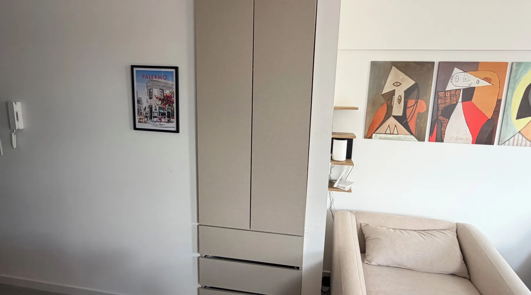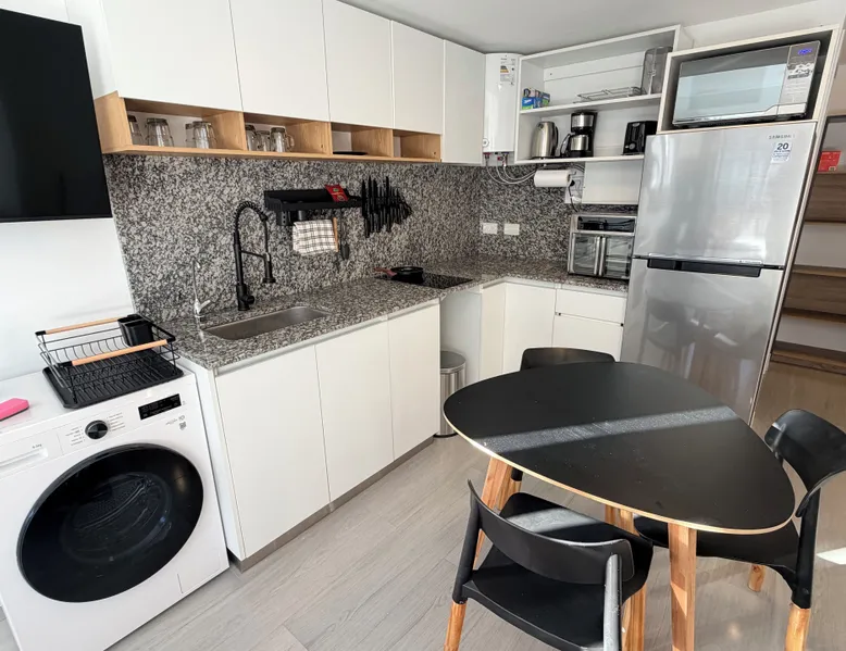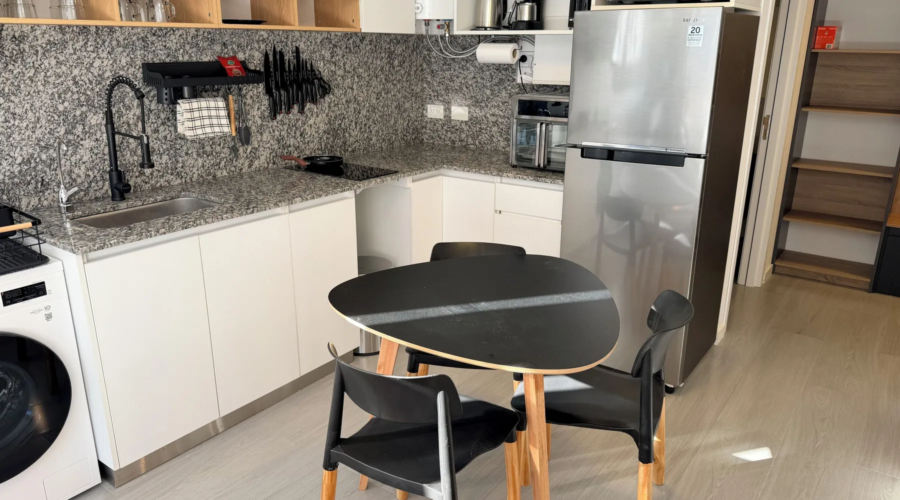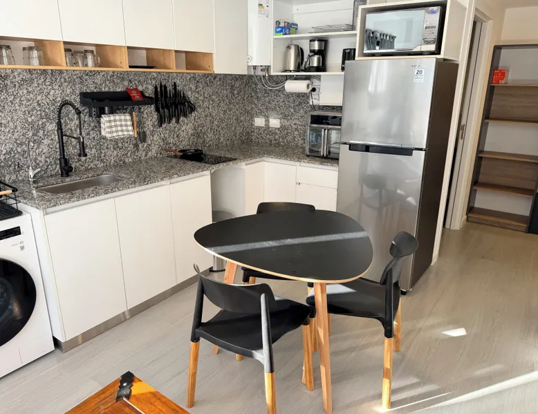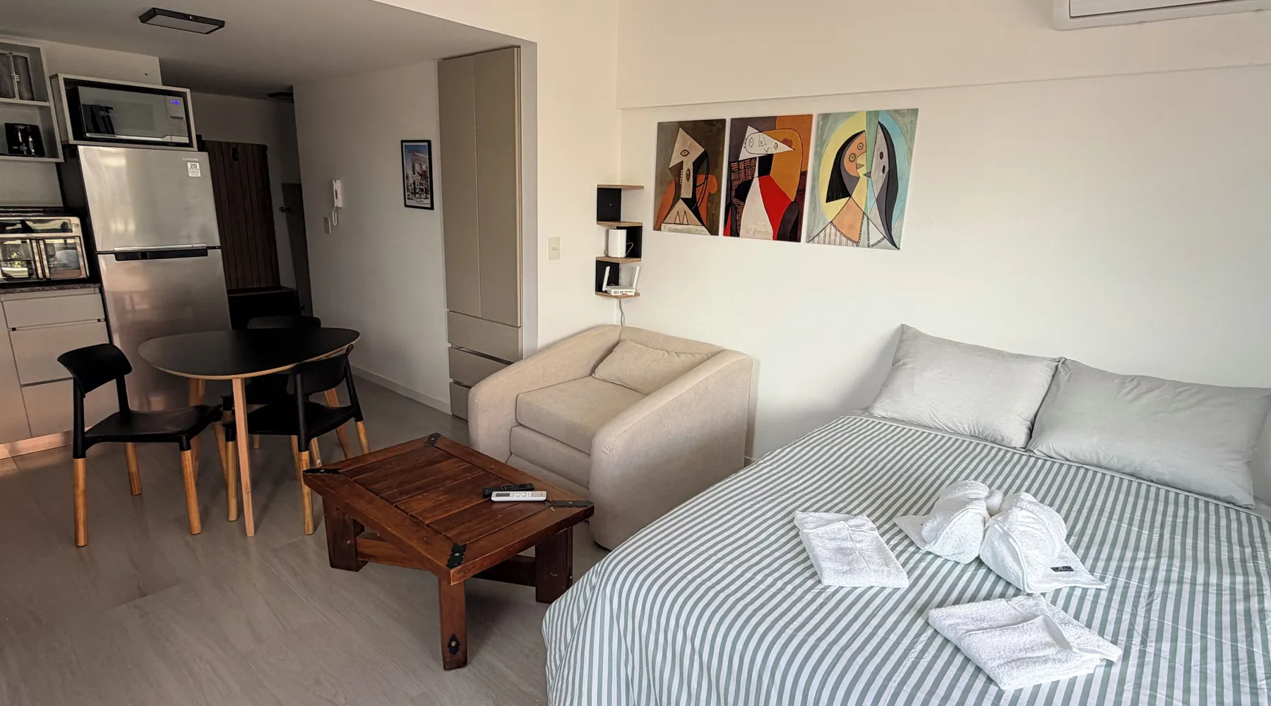 airesB&B presents the Palermo Portẽnito. The Portẽnito is a new 10th Floor space efficient and bright studio apartment. It is located on the border of the bustling Palermo SoHo and the trendy Villa Crespo. This apartment was designed by a returning digital nomad and includes all the necessary quality amenities required to be self sufficient and productive. The apartment has a spacious 12th floor CoWork Salon for work/entertainment as well as a 13th floor rooftop pool with 360 view (Dec 2025). Dia and Jumbo stores within 2 blocks. The space: The Portẽnito is a bright space efficient 9th floor studio apartment with new Samsung refrigerator, air conditioner and washing machine. A TCL ULED 43” TV is in the living with articulating mount so it can be watched anywhere in the room. The space has 2 beds, a full sized Serta mattress bed as well as a pullout single bed sofa/cama. The kitchen is bright with table and chairs for 3 people. The kitchen incorporates a 2 element infrared glass cooktop and a countertop large air fryer. The kitchen has a toaster, coffee maker and kettle as well as all necessary cooking accessories and knives that would make a chef blush. The kitchen also has an under sink mount Culligan USA water filter to save the cost and effort of finding bottled water. The bathroom has a medium sized corner shower, hair dryer, iron and storage. The toilet has a built in bidet The apartment has an ample storage, including a custom cabinet with shelves and hangers as well as extra shelf unit. The entrance has a bench and storage unit. The patio has comfortable wood table and chairs for enjoy tranquility to enjoy a coffee or work. The rooftop has both a bright cowork/entertainment salon and a heated pool to enjoy the hot afternoons. The lobby of the apartment has a REZ meat shop as well as both a Dia and Jumbo within 2 blocks. For fitness, there are 2 large Sports Clubs located 2 and 3 blocks away. The Urbanito is located on the corner of Lerma and Israel and is within 4 blocks of both Avenida Corrientes (B Line) and Cordoba. A few extra blocks walk or bike ride is the spectacular Parque Centennario. There is every ethnic food choice you can wish within a 5 minute walk. 10 minutes, you are in the foodie and entertainment center of Palermo SoHo and Plaza Serrano. Walk to the South, you enter Almagro with many local Tango and cocktail bars. Moviestar area is about 2.4km away, about a 10min Uber ride. Additional house cleaning can be provided by AiresBnB at a small extra cost. Guest access: Guests are free to use the rooftop pool and cowork/entertainment roof as well as bike storage area outside the apartment next to elevator. Other things to note Since the building is new, The pool and cowork area will be available in mid -December as they are currently being finished.