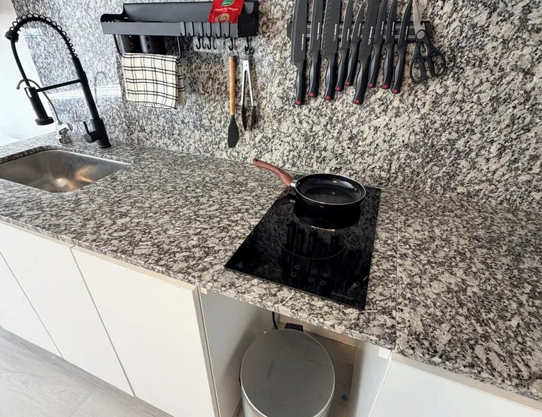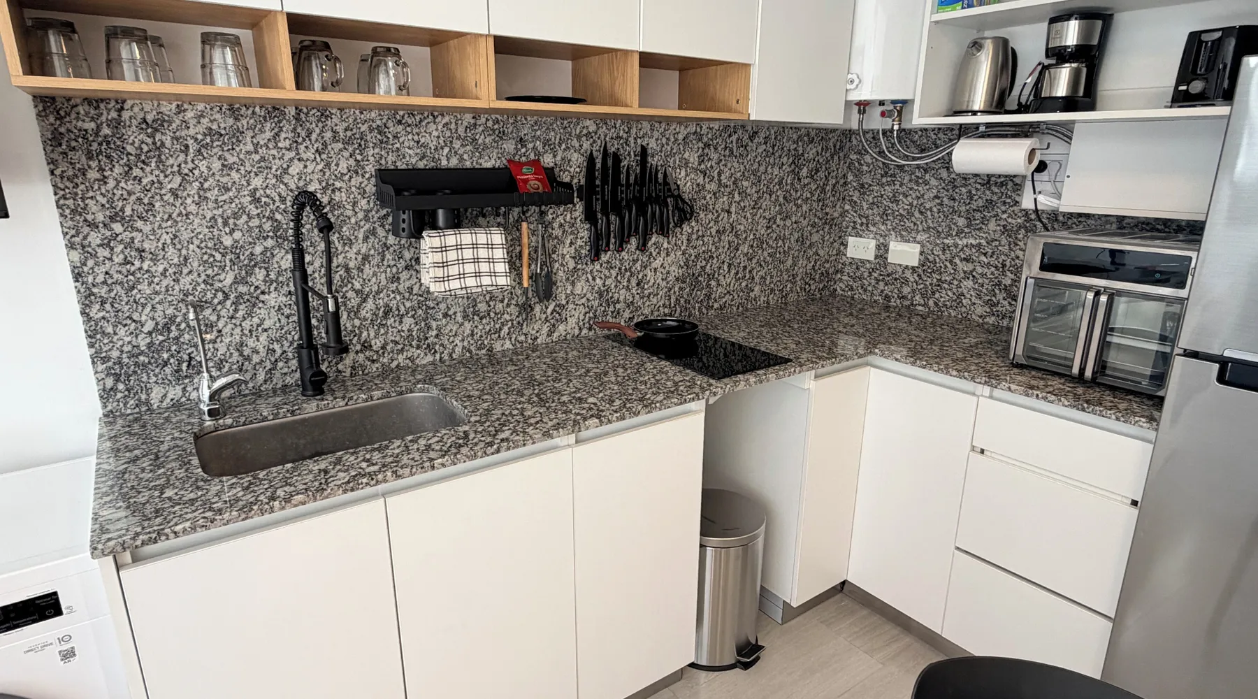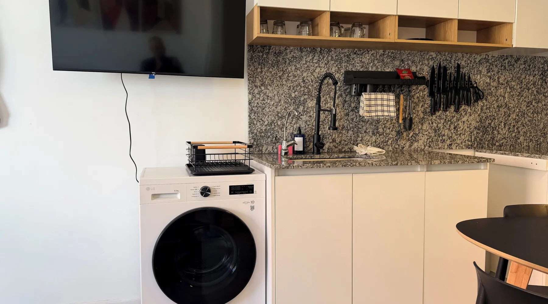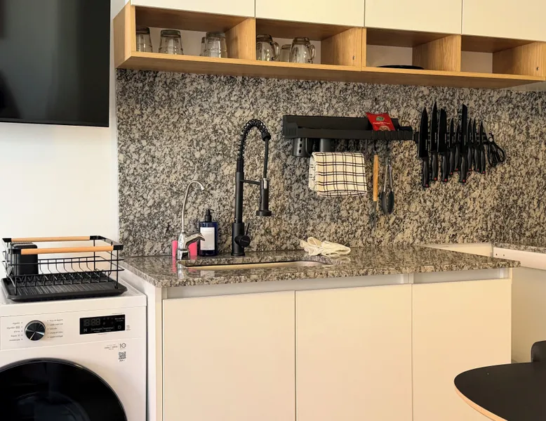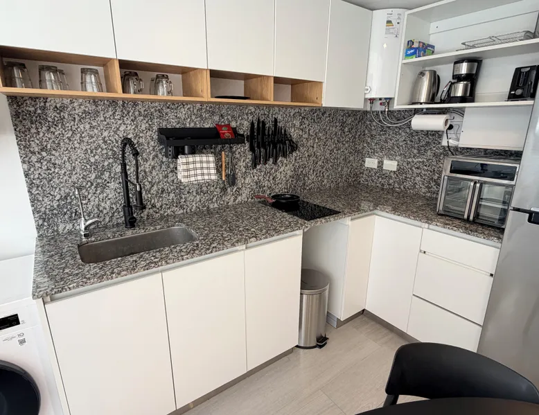 airesB&B presents the Palermo Portẽnito. The Portẽnito is a new 10th Floor space efficient and bright studio apartment. It is located on the border of the bustling Palermo SoHo and the trendy Villa Crespo. This apartment was designed by a returning digital nomad and includes all the necessary quality amenities required to be self sufficient and productive. The apartment has a spacious 12th floor CoWork Salon for work/entertainment as well as a 13th floor rooftop pool with 360 view (Dec 2025). Dia and Jumbo stores within 2 blocks. The space: The Portẽnito is a bright space efficient 9th floor studio apartment with new Samsung refrigerator, air conditioner and washing machine. A TCL ULED 43” TV is in the living with articulating mount so it can be watched anywhere in the room. The space has 2 beds, a full sized Serta mattress bed as well as a pullout single bed sofa/cama. The kitchen is bright with table and chairs for 3 people. The kitchen incorporates a 2 element infrared glass cooktop and a countertop large air fryer. The kitchen has a toaster, coffee maker and kettle as well as all necessary cooking accessories and knives that would make a chef blush. The kitchen also has an under sink mount Culligan USA water filter to save the cost and effort of finding bottled water. The bathroom has a medium sized corner shower, hair dryer, iron and storage. The toilet has a built in bidet The apartment has an ample storage, including a custom cabinet with shelves and hangers as well as extra shelf unit. The entrance has a bench and storage unit. The patio has comfortable wood table and chairs for enjoy tranquility to enjoy a coffee or work. The rooftop has both a bright cowork/entertainment salon and a heated pool to enjoy the hot afternoons. The lobby of the apartment has a REZ meat shop as well as both a Dia and Jumbo within 2 blocks. For fitness, there are 2 large Sports Clubs located 2 and 3 blocks away. The Urbanito is located on the corner of Lerma and Israel and is within 4 blocks of both Avenida Corrientes (B Line) and Cordoba. A few extra blocks walk or bike ride is the spectacular Parque Centennario. There is every ethnic food choice you can wish within a 5 minute walk. 10 minutes, you are in the foodie and entertainment center of Palermo SoHo and Plaza Serrano. Walk to the South, you enter Almagro with many local Tango and cocktail bars. Moviestar area is about 2.4km away, about a 10min Uber ride. Additional house cleaning can be provided by AiresBnB at a small extra cost. Guest access: Guests are free to use the rooftop pool and cowork/entertainment roof as well as bike storage area outside the apartment next to elevator. Other things to note Since the building is new, The pool and cowork area will be available in mid -December as they are currently being finished.