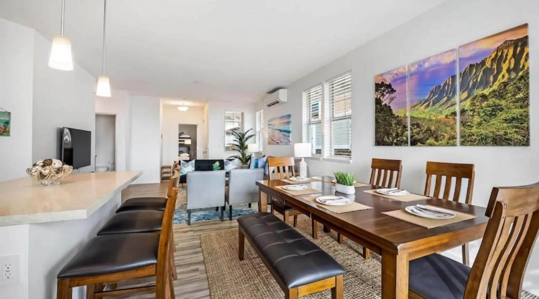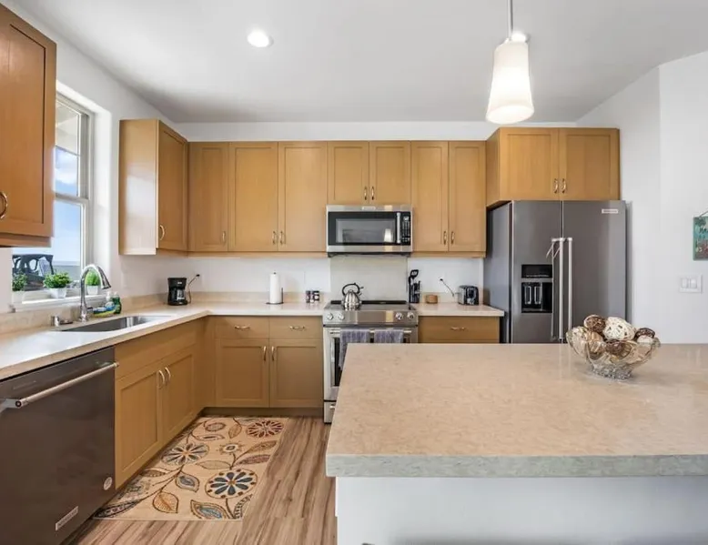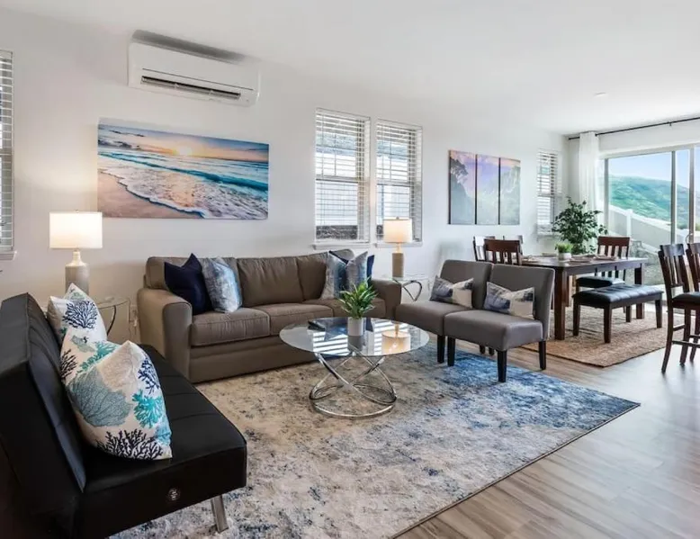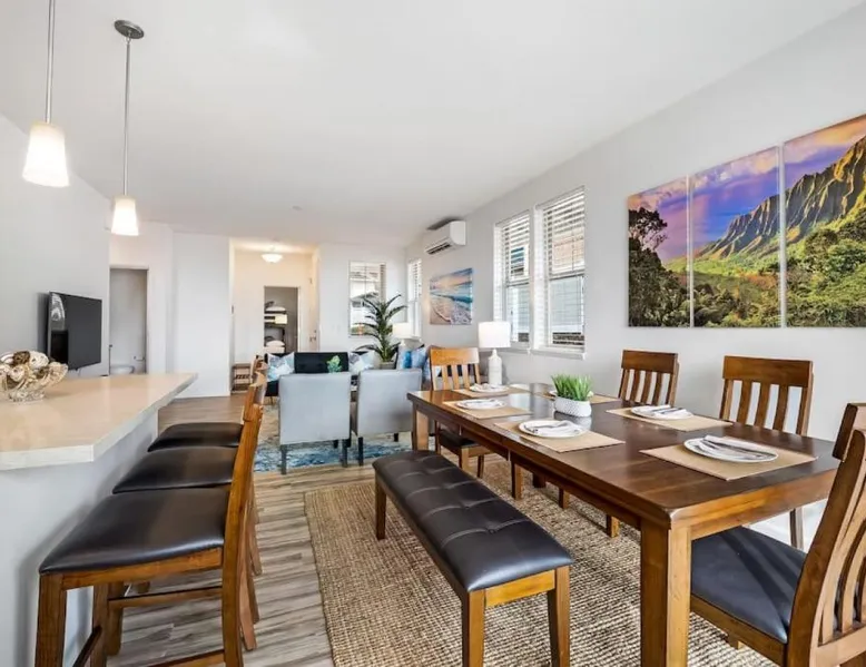 Spacious Accommodations: Kalo Homes - Makaha Valley Oasis in Waianae offers a spacious holiday home with three bedrooms and two bathrooms. The ground-floor unit features a private entrance and a dining area. Modern Amenities: Guests enjoy free WiFi, air-conditioning, and a fully equipped kitchen with a washing machine, dishwasher, and microwave. Additional amenities include a barbecue, TV, and work desk. Outdoor Spaces: A beautiful garden provides a relaxing outdoor area. The property also includes a laundry service and luggage storage for added convenience. Nearby Attractions: Located 31 mi from Honolulu International Airport, the holiday home is close to Pacific Aviation Museum Pearl Harbor (24 mi), USS Bowfin Submarine Museum & Park (29 mi), and USS Arizona Memorial (29 mi). Boasting a private entrance, this spacious holiday home also features 3 separate bedrooms and 2 bathrooms with a bath and a shower. Guests will find a stovetop, a refrigerator, a dishwasher and kitchenware in the fully equipped kitchen. The holiday home also comes with a barbecue. This holiday home is air-conditioned and has a TV, a washing machine, a tea and coffee maker and a dining area. The unit has 9 beds and 3 futons.