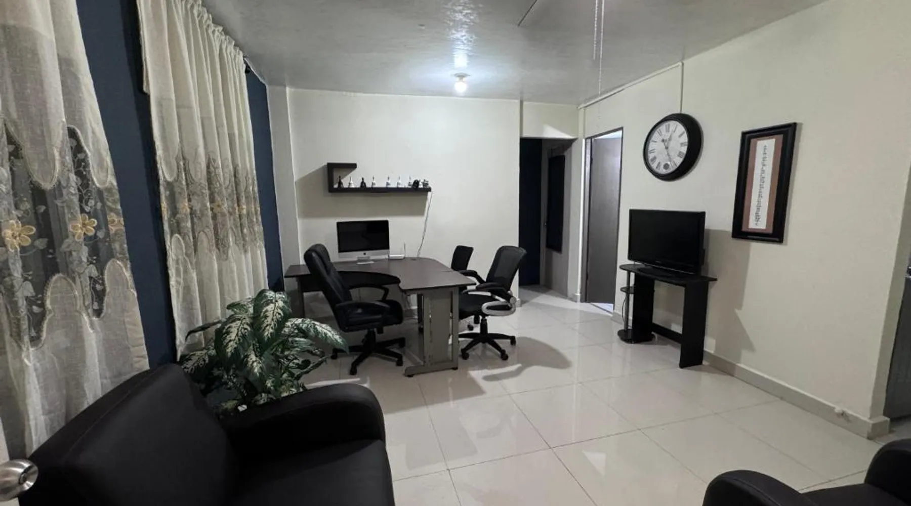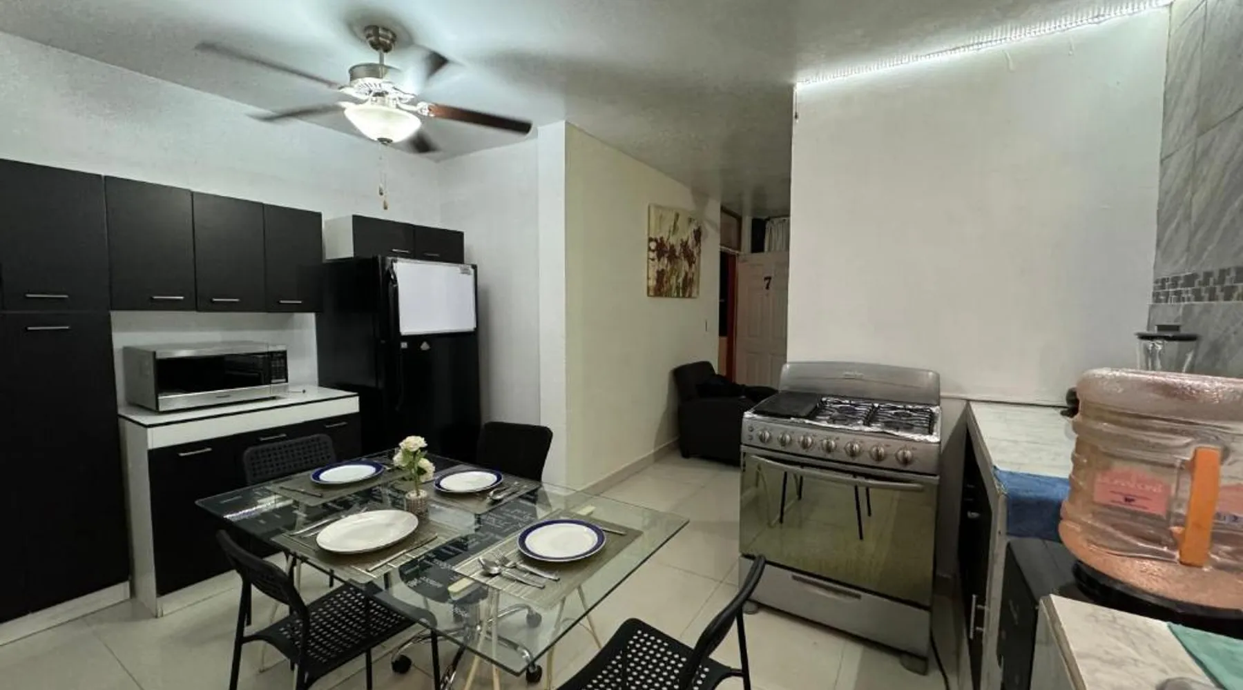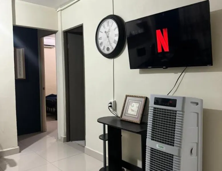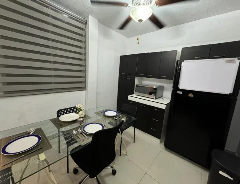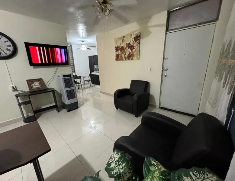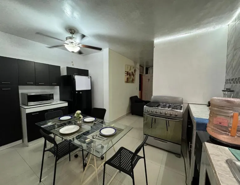 Comfortable Living Space: Excelente apartamento para 4 personas in Monterrey offers two bedrooms and a bathroom. The apartment includes a terrace, balcony, and free WiFi. Modern Amenities: Guests enjoy air-conditioning, a kitchenette, washing machine, and free on-site parking. Additional features include streaming services, a work desk, and a dining area. Prime Location: Located 18 mi from Monterrey International Airport, the apartment is a 15-minute walk from Macroplaza and 0.9 mi from MARCO Museum Monterrey. Nearby attractions include ITESM Campus Monterrey and Estadio Tecnológico. The well-fitted kitchen has a refrigerator, kitchenware, an oven and a microwave. The air-conditioned apartment features a flat-screen TV with streaming services, a washing machine, a seating area, a dining area as well as garden views. The unit has 4 beds.