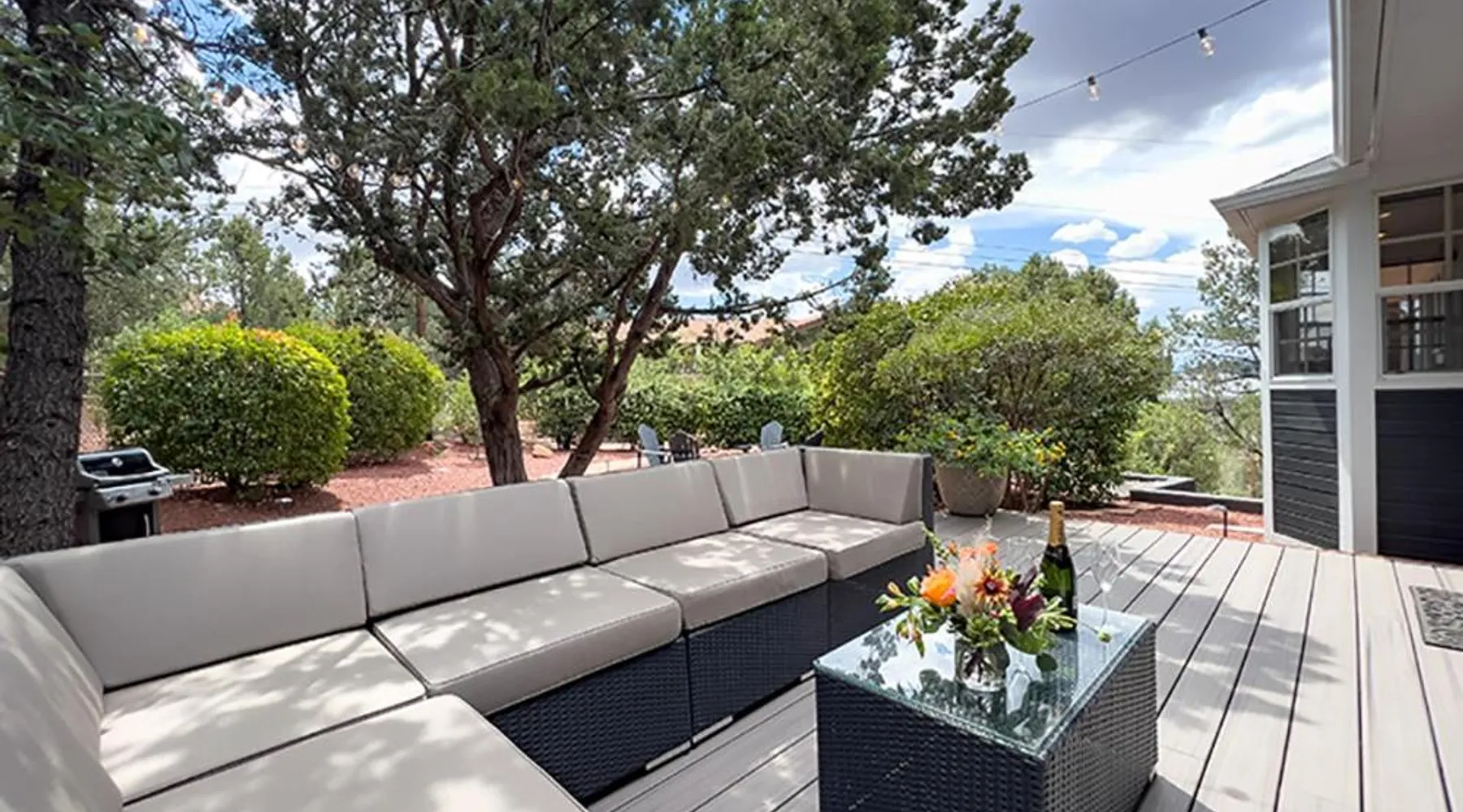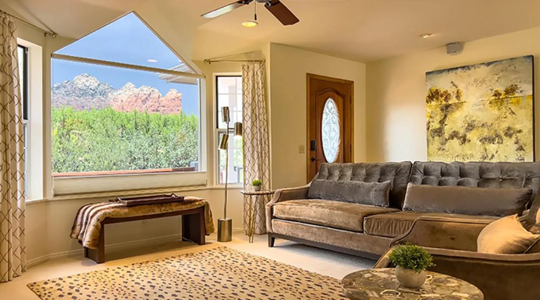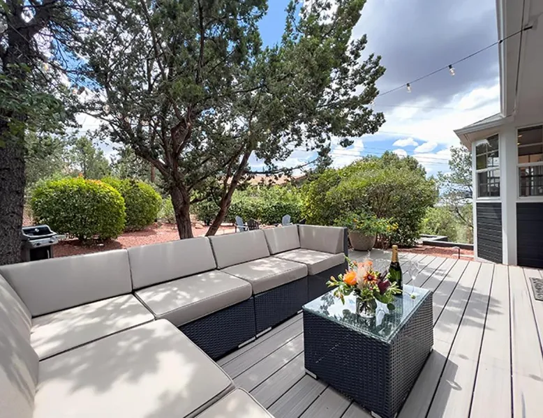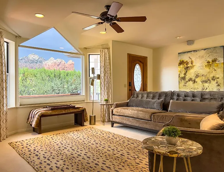 Spacious Accommodations: The Dahl House Of Sedona in Sedona offers a spacious holiday home with two bedrooms and two bathrooms. The living room features a comfortable sofa and a cozy fireplace, ideal for relaxation. Modern Amenities: Guests enjoy free WiFi, air-conditioning, and a fully equipped kitchen with a dishwasher, microwave, and oven. Additional amenities include a washing machine, patio, and outdoor seating area. Convenient Location: Located 6.2 mi from Chapel of the Holy Cross and 29 mi from Flagstaff Pulliam Airport, the property provides easy access to local attractions such as Montezuma Castle National Monument and Cliff Castle Casino. Activities and Surroundings: Guests can enjoy hiking in the surrounding area, with mountain views and scenic landscapes. The property is highly rated for its scenic location and convenient location. This holiday home's standout feature is the fireplace. This spacious holiday home is consisted of of 1 living room, 2 separate bedrooms and 2 bathrooms with a bath or a shower. Guests will find a stovetop, a refrigerator, a dishwasher and kitchenware in the well-equipped kitchen. The holiday home also has a barbecue. The air-conditioned holiday home offers a TV, a washing machine, a tea and coffee maker, a dining area as well as mountain views. The unit offers 2 beds.