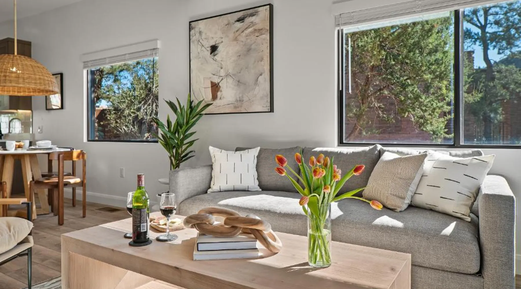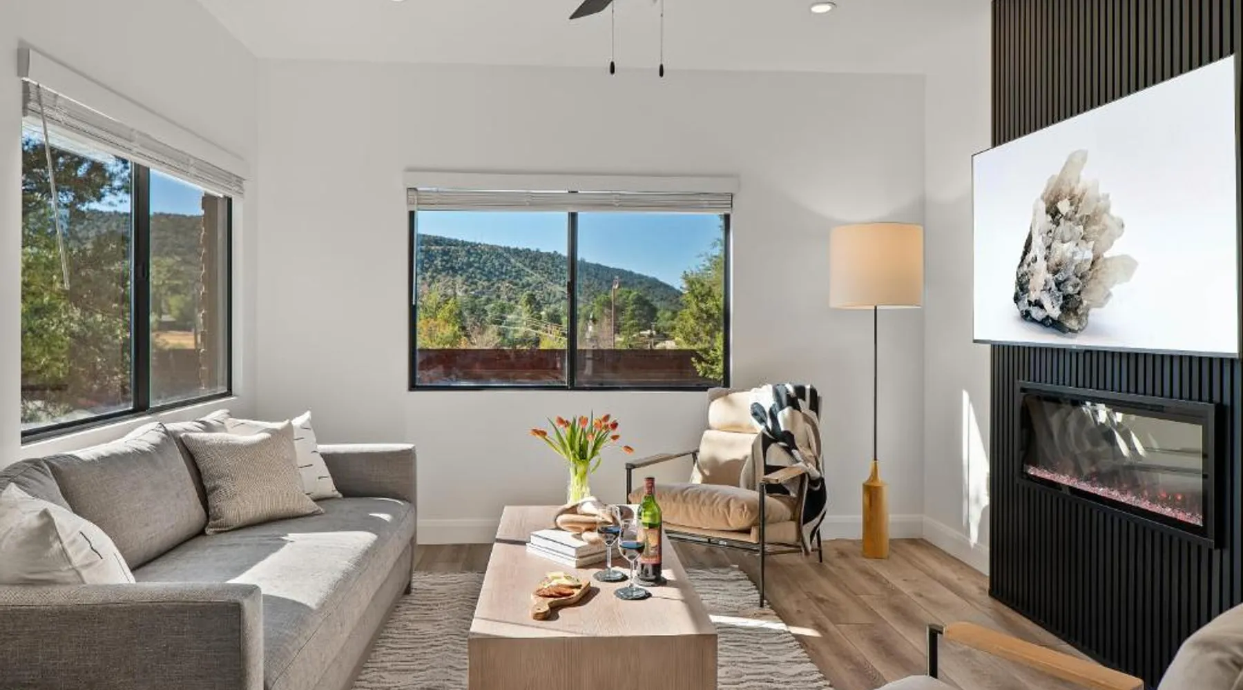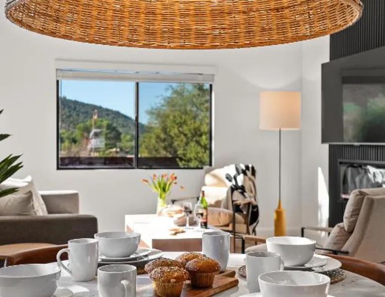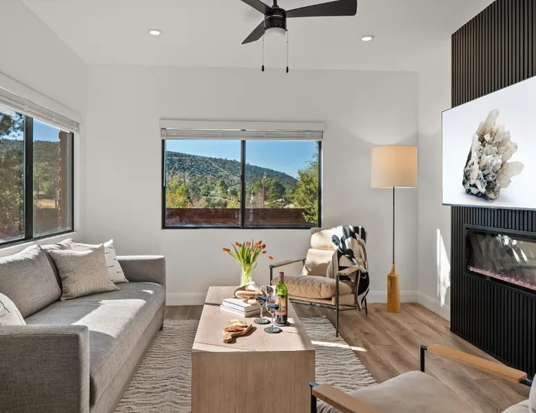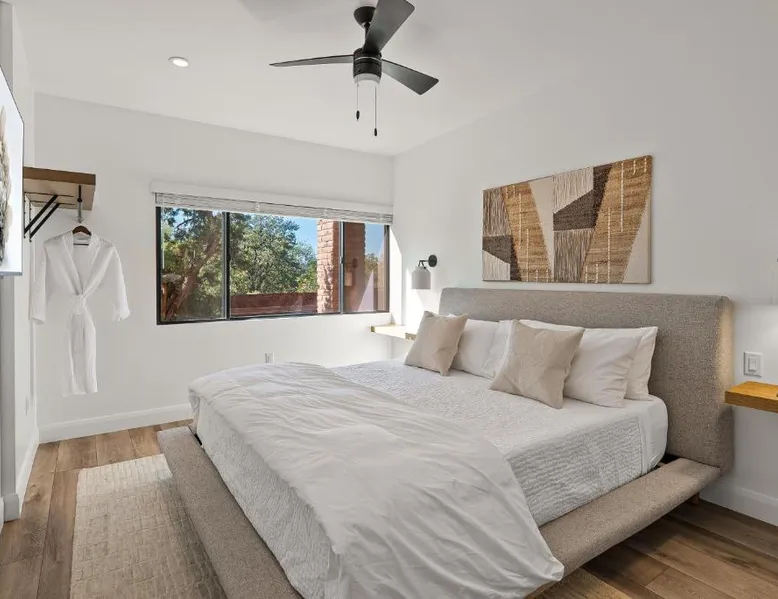 Comfortable Accommodations: Quartz Villa in Sedona offers a two-bedroom, two-bathroom villa with a spacious living room. The ground-floor unit features a private patio and inner courtyard views. Modern Amenities: Guests enjoy free WiFi, air-conditioning, and a fully equipped kitchen with a dishwasher, microwave, and oven. Additional amenities include a washing machine, streaming services, and a barbecue. Convenient Location: Located 27 mi from Flagstaff Pulliam Airport, the villa is near attractions such as Chapel of the Holy Cross (5 mi) and Cliff Castle Casino (25 mi). Free on-site private parking is available. This villa features 1 living room, 2 separate bedrooms and 2 bathrooms with a walk-in shower and free toiletries. Guests will find a stovetop, a refrigerator, a dishwasher and kitchenware in the well-fitted kitchen. The villa also comes with a barbecue. This air-conditioned villa includes a dining area, a flat-screen TV with streaming services a washing machine and a patio. The unit has 2 beds.
