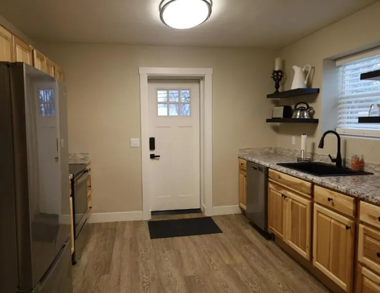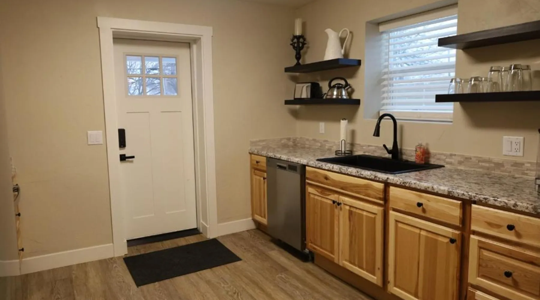 Comfortable Living: Cozy Cottage in Kalispell offers a recently renovated holiday home with two bedrooms and two bathrooms. The ground-floor unit features a spacious living room with parquet floors and a fully equipped kitchen. Modern Amenities: Guests enjoy free WiFi, air-conditioning, and a balcony. The property includes a washing machine, dishwasher, microwave, and a dining area with a table. Additional amenities include a TV, sofa, and free toiletries. Outdoor Spaces: An outdoor seating area provides a relaxing space, while free on-site private parking is available. The ground-floor unit offers easy access and a private entrance. Local Attractions: Located 9.9 mi from Glacier Park International Airport, the property is 24 mi from Flathead Lake and 18 mi from Big Sky Waterpark. Reception staff speak English. Boasting a private entrance, this air-conditioned holiday home includes 1 living room, 2 separate bedrooms and 2 bathrooms with a walk-in shower and a bath. Meals can be prepared in the kitchen, which is fitted with a stovetop, a refrigerator, a dishwasher and kitchenware. Featuring a balcony, this holiday home also offers a washing machine, a tea and coffee maker and a flat-screen TV. The unit has 2 beds.