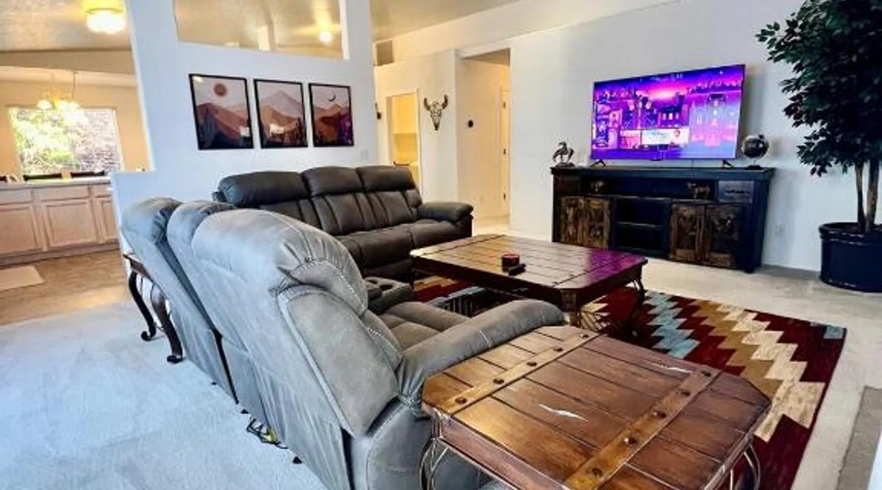 Spacious Holiday Home in Prescott: The Large Prescott Home with 3-car Garage Central & Quiet offers a spacious setting in Prescott. Guests enjoy free WiFi and free on-site private parking. Comfortable Living Spaces: The property features one bedroom and two bathrooms. Amenities include air-conditioning, a washing machine, a fully equipped kitchen, and a TV. Convenient Location: Ernest A Love Field Airport is 6.2 mi away. Prescott College lies 4.3 mi from the holiday home. Reception staff speak English and Spanish. The holiday home's kitchen is available for cooking and storing food. The spacious holiday home features air conditioning, a washing machine, heating and a flat-screen TV. The unit has 1 bed.