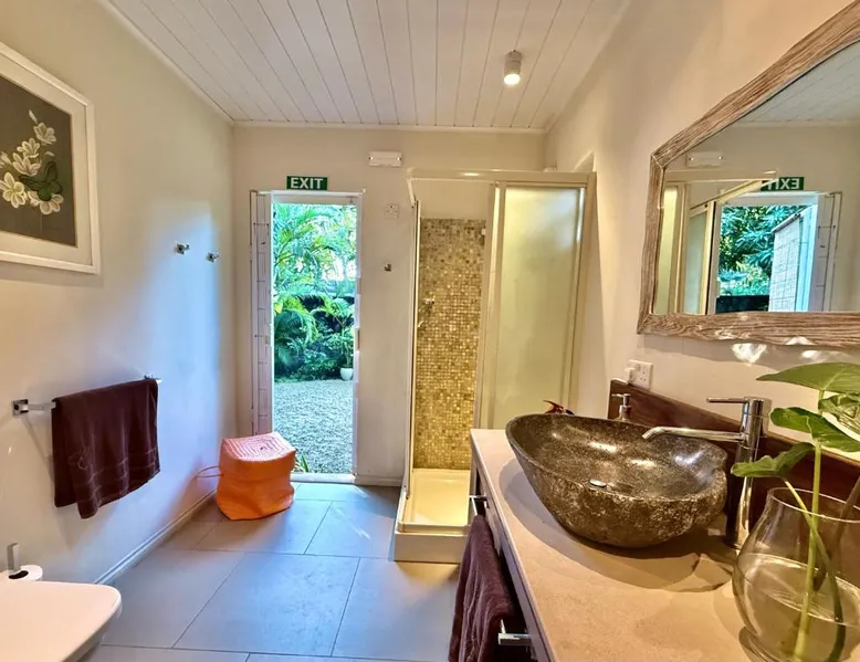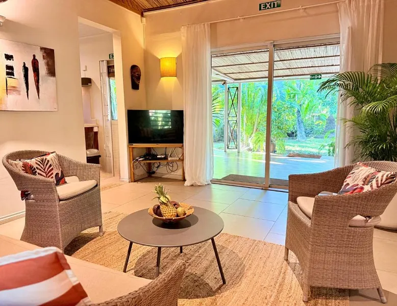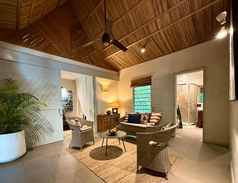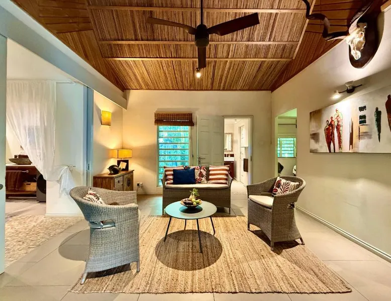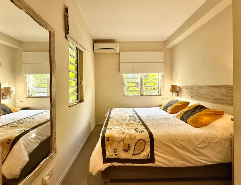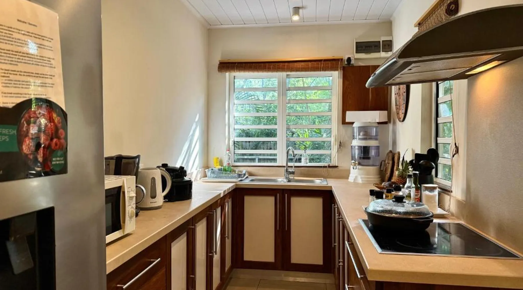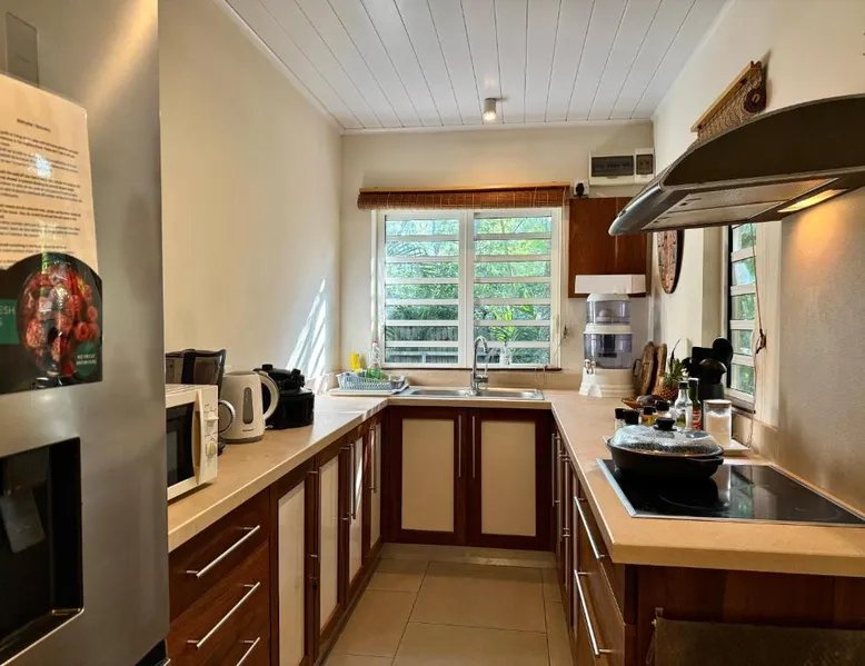 Beachfront Location: Waka Lodge - House with Garden in Mahebourg offers a private beach area and direct access to Pointe d'Esny Beach, just yards away. Guests can relax on the terrace or in the lush garden, enjoying stunning coastal views. Comfortable Accommodations: The villa features three bedrooms and two bathrooms, equipped with air-conditioning, a fully fitted kitchen, and a washing machine. Free WiFi is available throughout the property, ensuring connectivity for all guests. Convenient Facilities: Guests can enjoy a paid shuttle service, lounge, coffee shop, laundry service, outdoor seating area, picnic area, family rooms, full-day security, and car hire. Free on-site private parking is provided for added convenience. Nearby Attractions: Sir Seewoosagur Ramgoolam Airport is 1.9 mi away, while Pointe d'Esny Beach offers a variety of activities such as snorkeling and diving. Other nearby points of interest include Bus Station Mahebourg (2.7 mi) and Le Touessrok Golf Course (22 mi). Boasting a private entrance, this air-conditioned villa features a kitchen, 3 bedrooms and 2 bathrooms with a shower and a hairdryer. The well-equipped kitchen has a stovetop, a refrigerator, an oven and a microwave. Featuring a terrace with garden views, this villa also features a washing machine and a flat-screen TV. The unit has 3 beds and 1 futon.