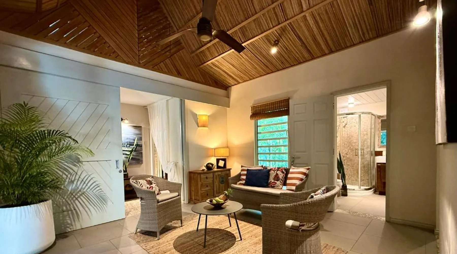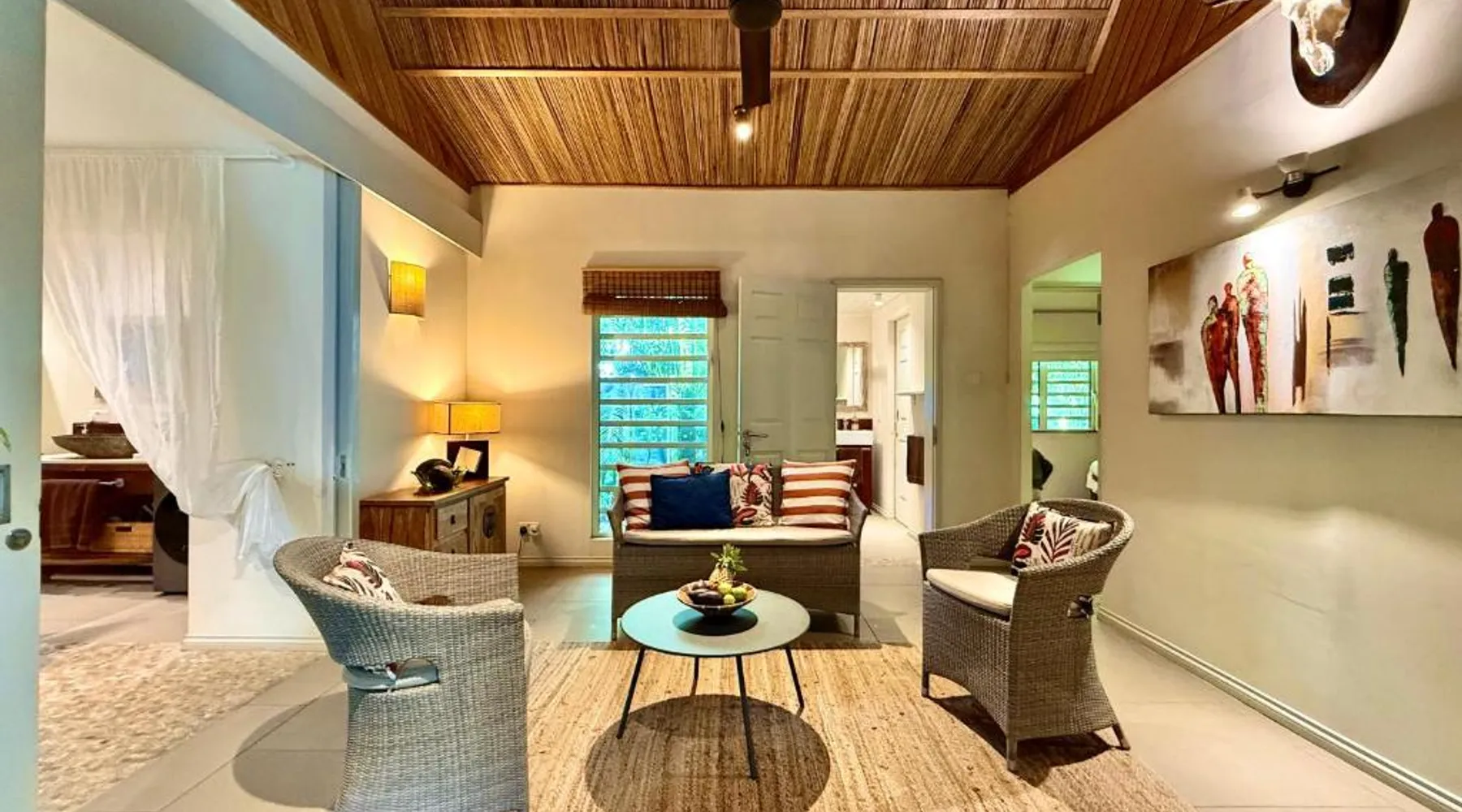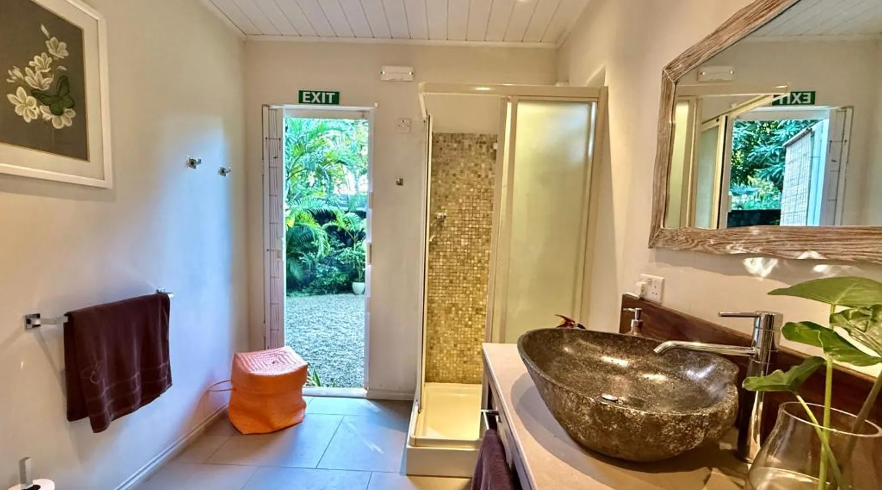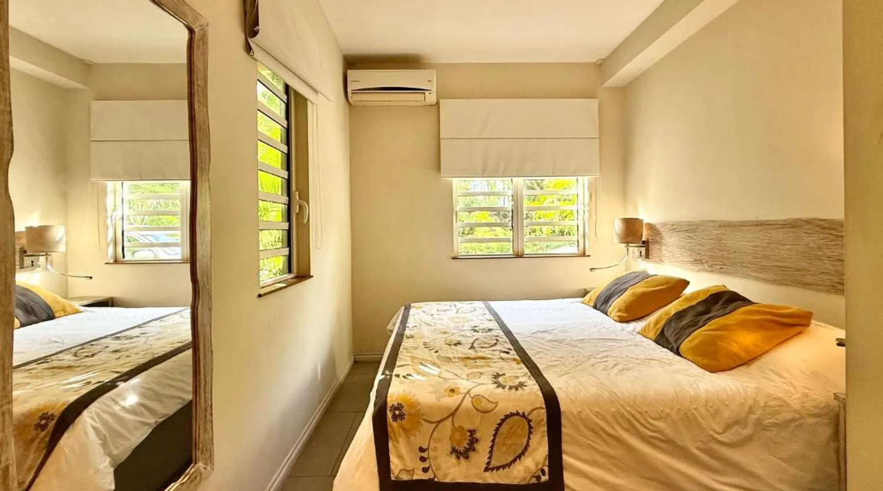 Beachfront Location: Waka Lodge - House with Garden in Mahebourg offers a private beach area and direct access to Pointe d'Esny Beach, just yards away. Guests can relax on the terrace or in the lush garden, enjoying stunning coastal views. Comfortable Accommodations: The villa features three bedrooms and two bathrooms, equipped with air-conditioning, a fully fitted kitchen, and a washing machine. Free WiFi is available throughout the property, ensuring connectivity for all guests. Convenient Facilities: Guests can enjoy a paid shuttle service, lounge, coffee shop, laundry service, outdoor seating area, picnic area, family rooms, full-day security, and car hire. Free on-site private parking is provided for added convenience. Nearby Attractions: Sir Seewoosagur Ramgoolam Airport is 1.9 mi away, while Pointe d'Esny Beach offers a variety of activities such as snorkeling and diving. Other nearby points of interest include Bus Station Mahebourg (2.7 mi) and Le Touessrok Golf Course (22 mi). Boasting a private entrance, this air-conditioned villa features a kitchen, 3 bedrooms and 2 bathrooms with a shower and a hairdryer. The well-equipped kitchen has a stovetop, a refrigerator, an oven and a microwave. Featuring a terrace with garden views, this villa also features a washing machine and a flat-screen TV. The unit has 3 beds and 1 futon.