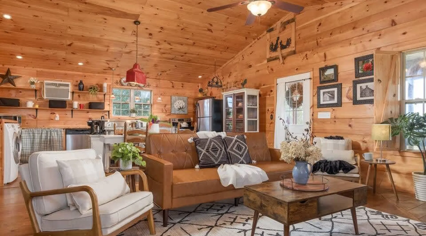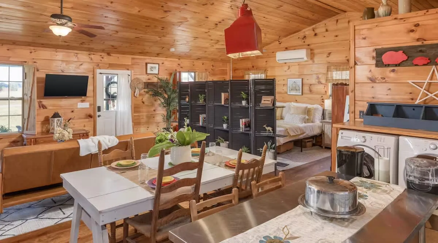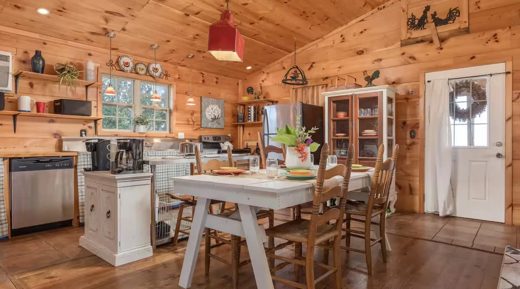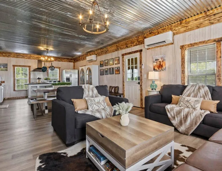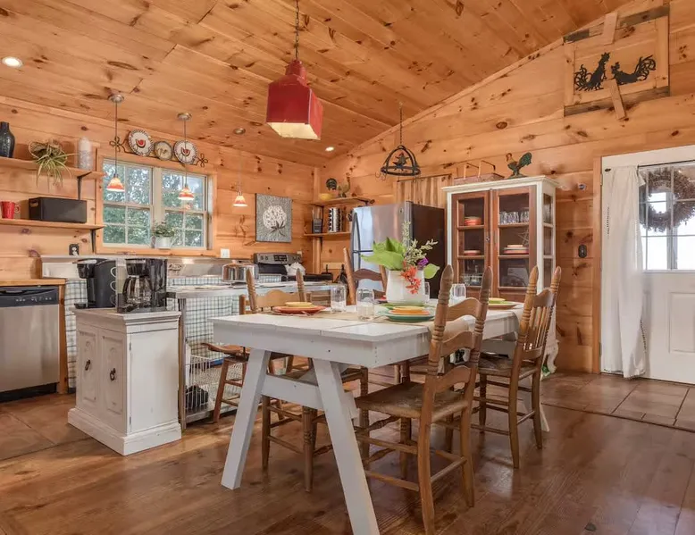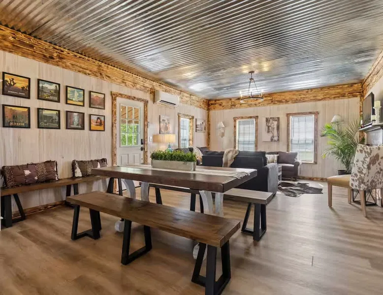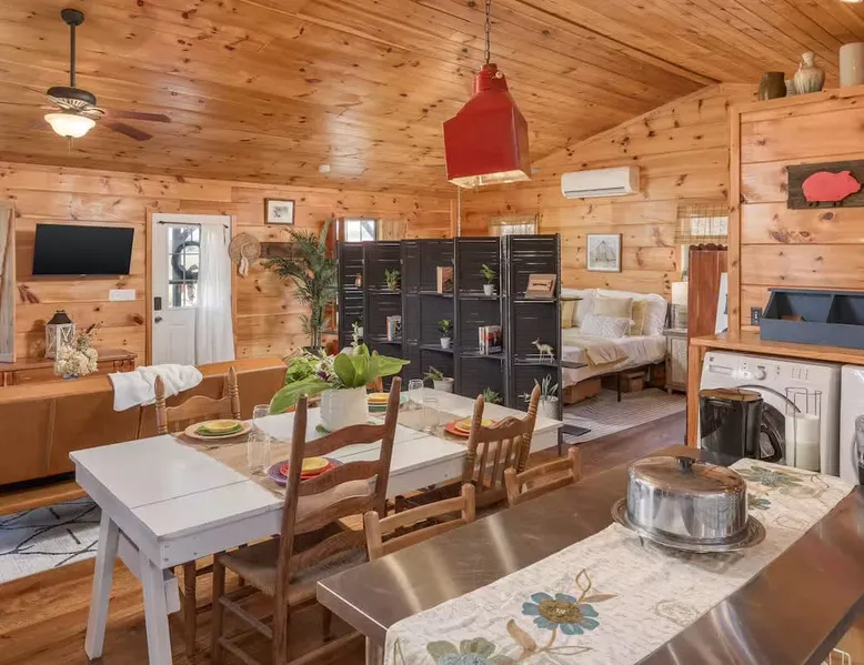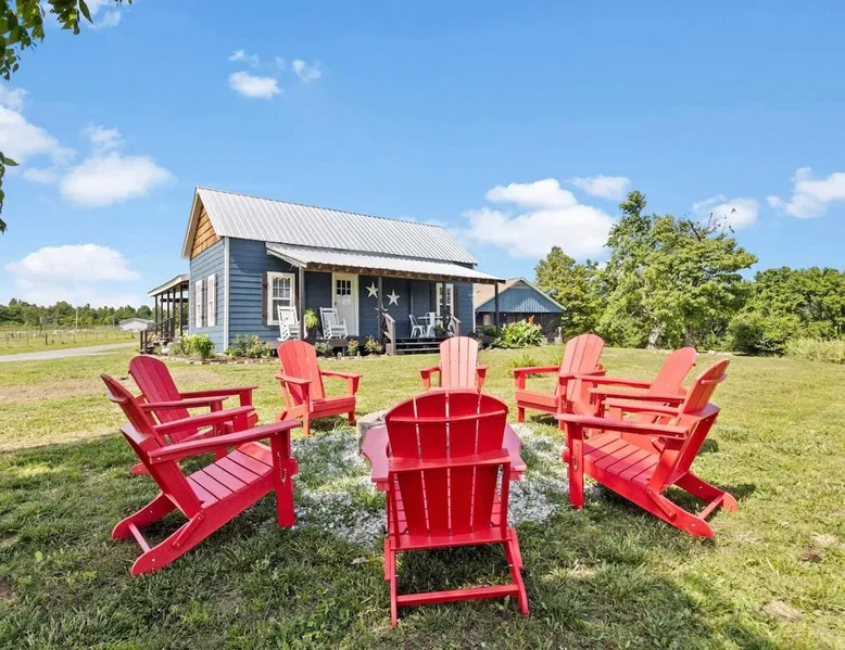 Americana Farm Getaway The space Americana Farm Getaway combines the comfort of The Prairie House Retreat and Liberty Lodge into one spacious, private booking—making it the ideal setting for family reunions, group getaways, or multi-family vacations. With room for up to 14 guests across two charming countryside homes, you’ll have everything you need for a peaceful and memorable stay. The Prairie House Retreat includes: 3 interconnected bedrooms with a variety of sleeping options: full, queen, king, and two full bunk beds Two bathrooms (one with a tub, one half bath with a toilet and sink) A fully stocked kitchen, spacious living area, and large outdoor fire pit Liberty Lodge offers: An indoor king bed in an open concept bedroom A screened-in porch with a full bed for an airy sleeping experience One full bathroom, kitchen, and peaceful porch views Whether you want to cook for a crowd, split into smaller groups for quiet time, or gather around the fire pit for an evening together, Americana Farm gives you the flexibility and space to do it all. Only need one of the homes? The Prairie House Retreat and Liberty Lodge can also be booked individually for smaller parties. Please note: If you would like to enjoy the fire pit during your stay, please bring your own wood and fire starters. To ensure a seamless and enjoyable experience for all, we encourage and request all guests to review our house rules before completing their booking. These guidelines help maintain comfort, security, and create clear expectations for all involved. By booking, you agree to our house rules, policies, terms and conditions (including details on guest count, pet accommodations, security measures, and checkout procedures). Adherence helps us provide the best possible stay for you and future guests. We appreciate your cooperation in advance and look forward to hosting you!
